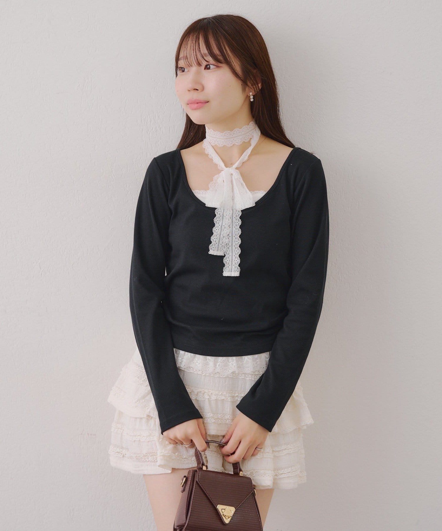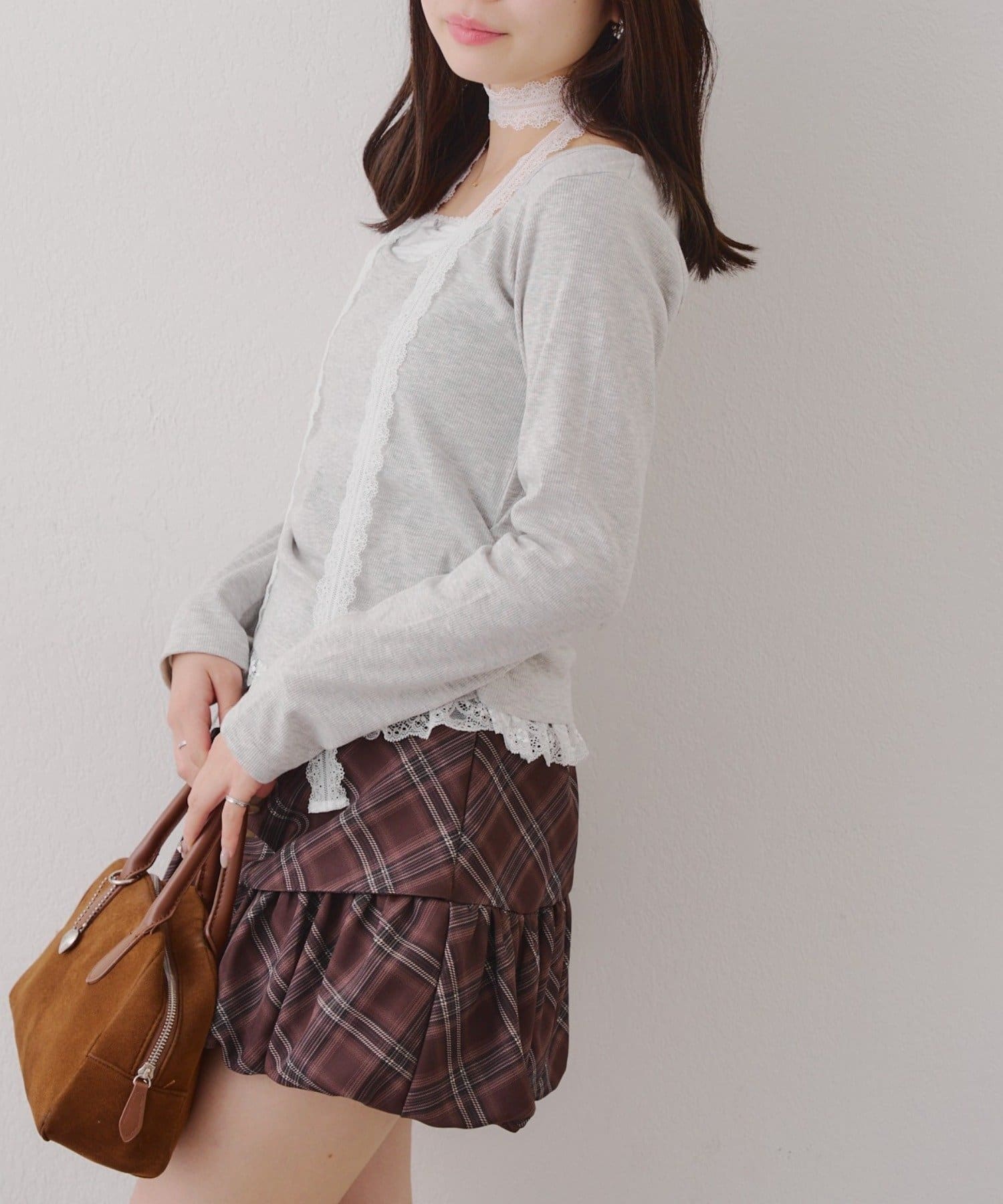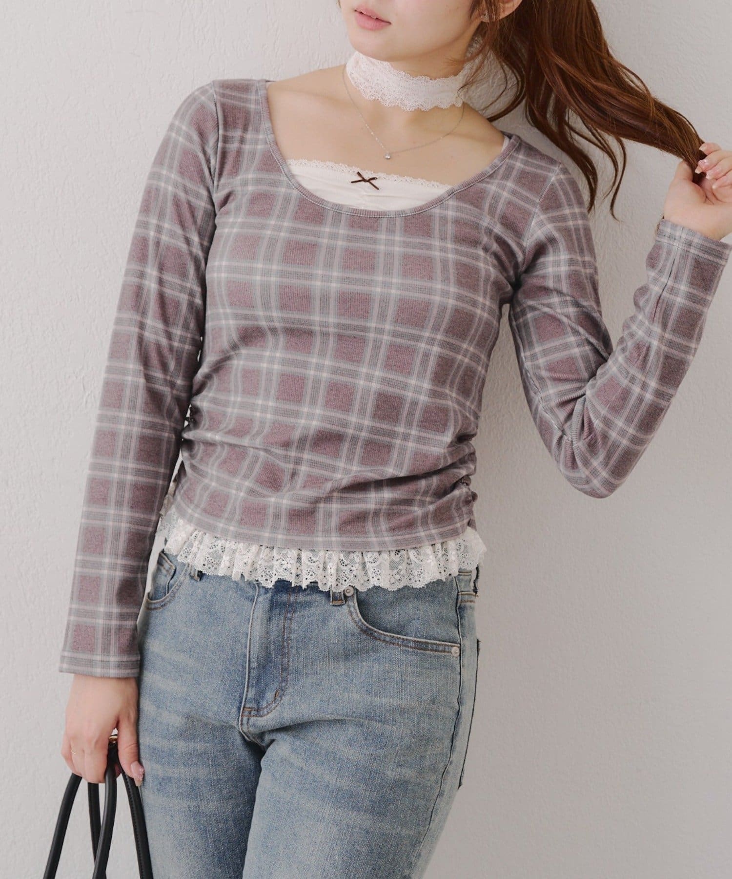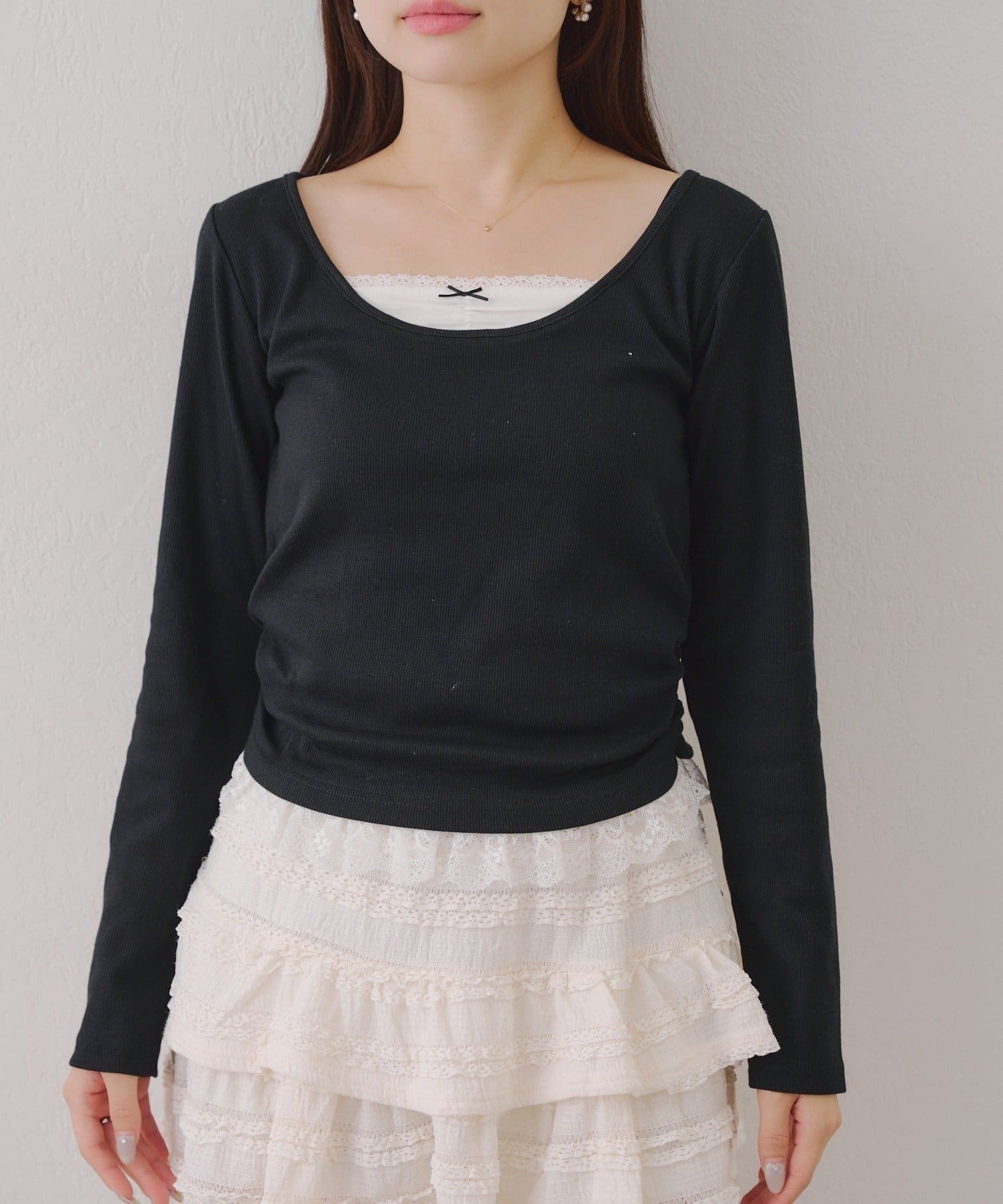 ・胸元のレースドッキングが、よりガーリーな印象に