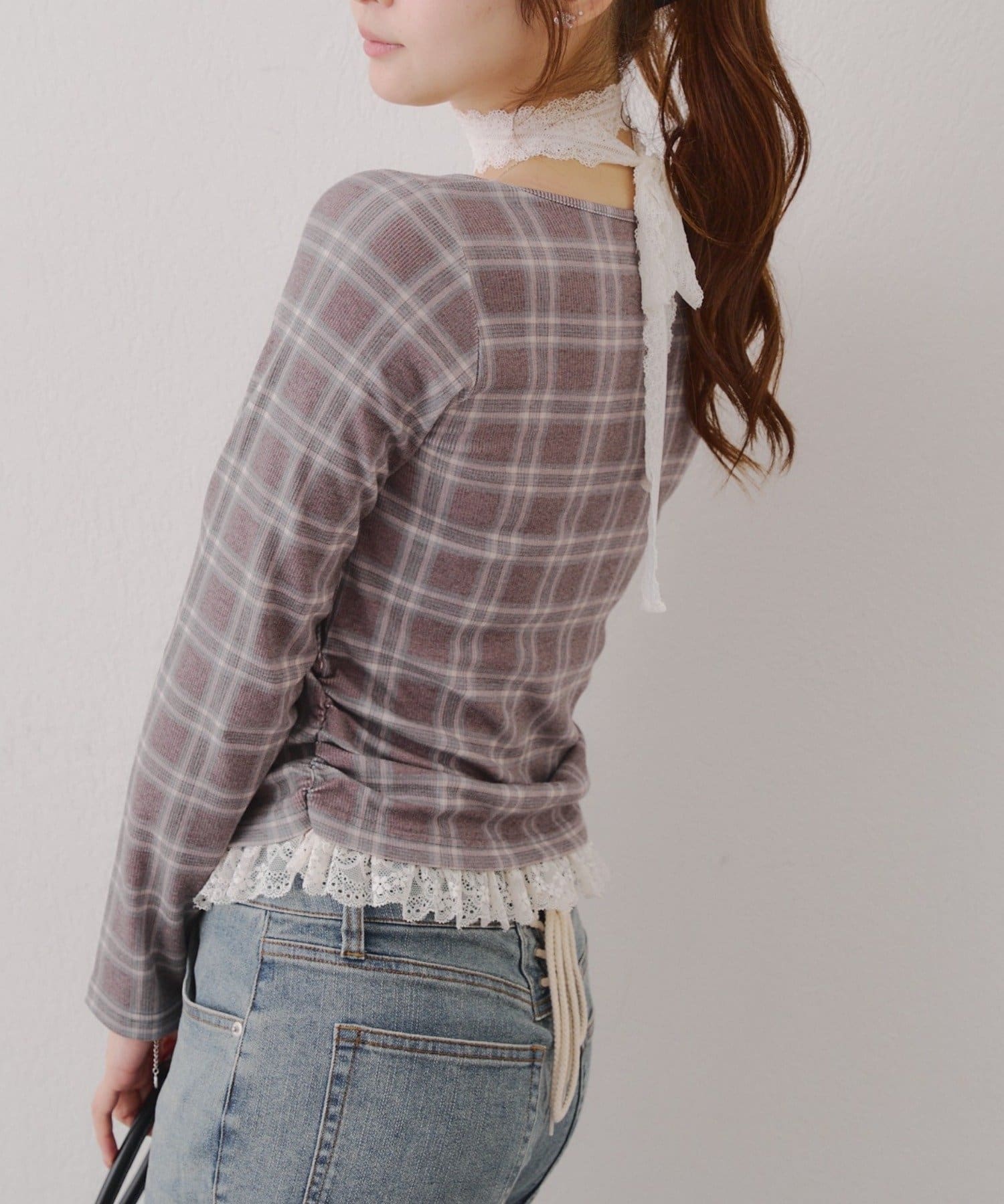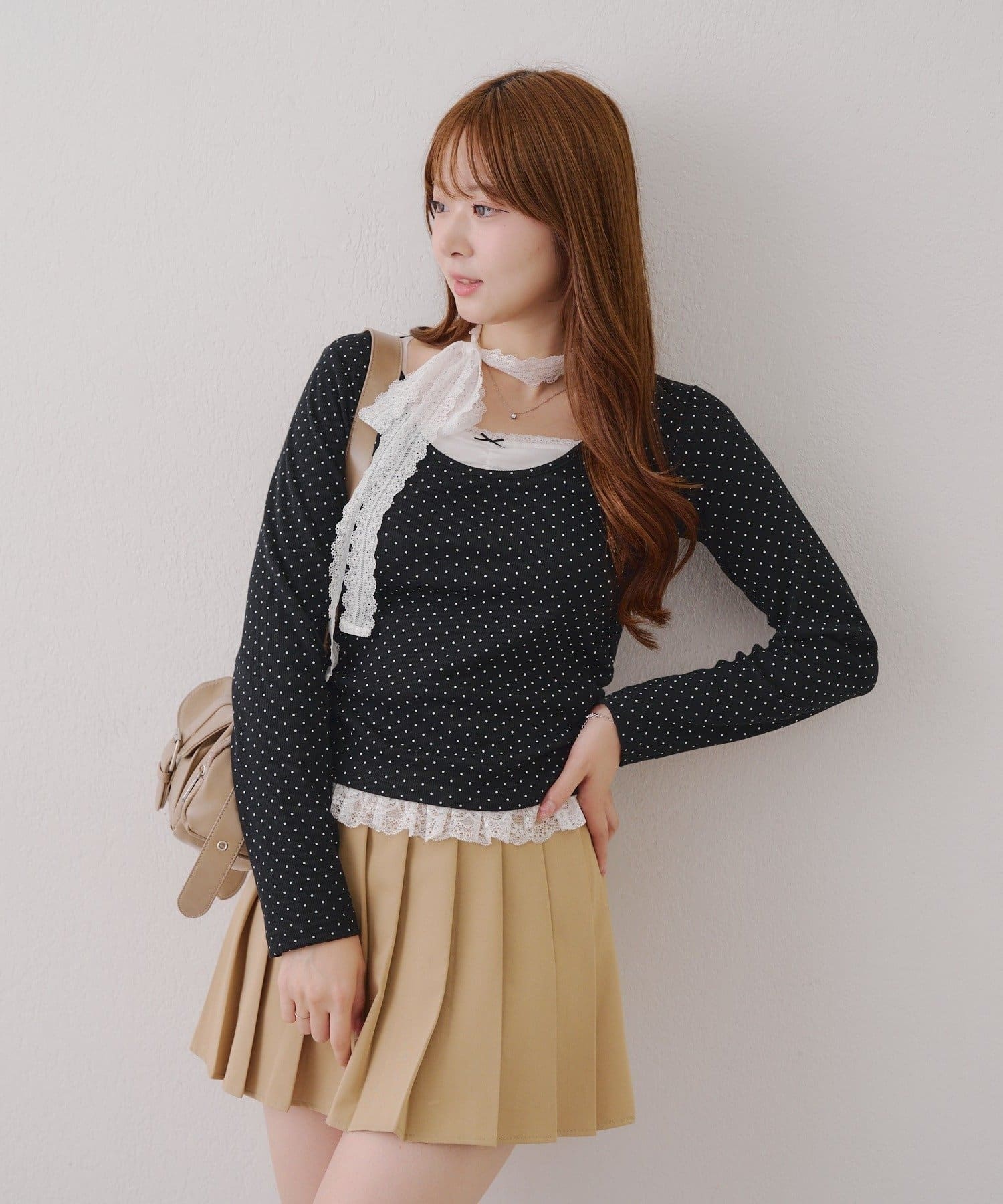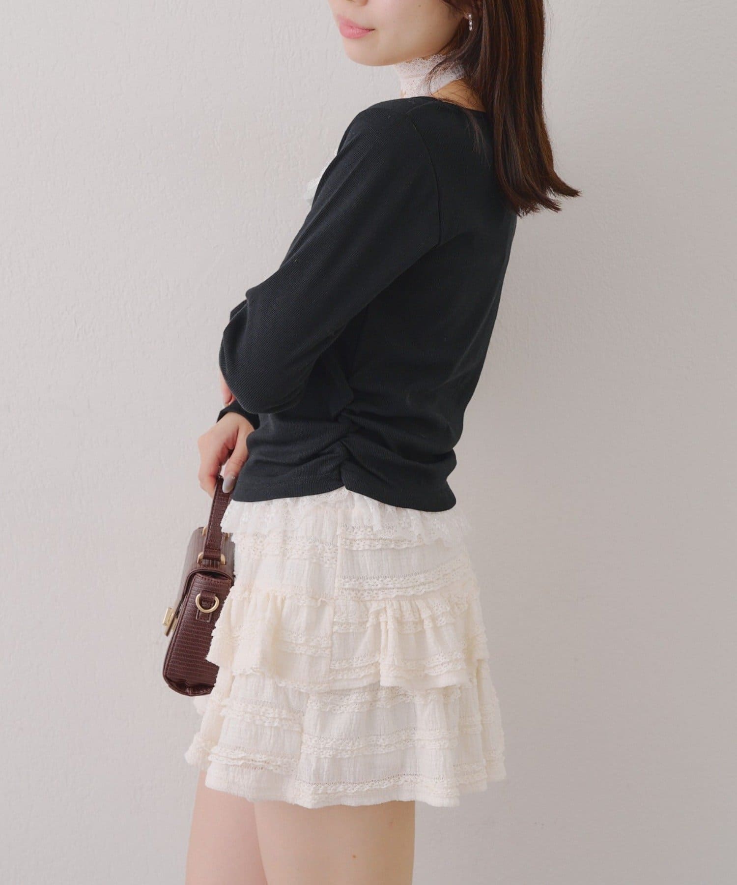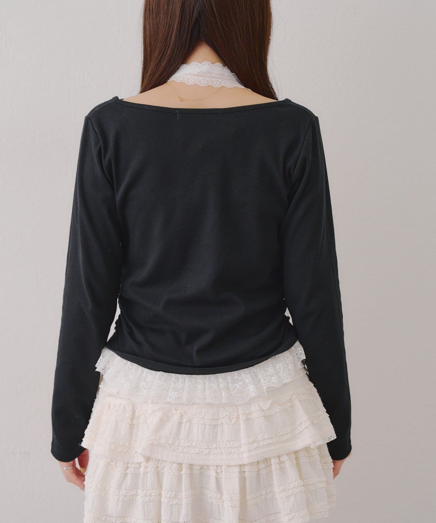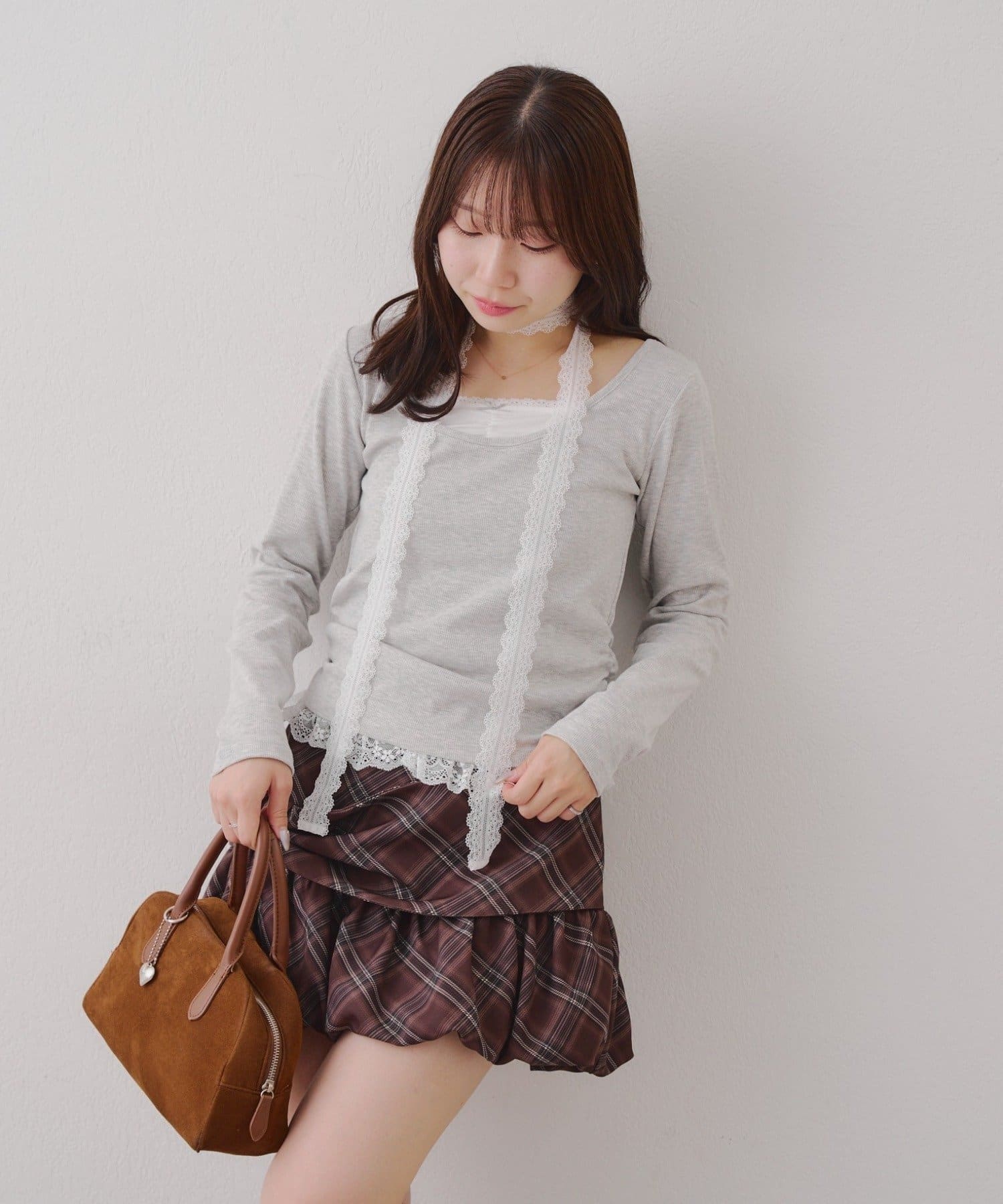 ・胸元のレースドッキングが、よりガーリーな印象に