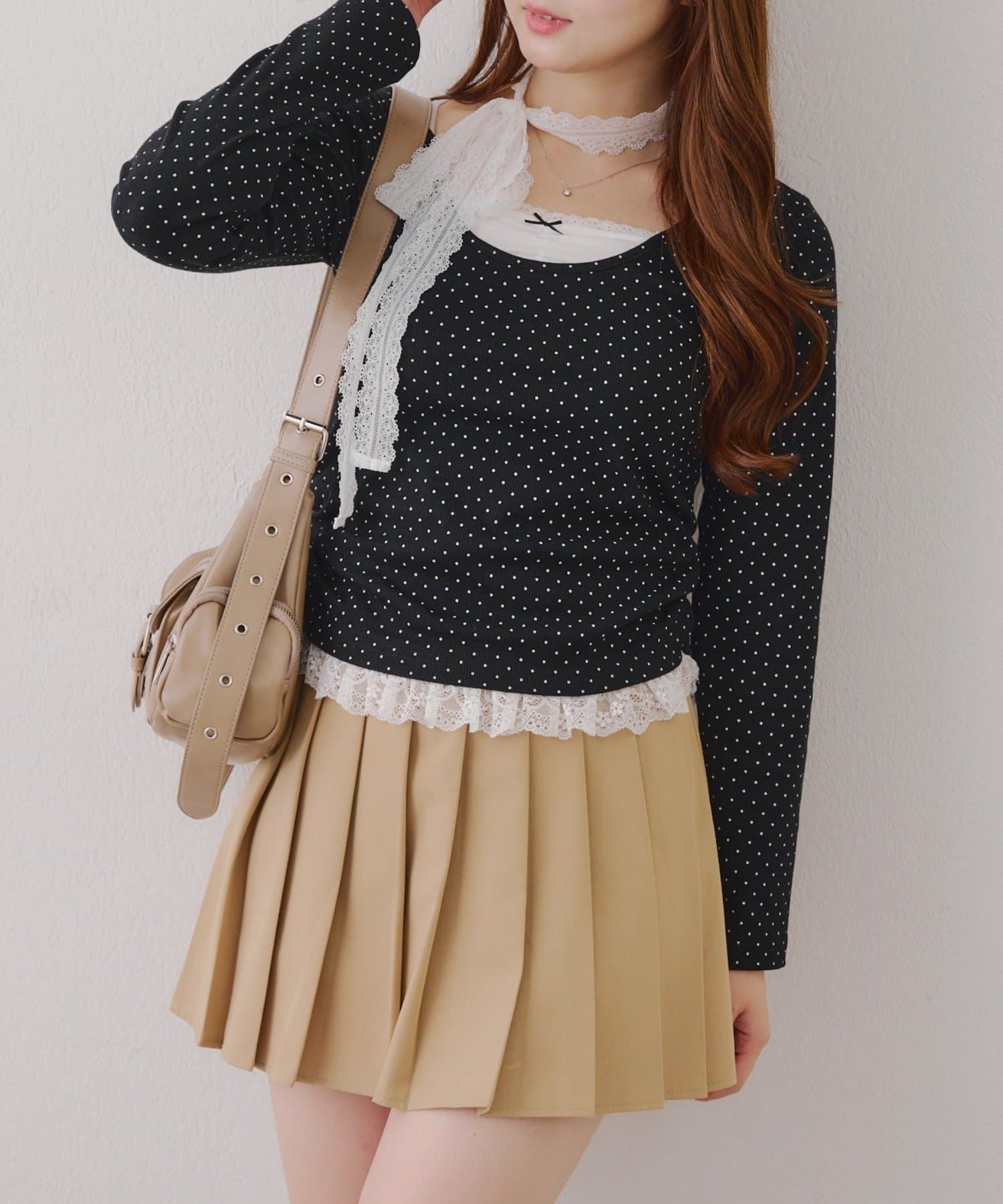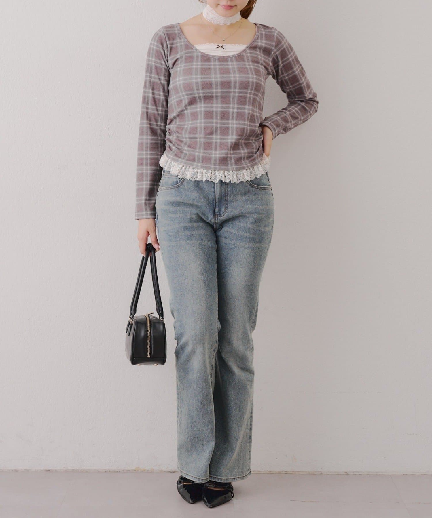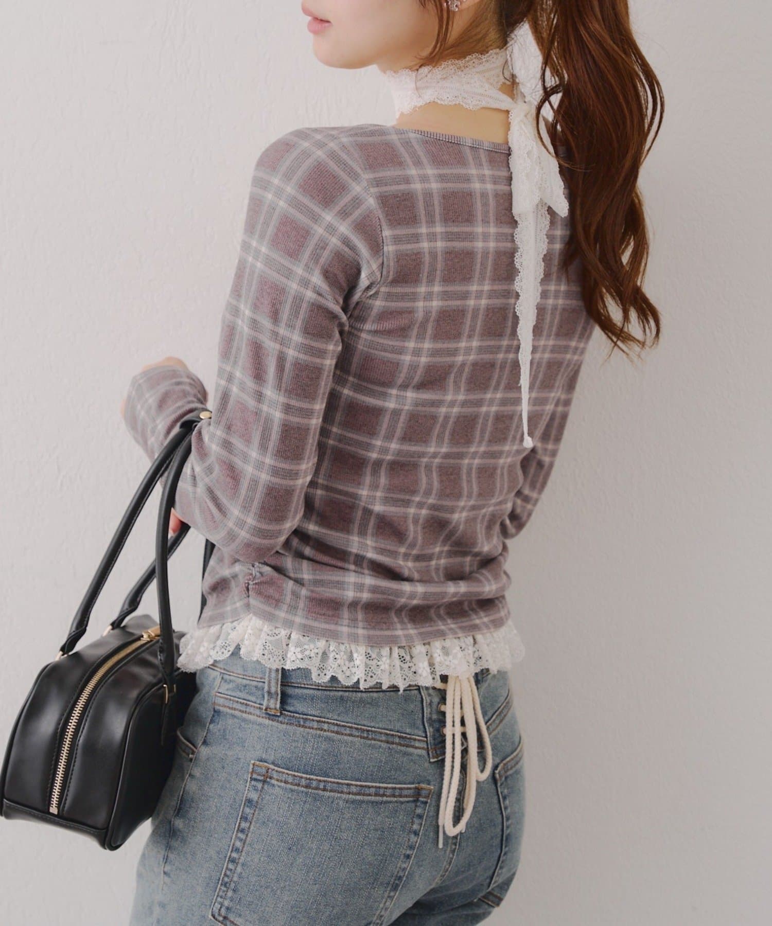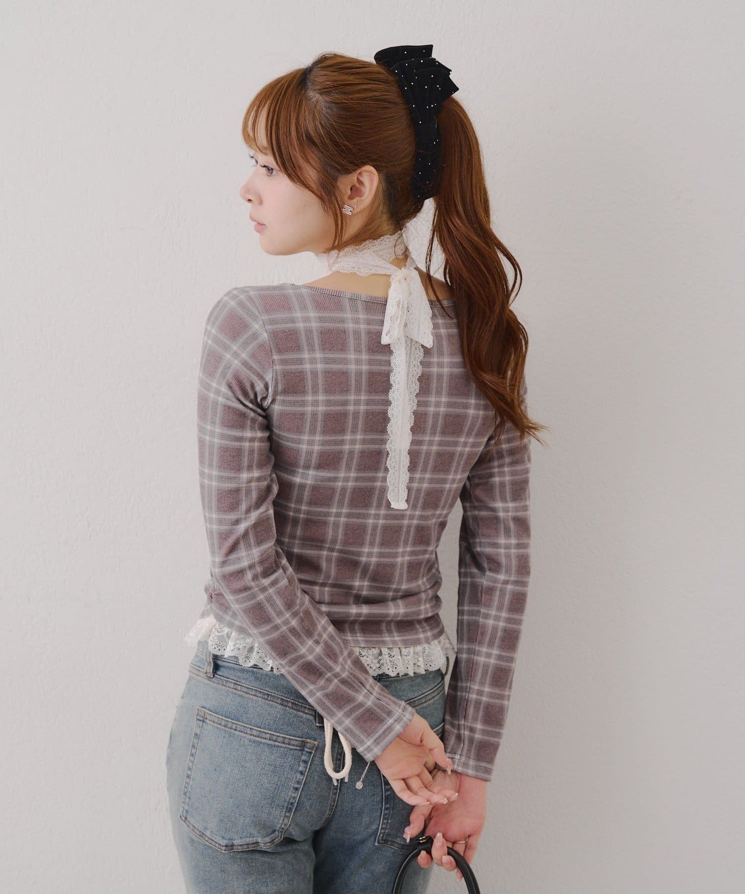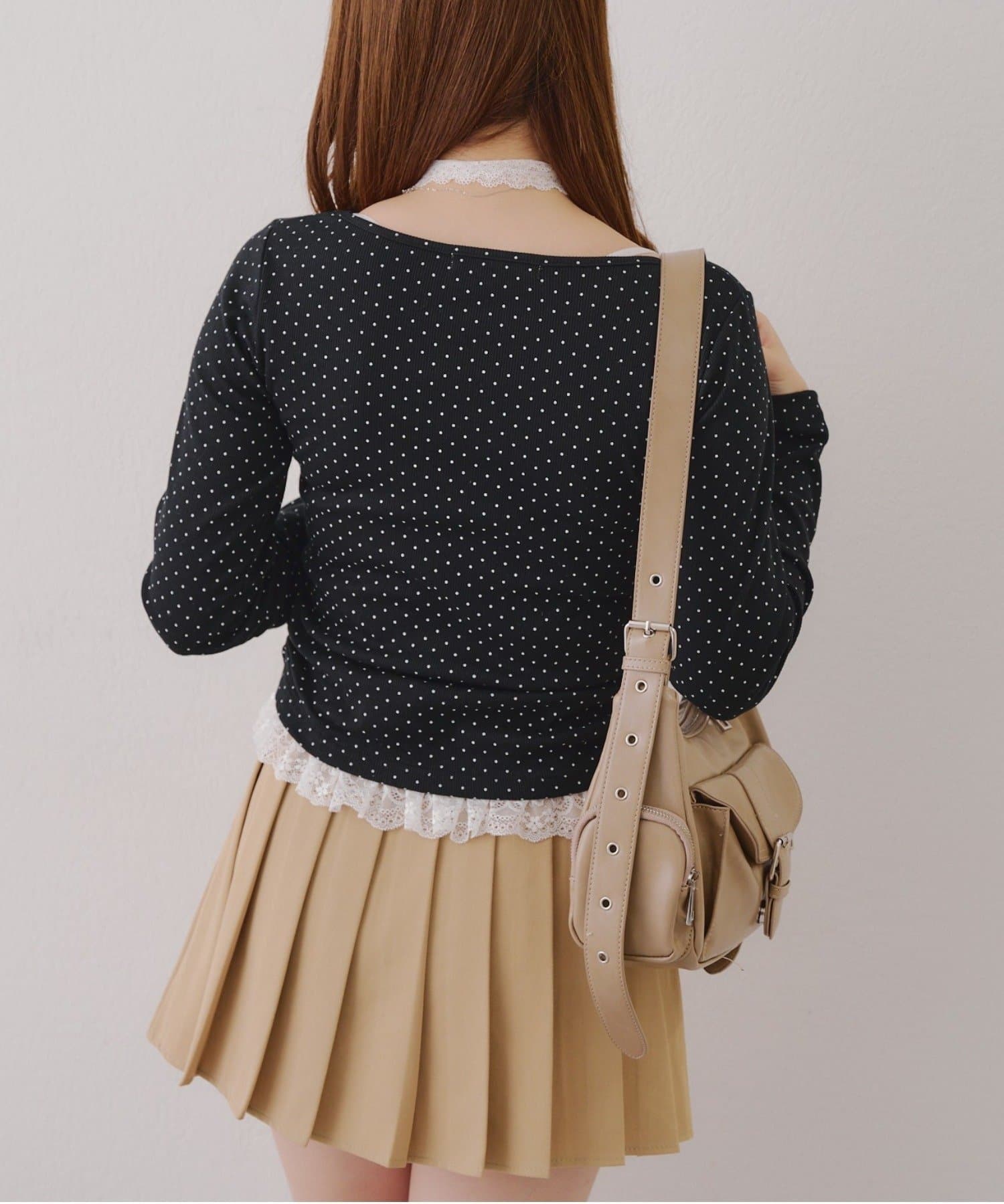 ・胸元のレースドッキングが、よりガーリーな印象に