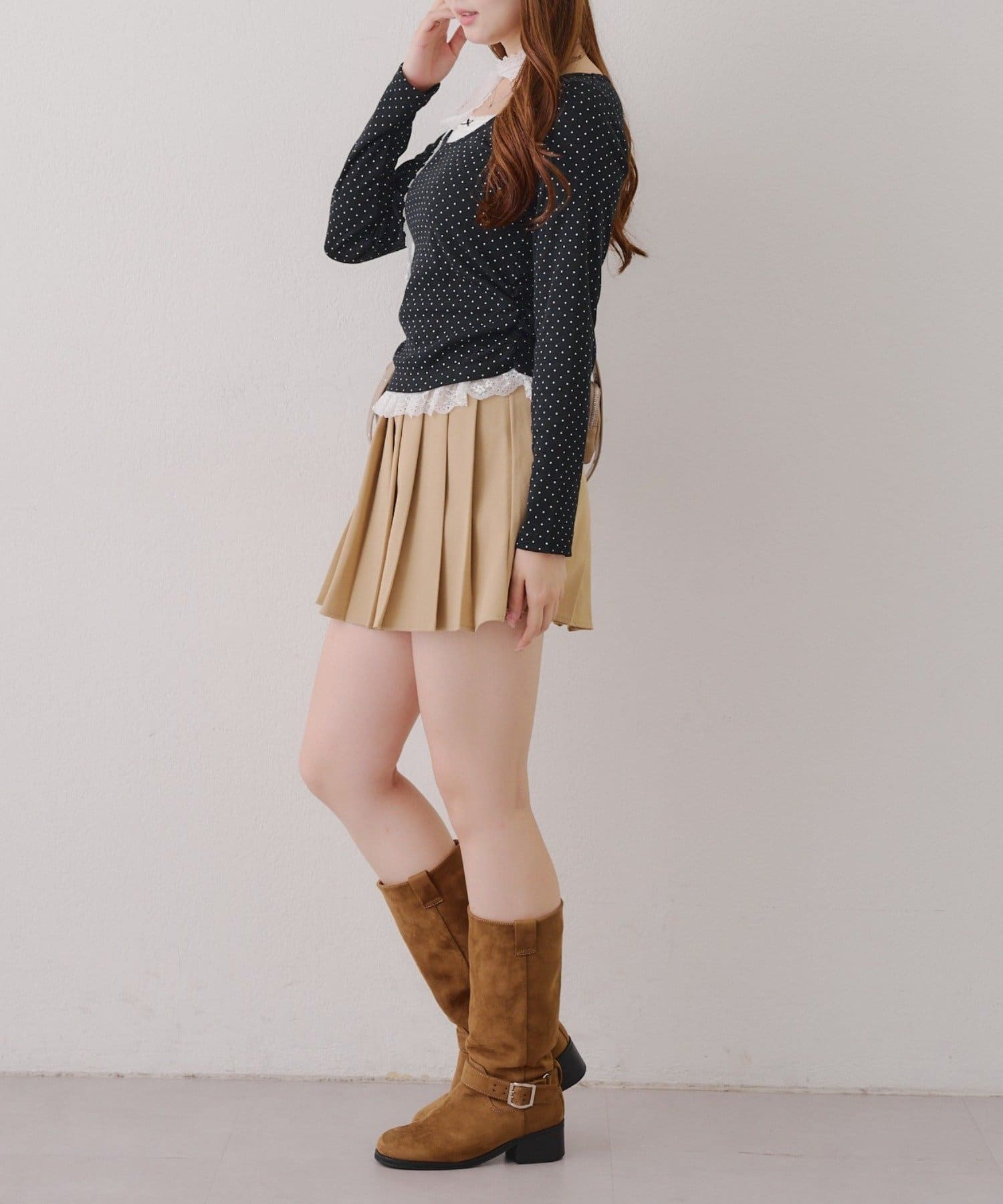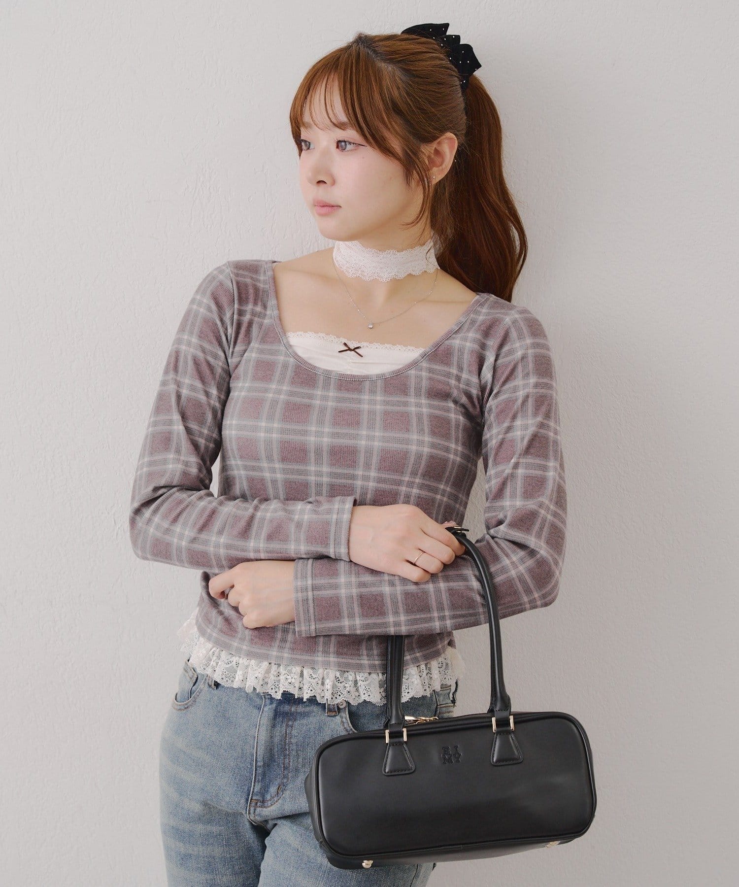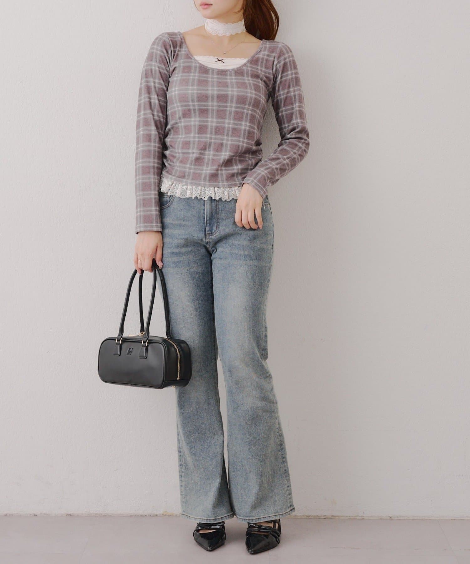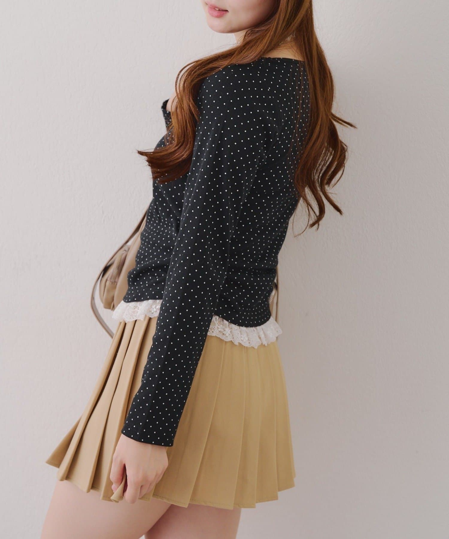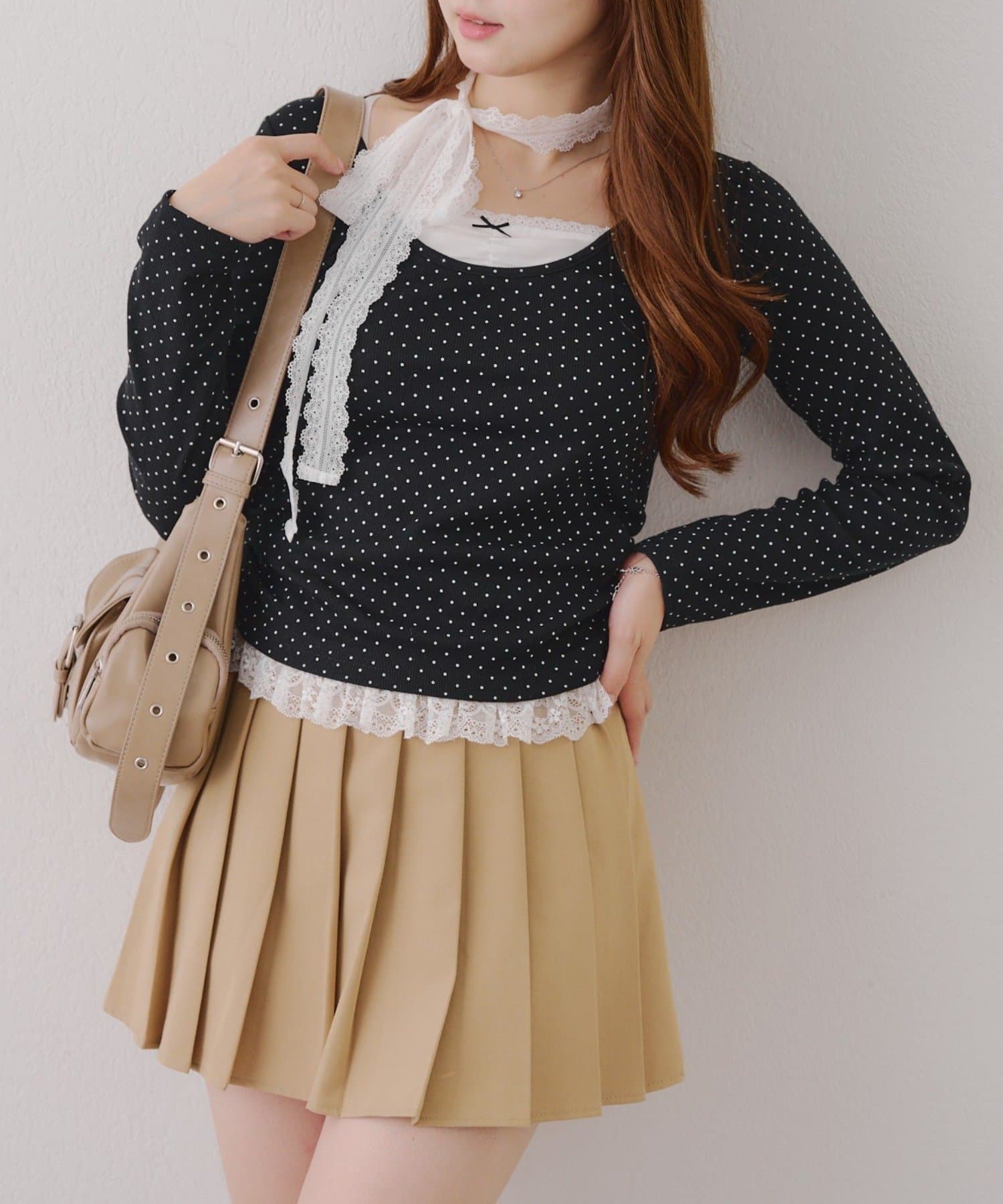 ・胸元のレースドッキングが、よりガーリーな印象に