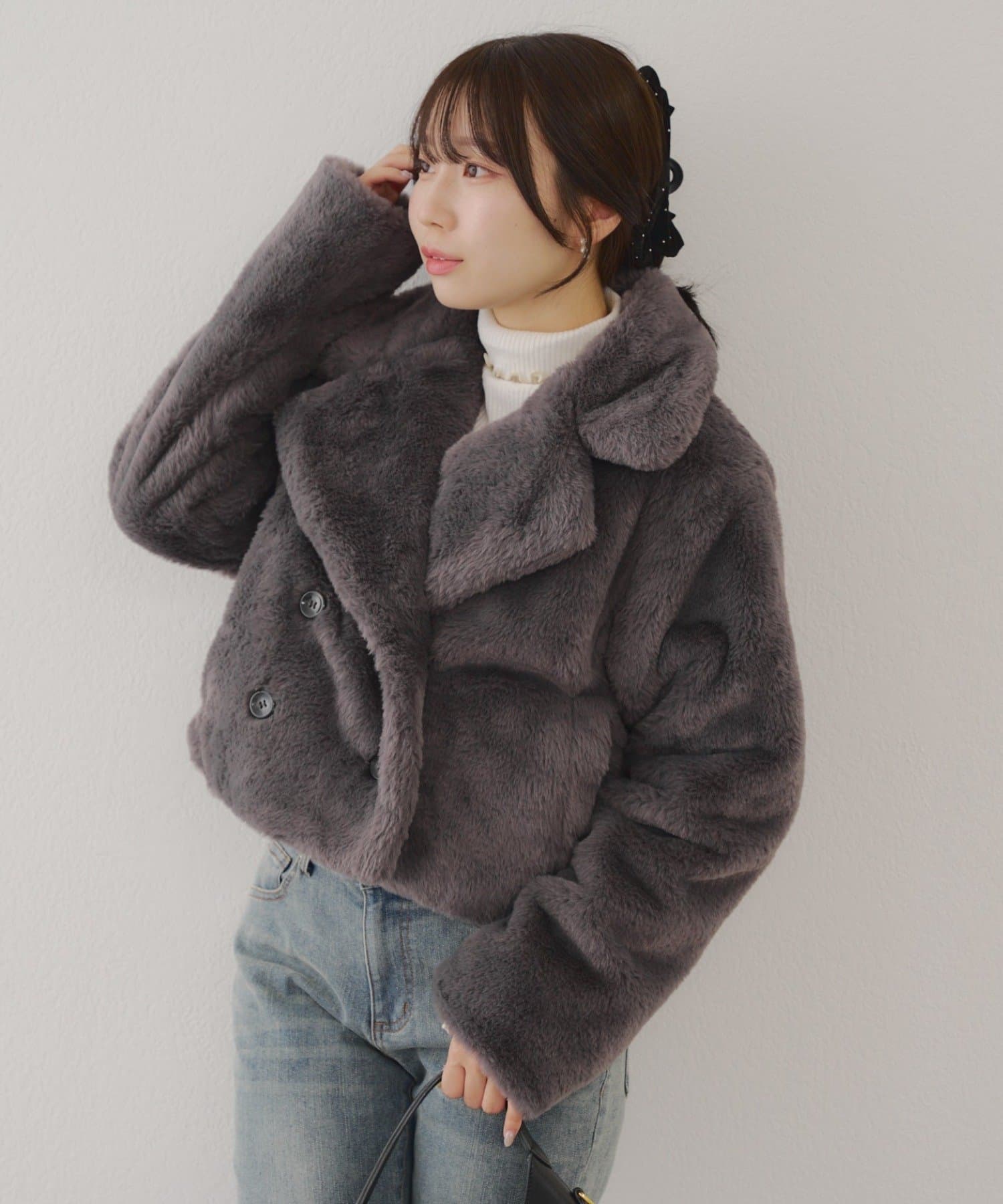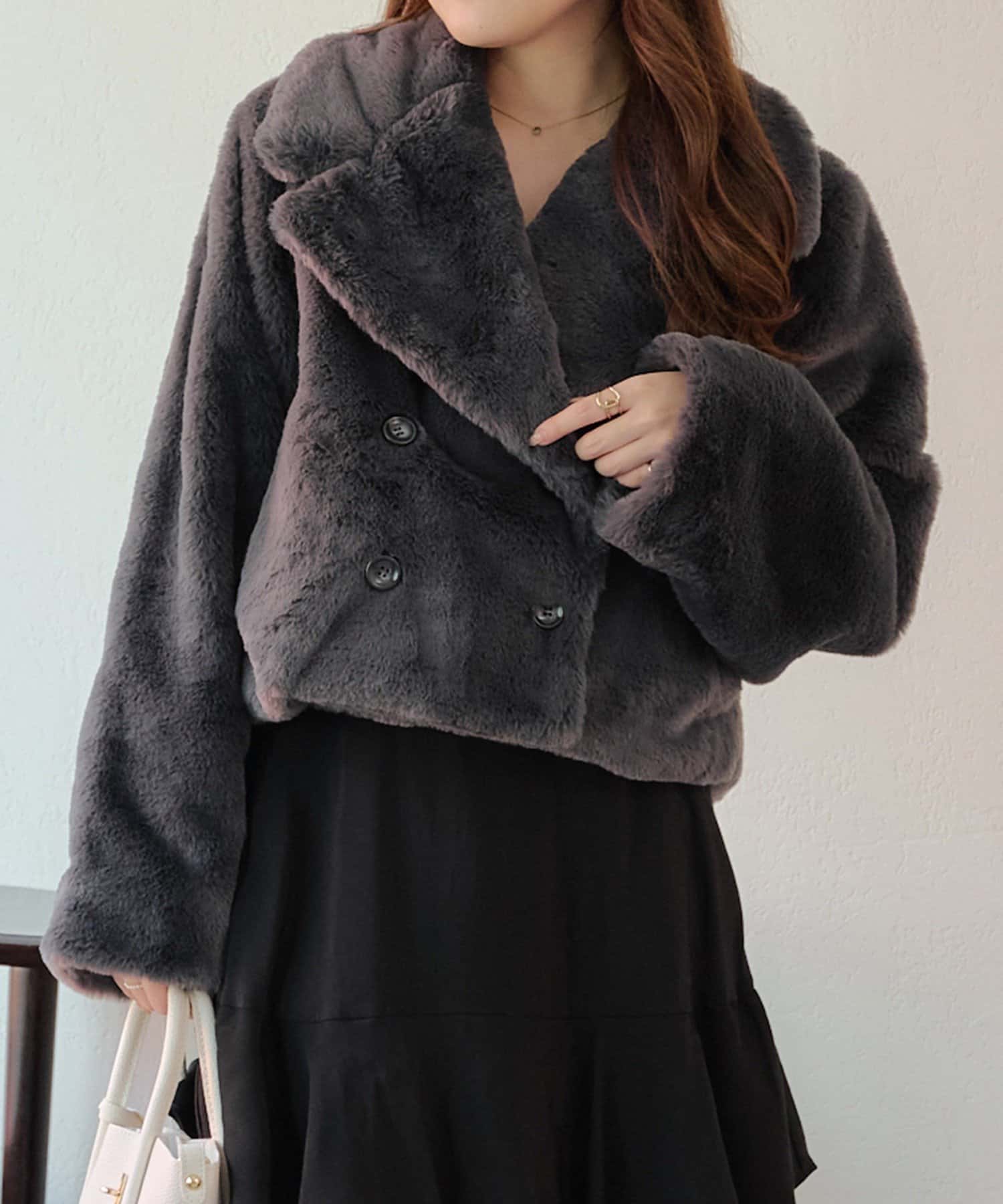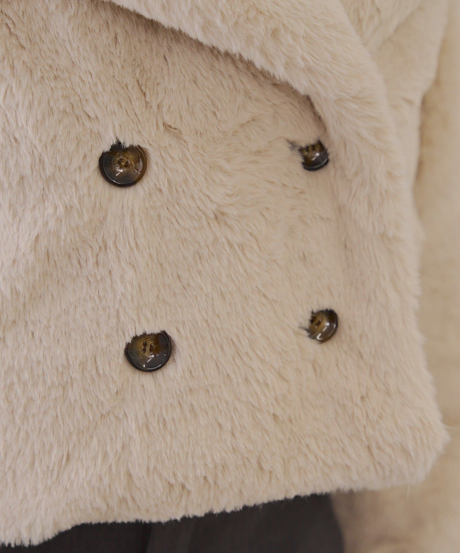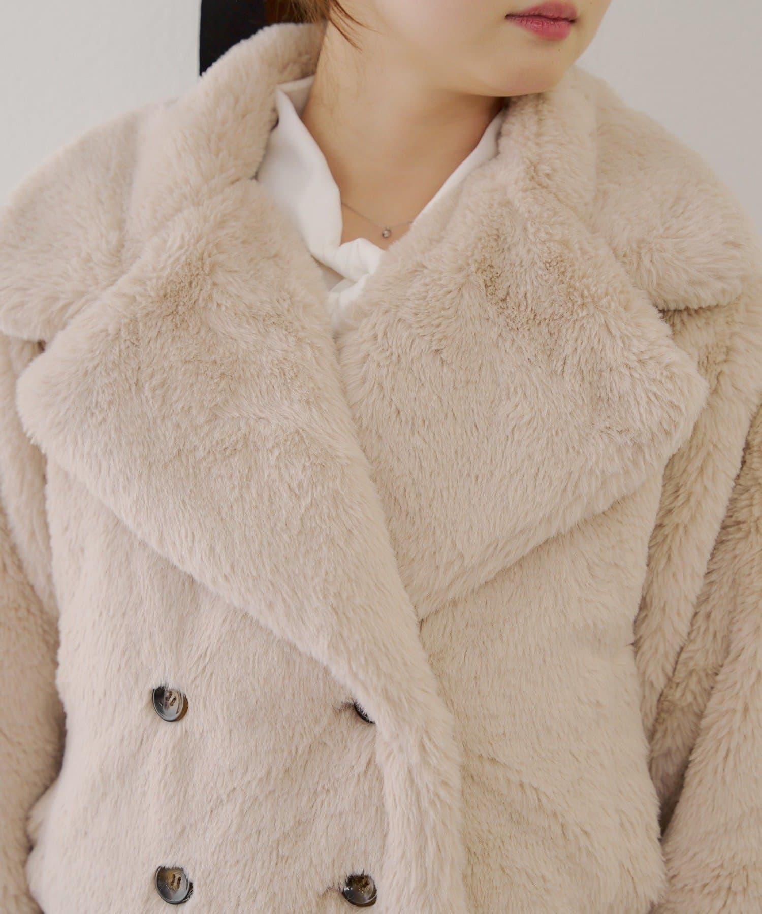 ダブルボタンで大人っぽく、ファーが女性らしさも際立ててくれるアイテムです。