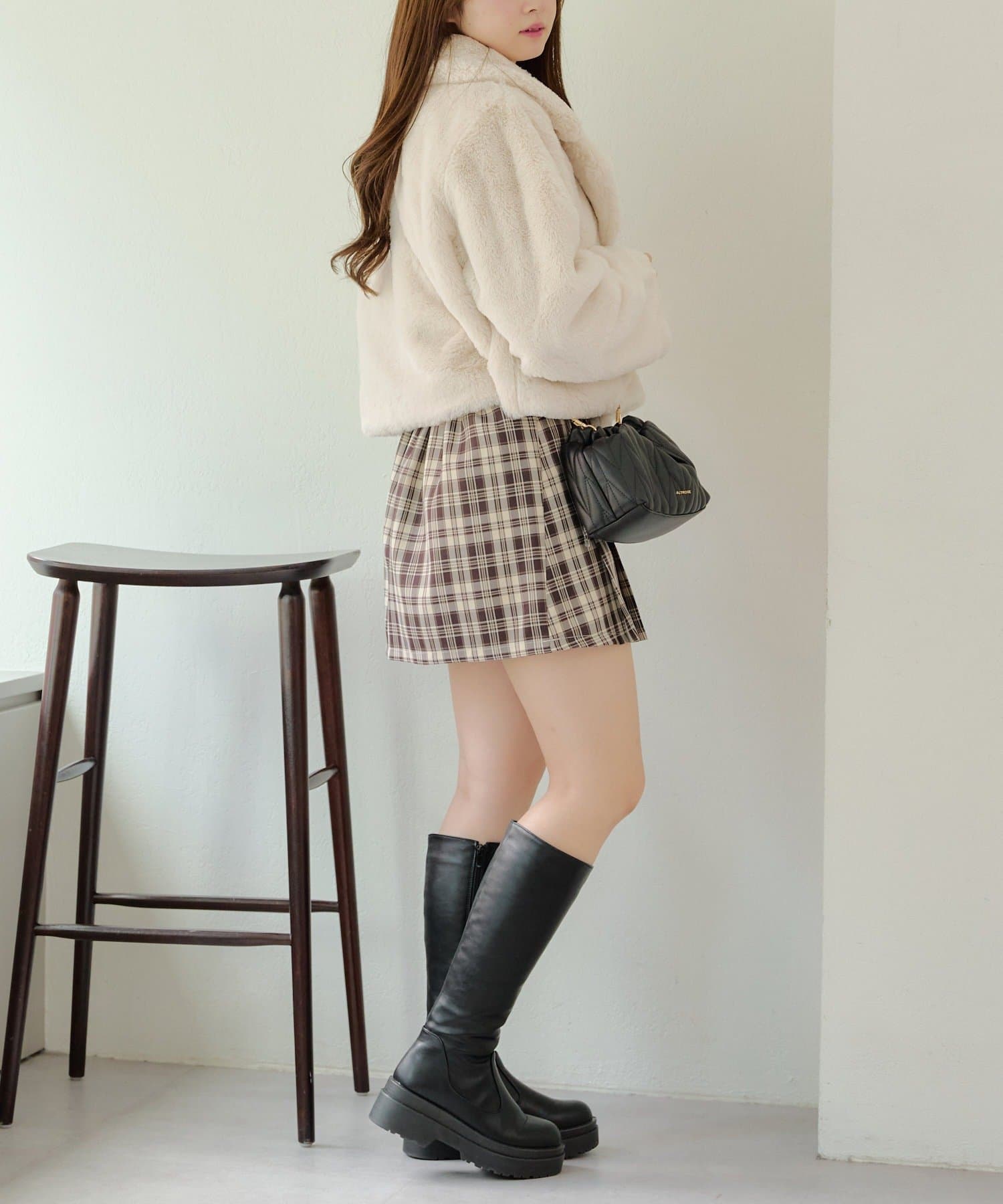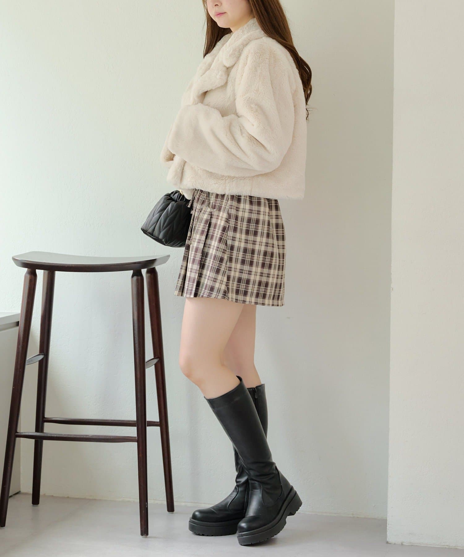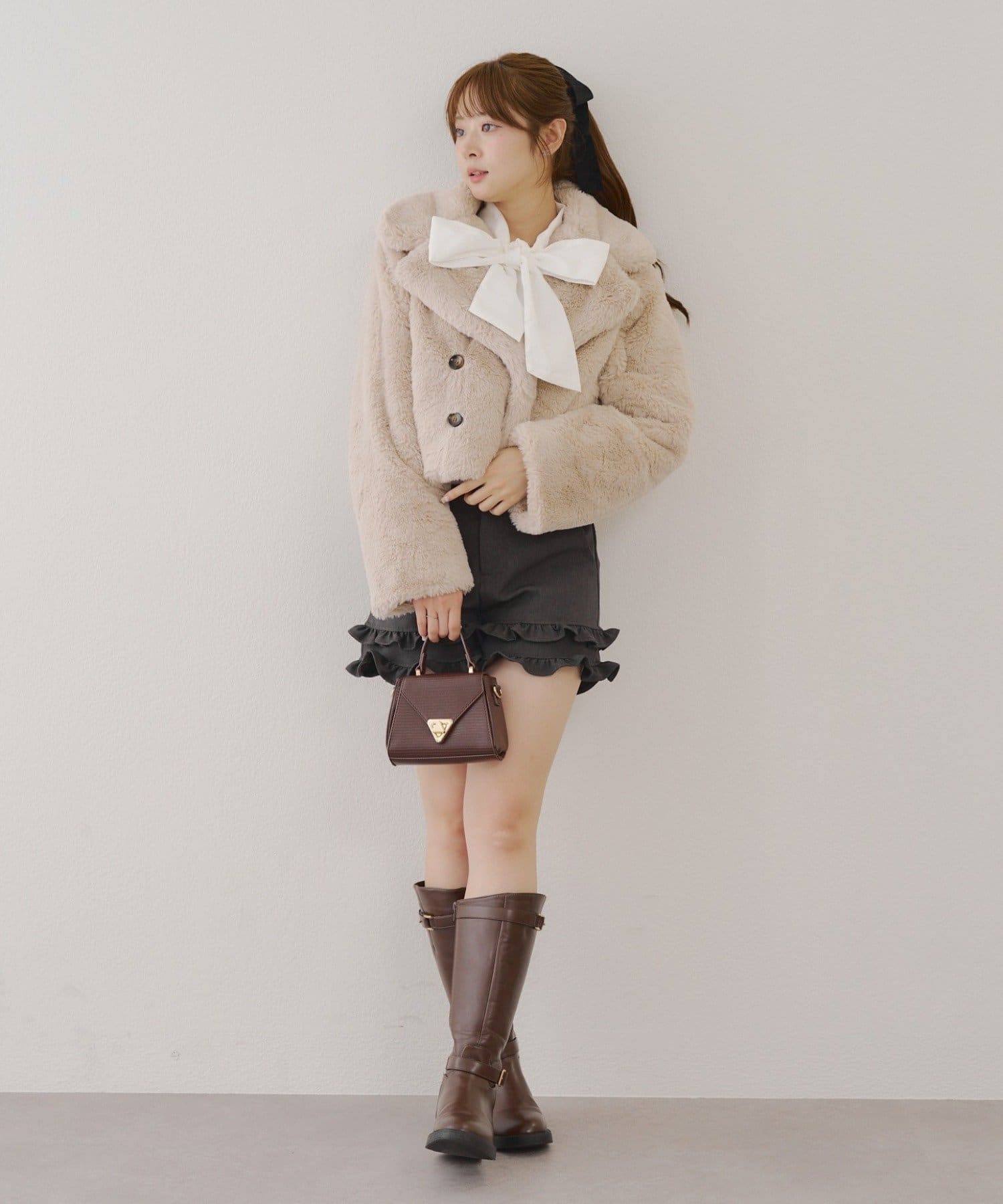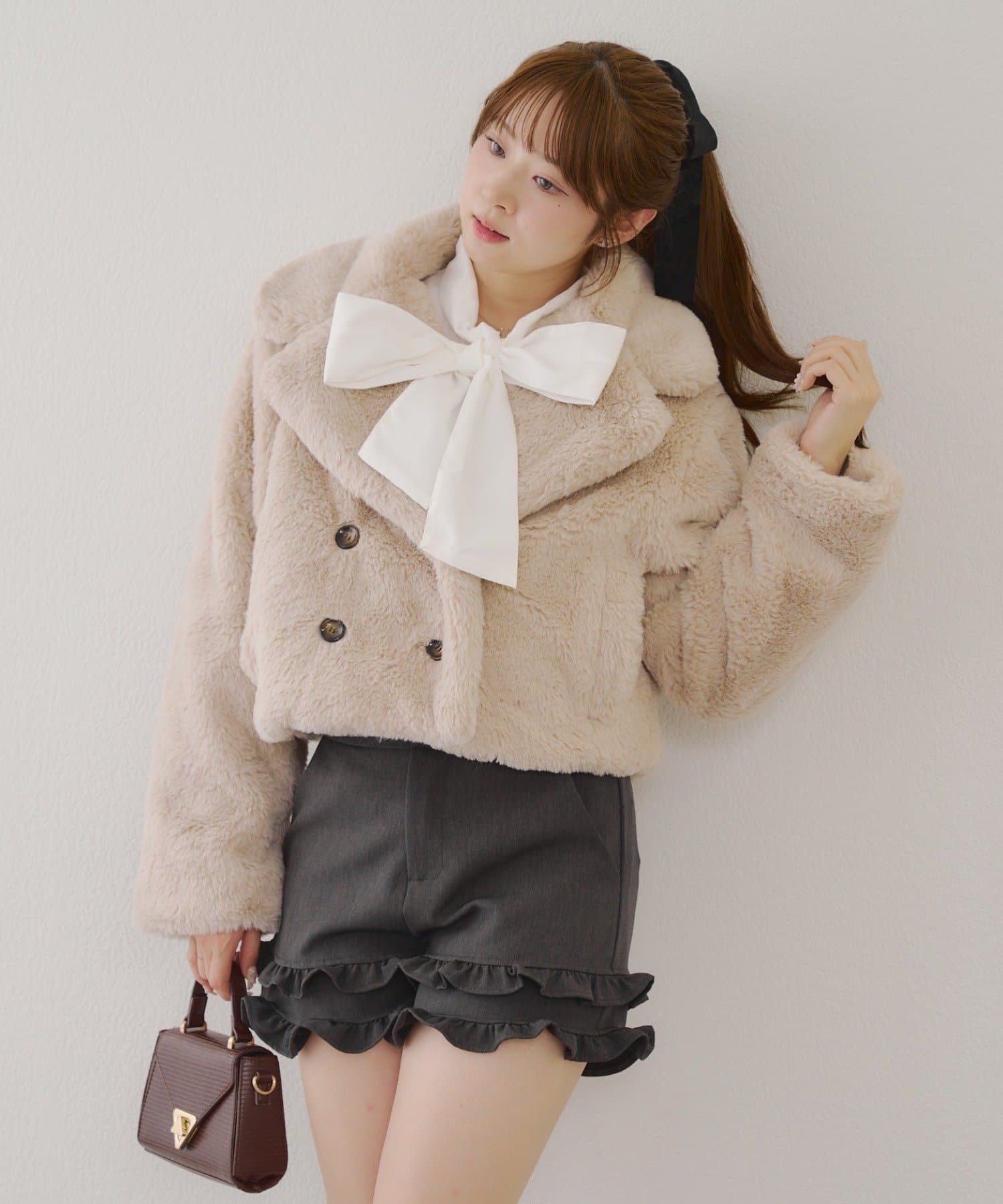 ダブルボタンで大人っぽく、ファーが女性らしさも際立ててくれるアイテムです。