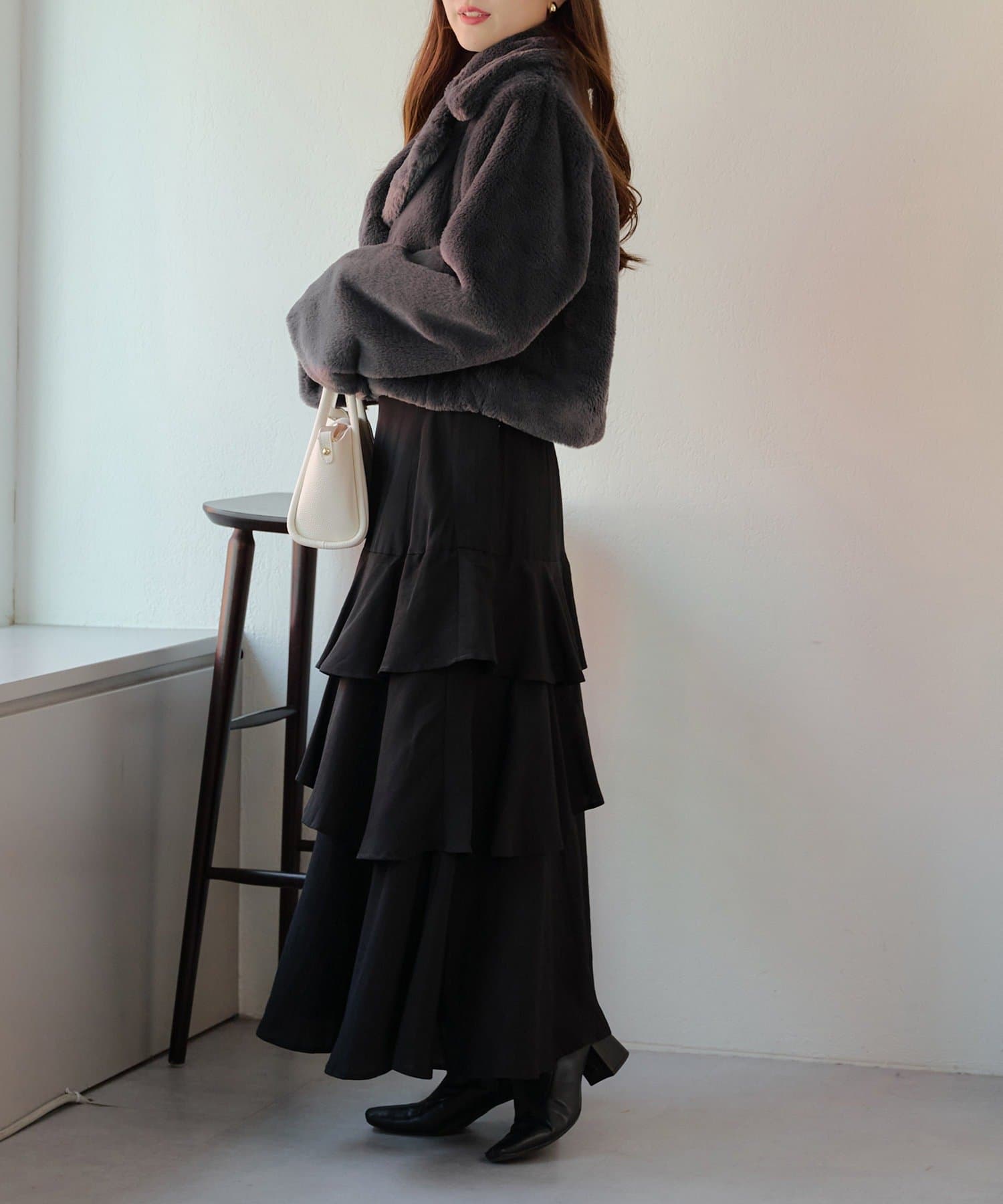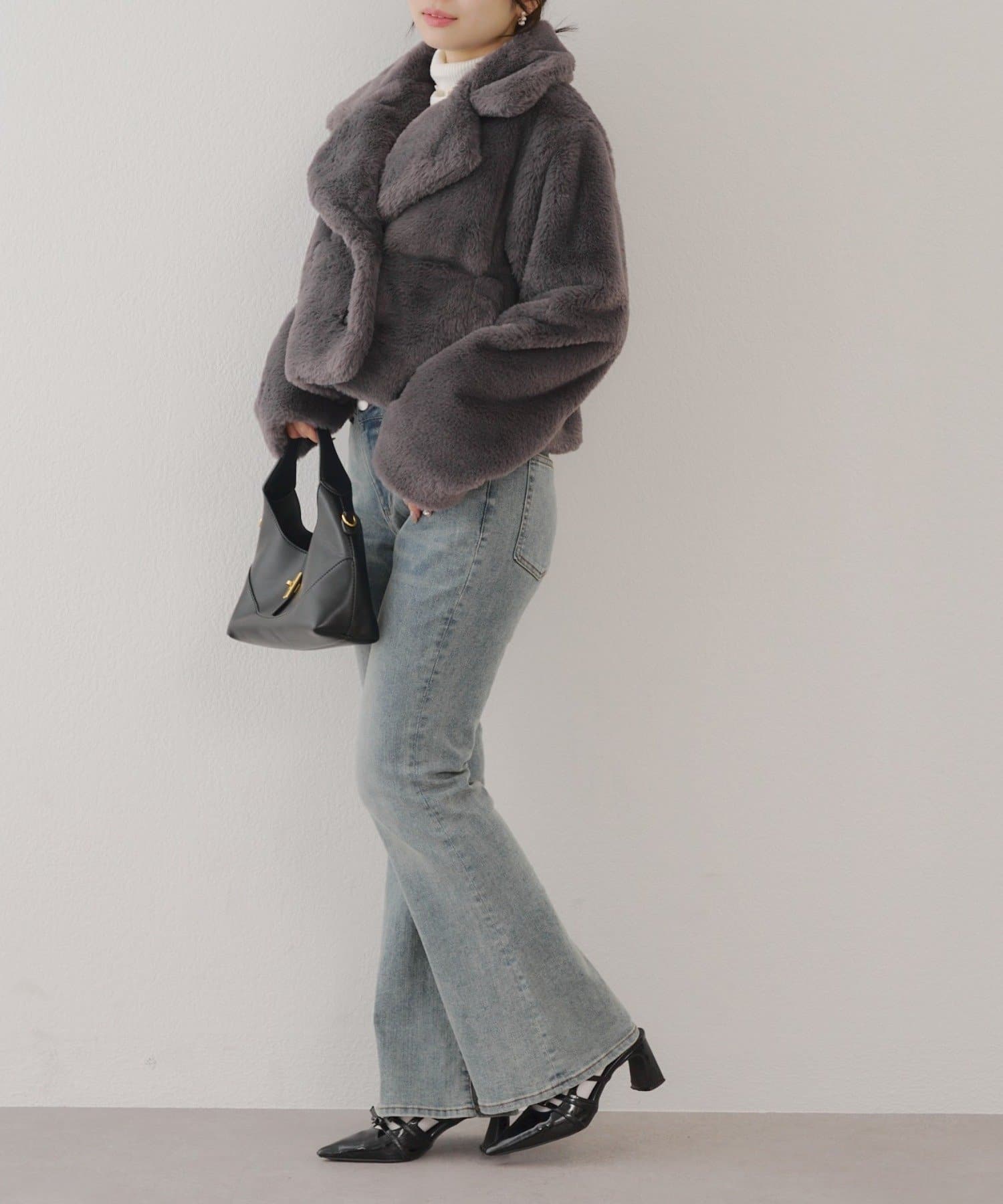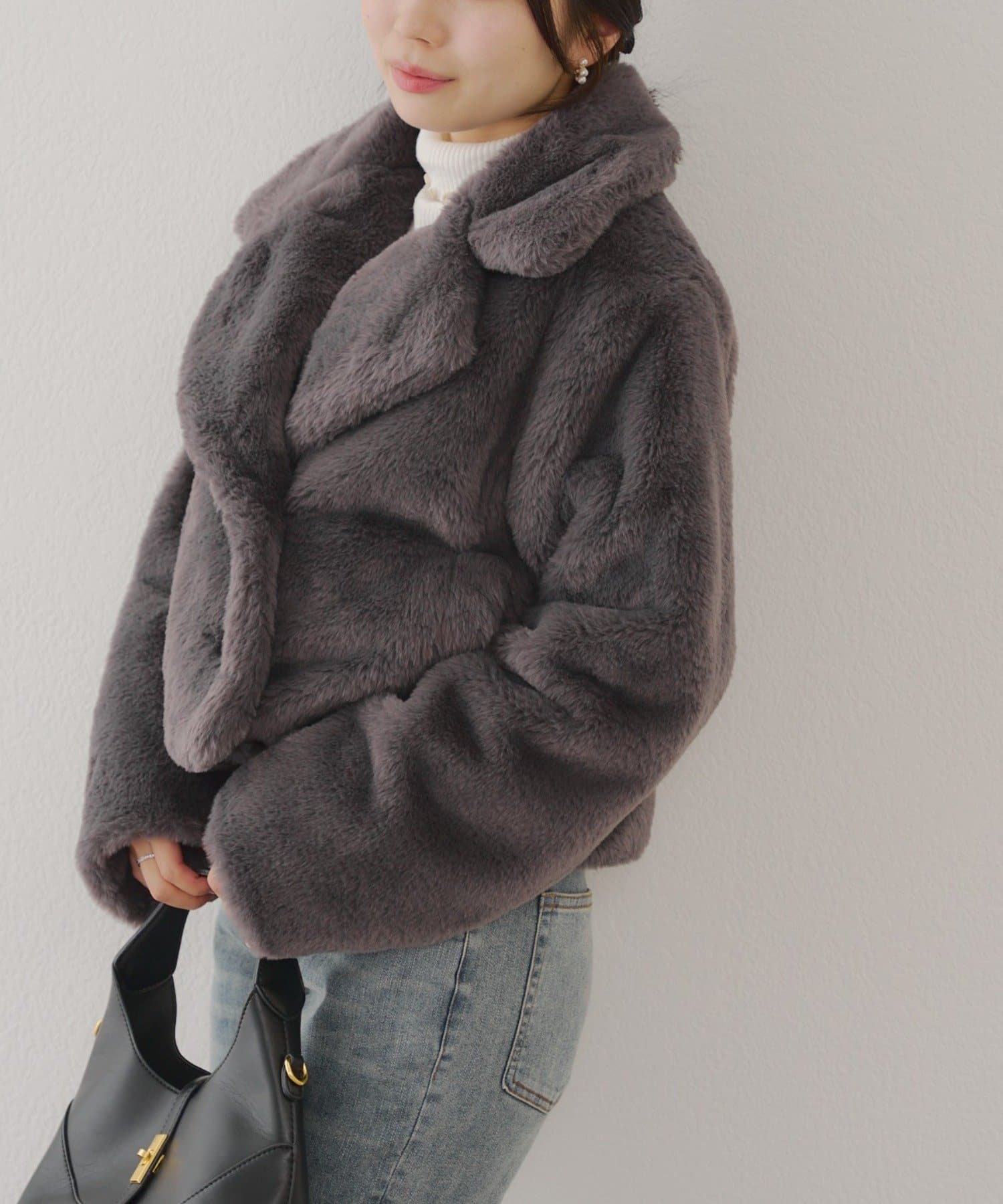 ふわふわのファーが心地良い肌触りのジャケット。