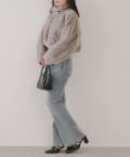 ・ハイウエストのデニムフレアパンツで華奢見え間違いなしの韓国レディな着こなしも◎
