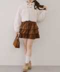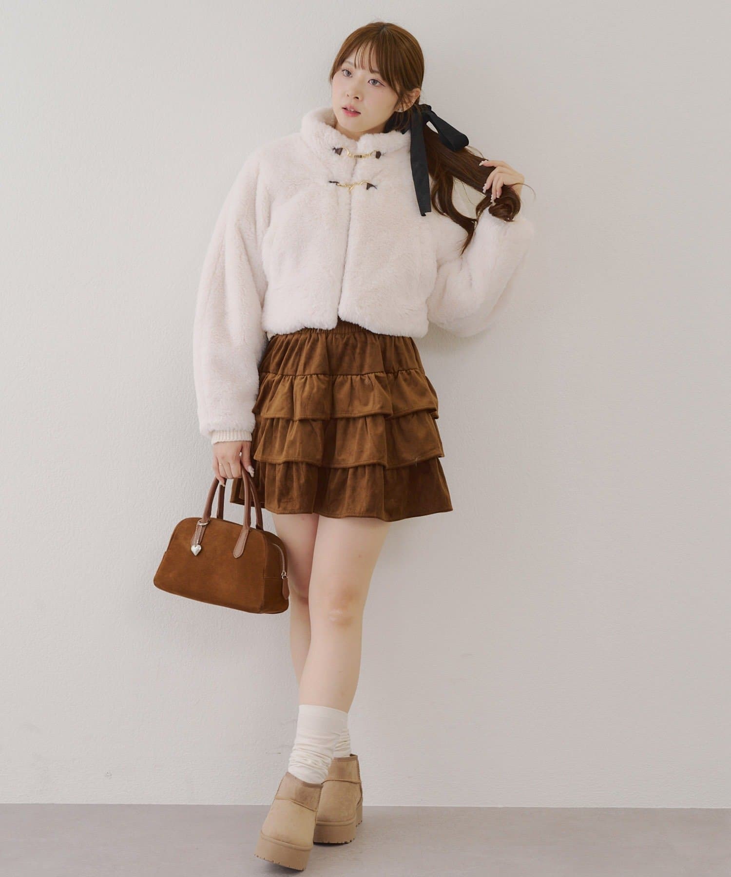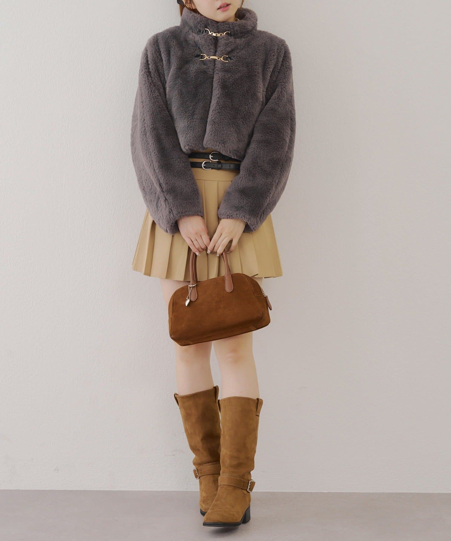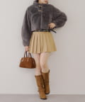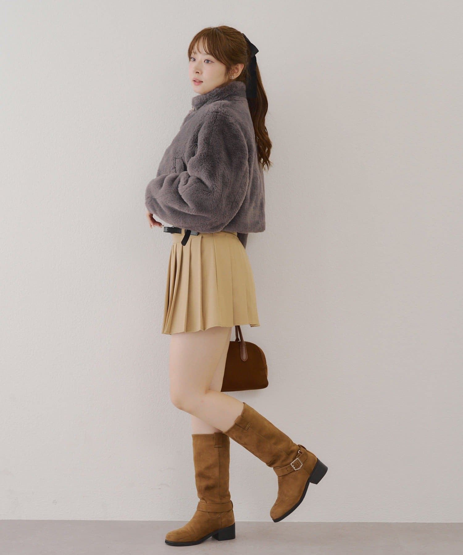 ・ツイードミニスカートにロングブーツで王道のモテコーデ