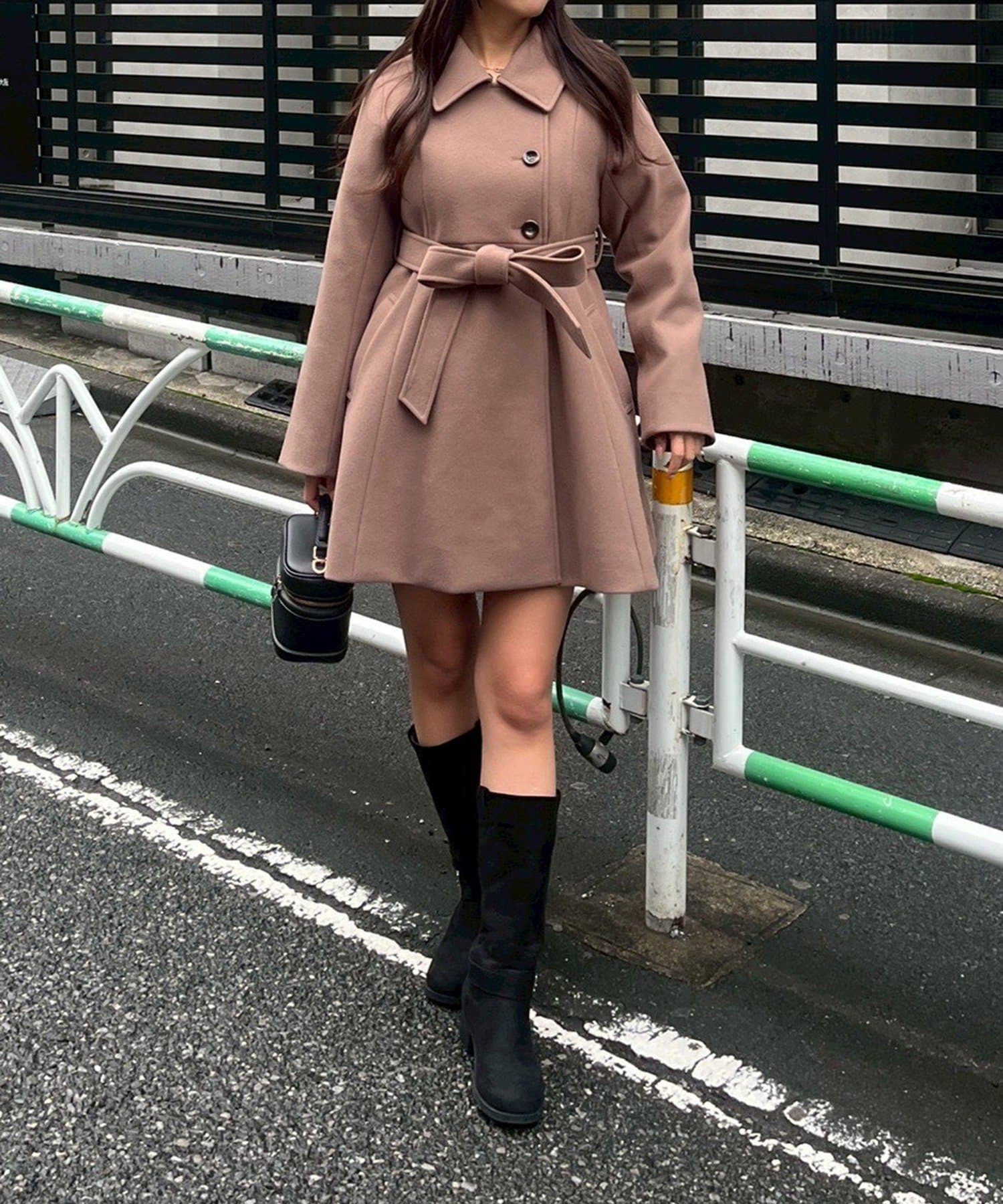 ・ミニワンピの上からサッと羽織るだけでフェミニンなコーデが完成