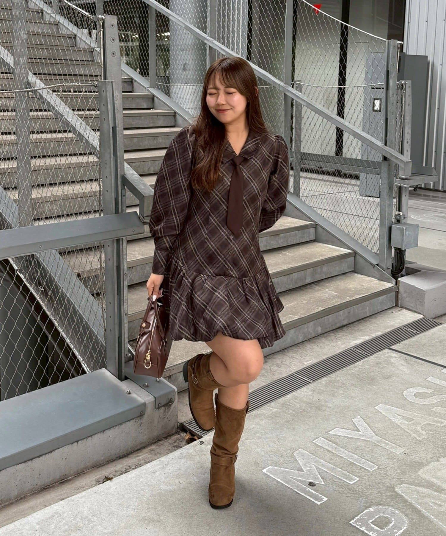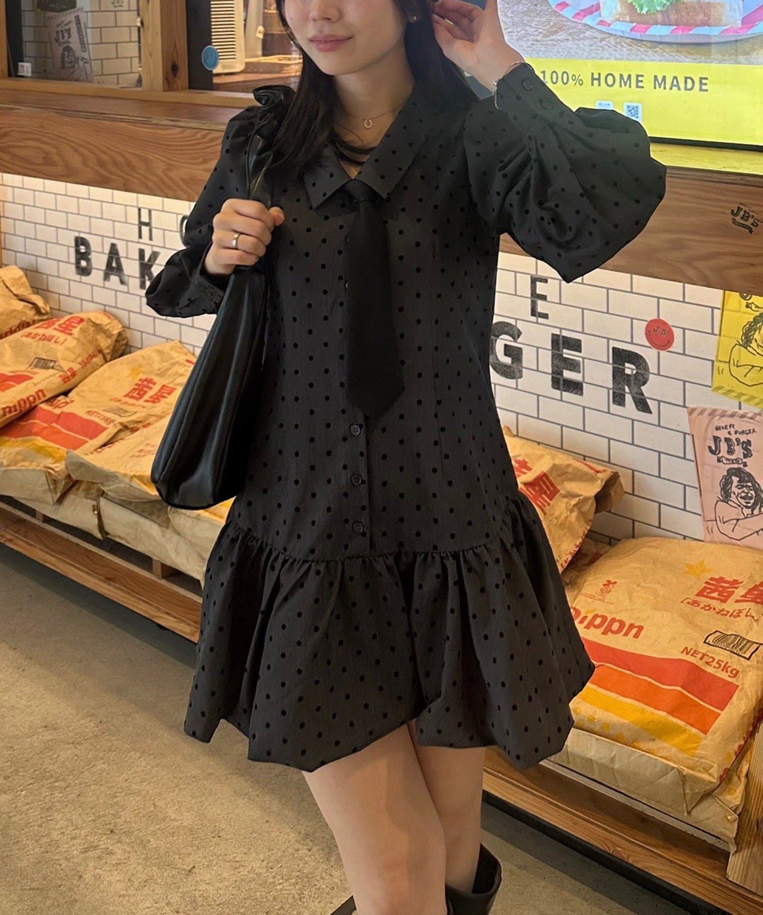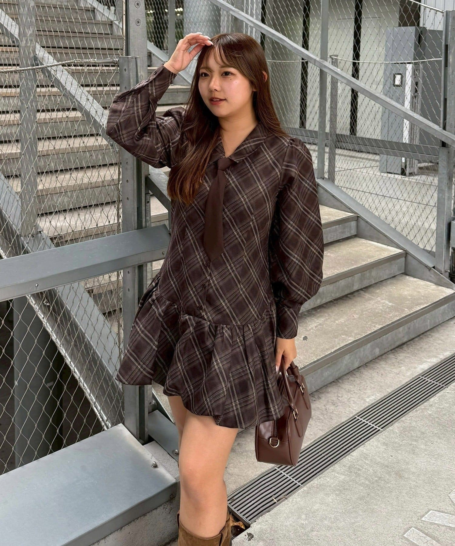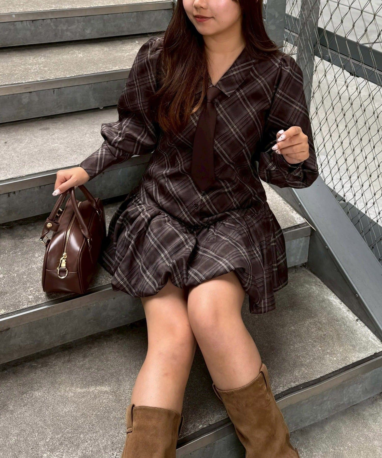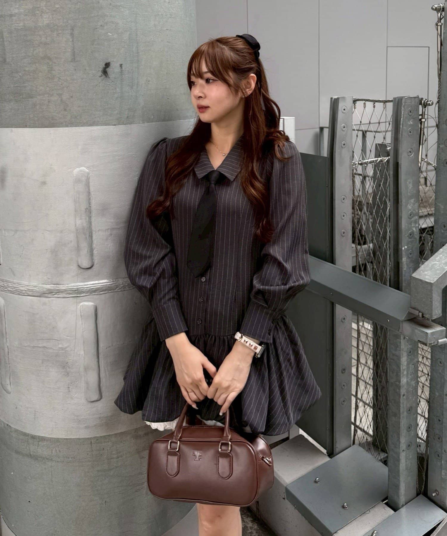 ・ネクタイ付きでクラシカルな雰囲気のトレンドワンピース
