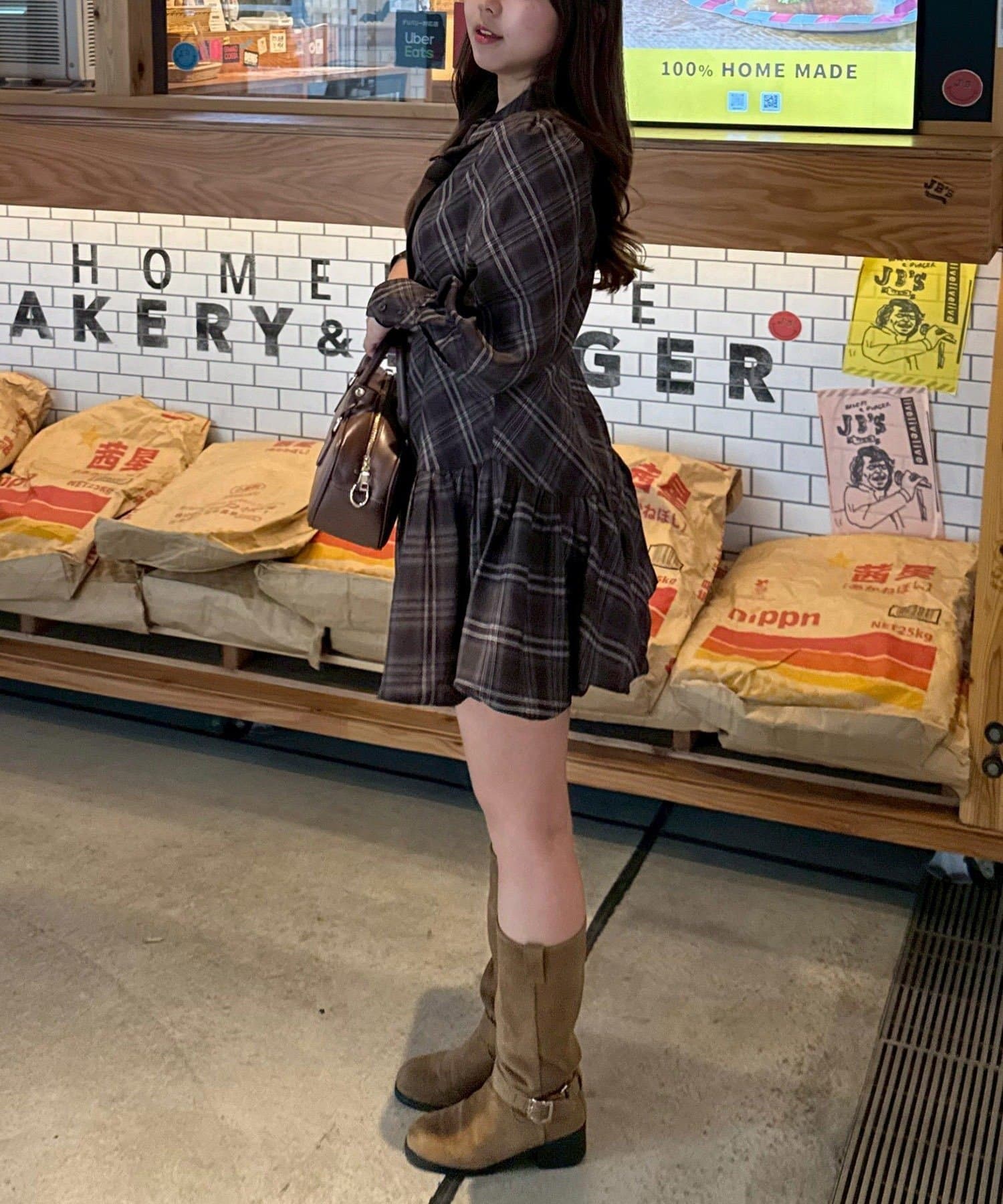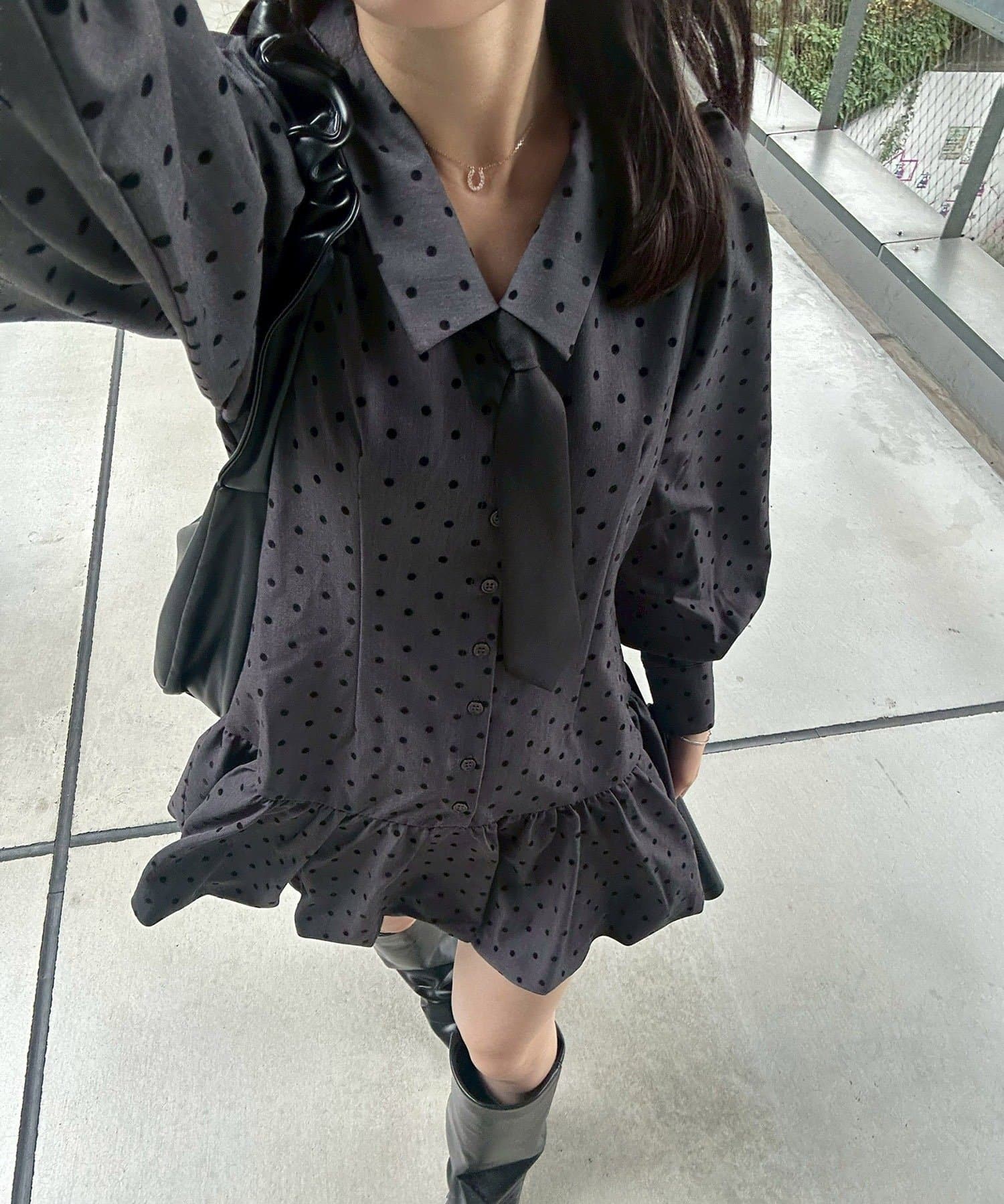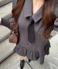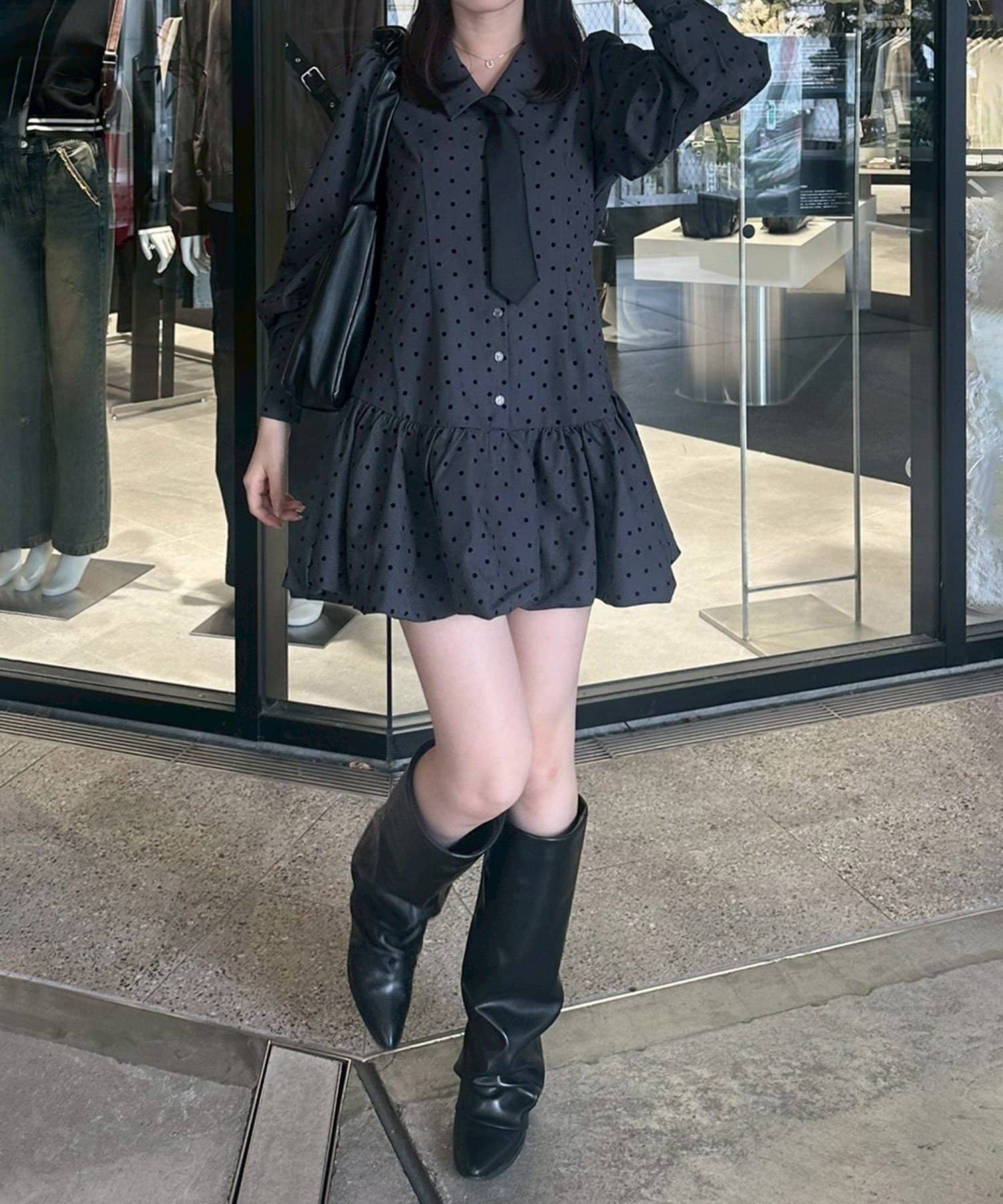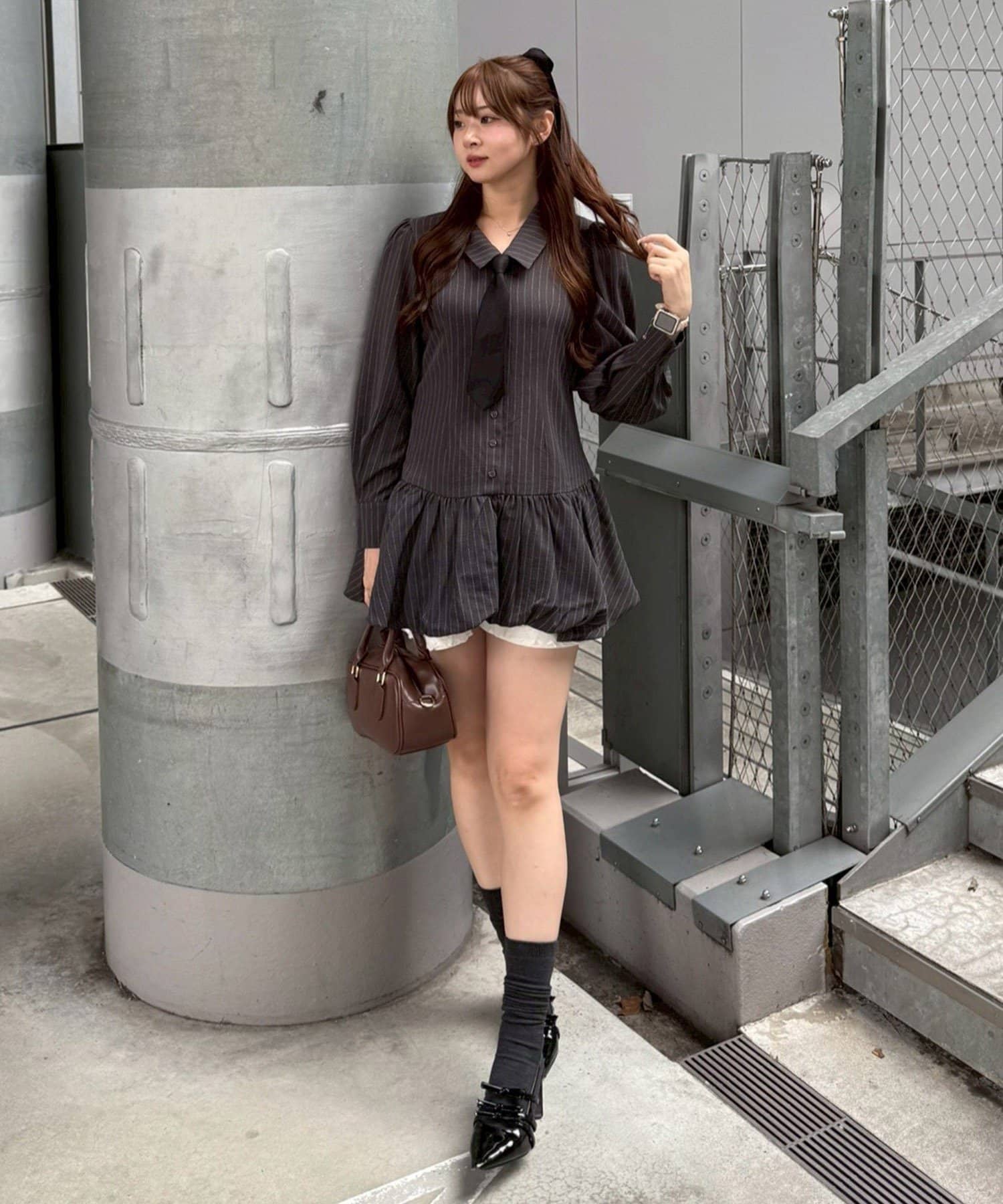 ・ネクタイ付きでクラシカルな雰囲気のトレンドワンピース