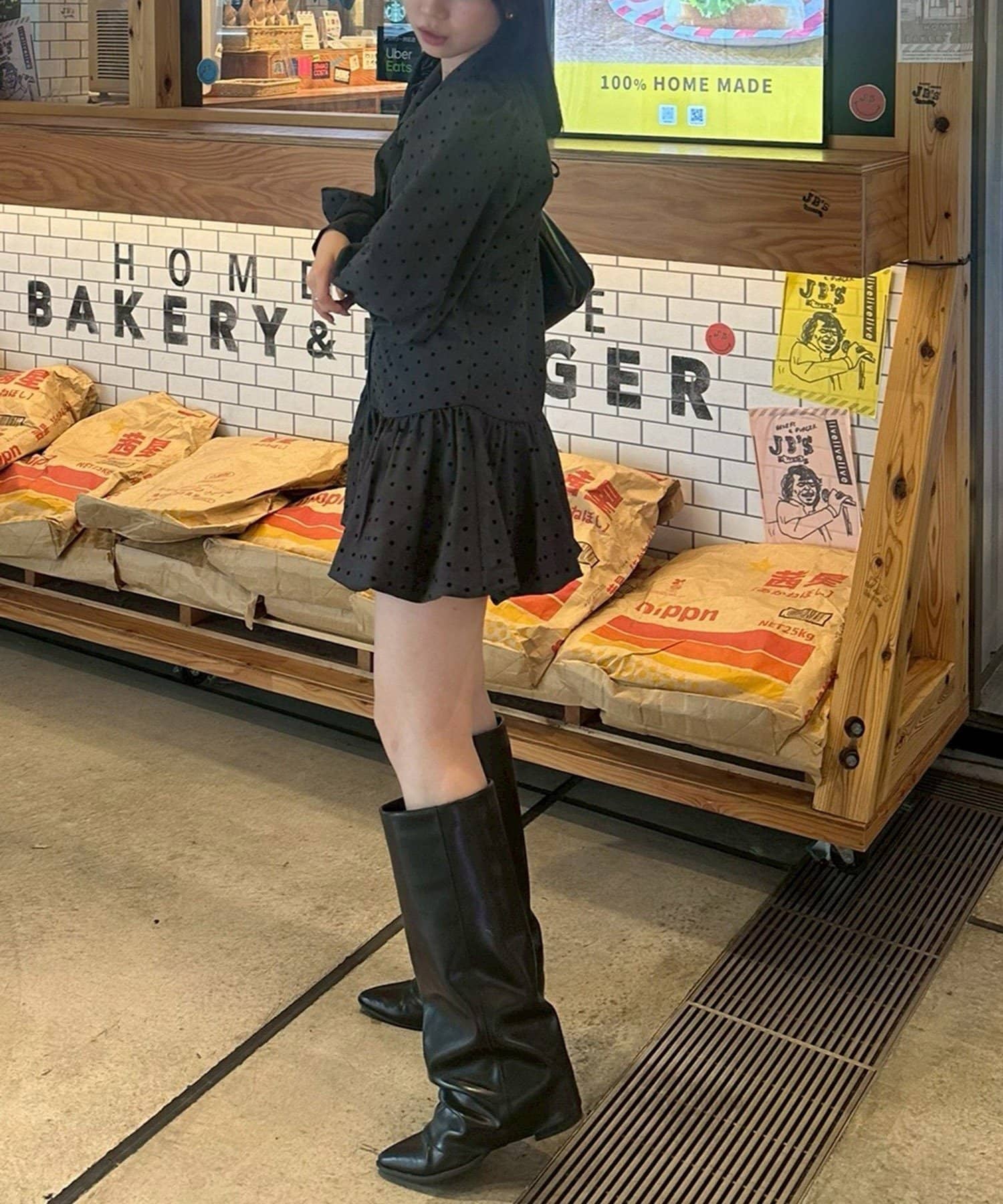 ・ルーズなロングブーツ合わせでこなれ感のある着こなしも◎