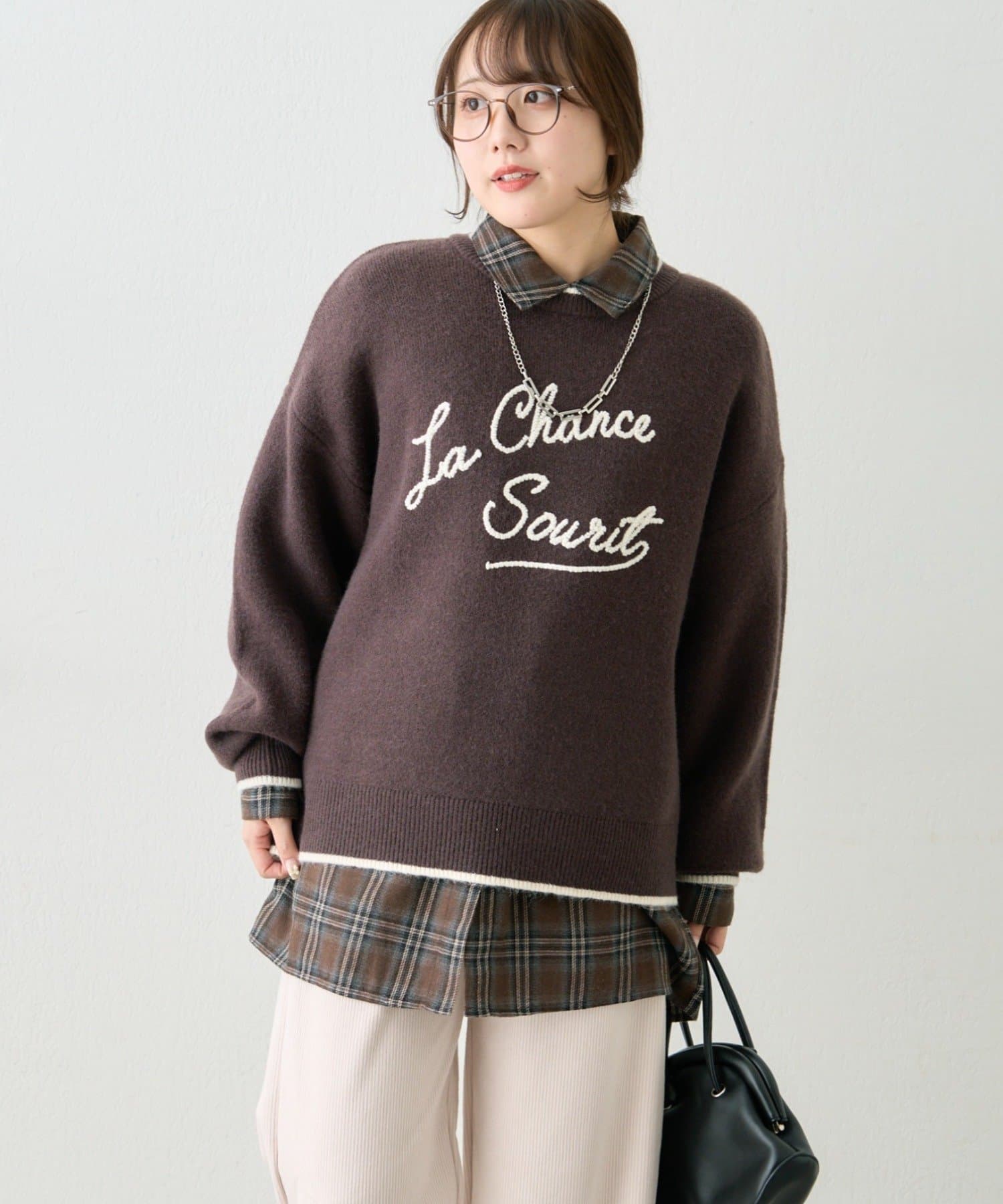 TOP > Remind me and forever > レディース > トップス > ニット/セーター > 【NAO】コード刺繍ロゴプルオーバー