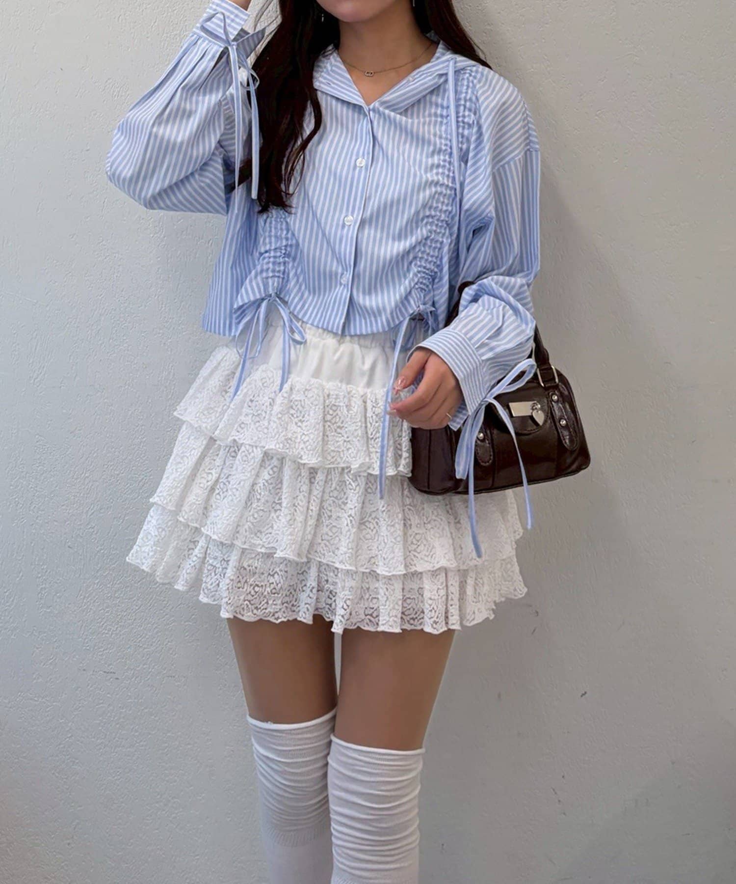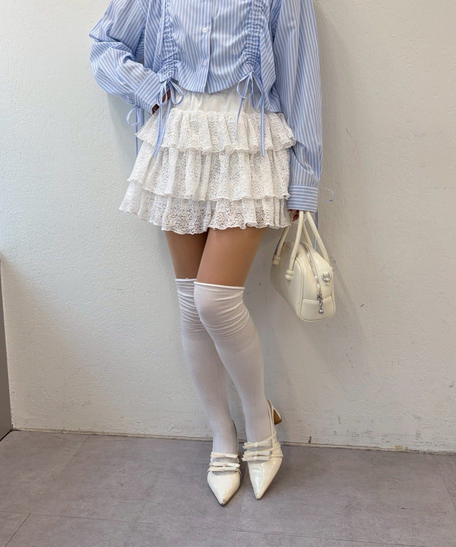 ・繊細なレースを贅沢に使用した、ロマンティックな3段フリルスカート