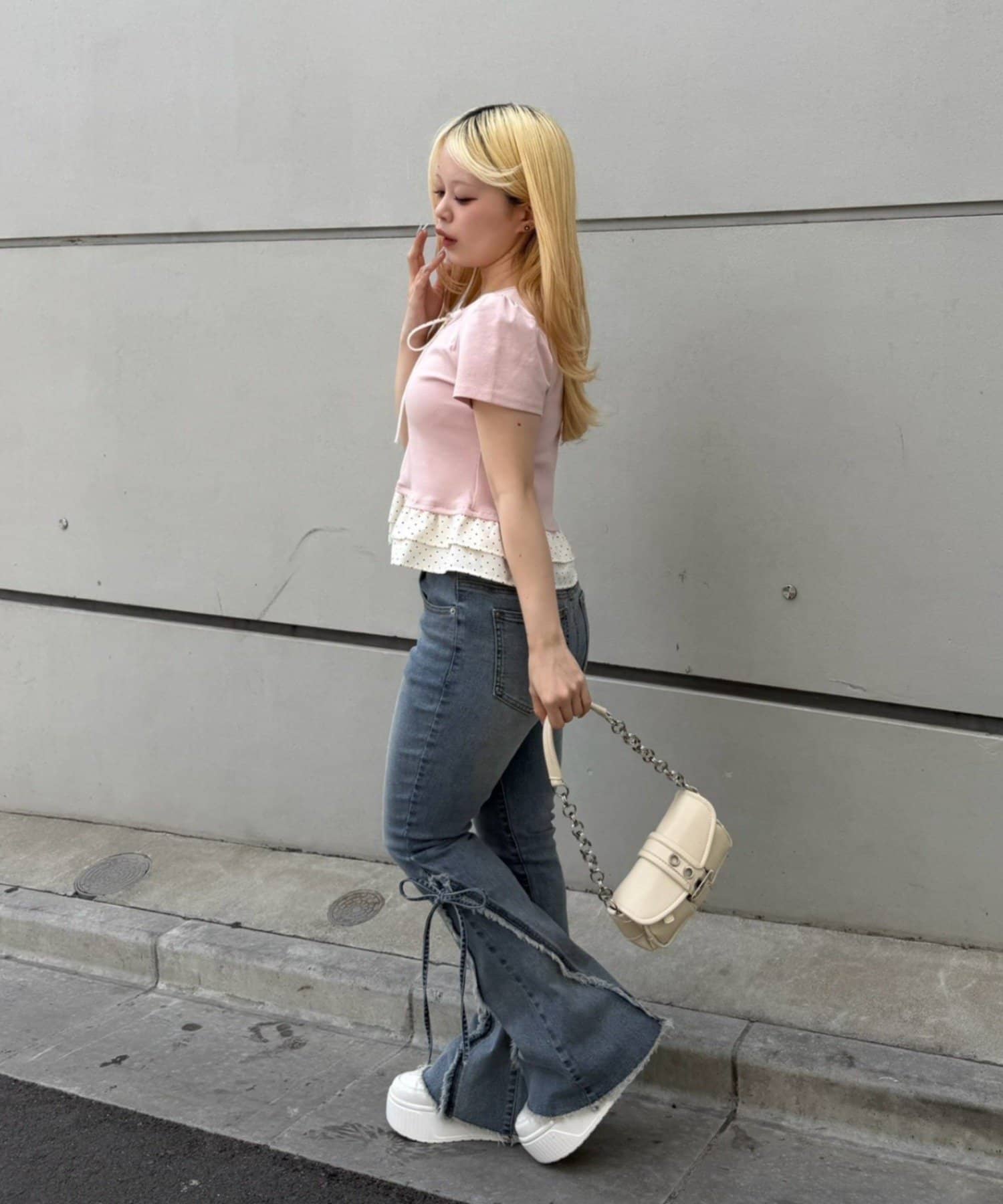 【ANOTHER BRANCH】裾ドットフリルTシャツ
