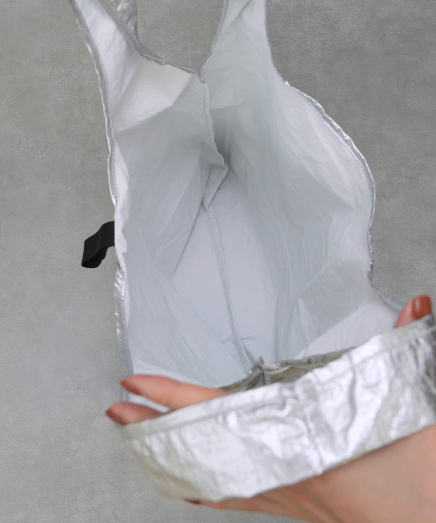 トートの口元にはゴムベルトがついており、コンパクトにまとめることができます。