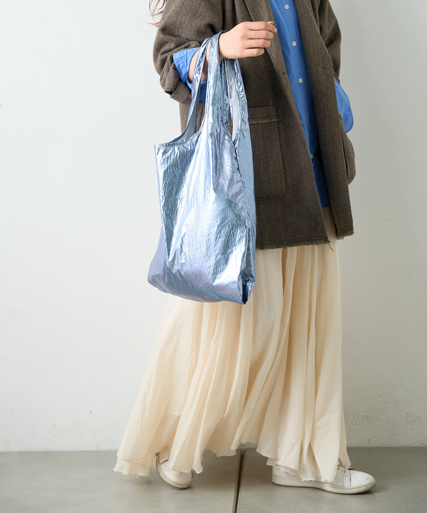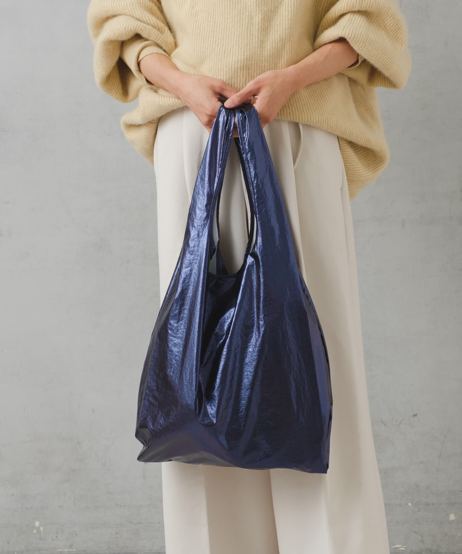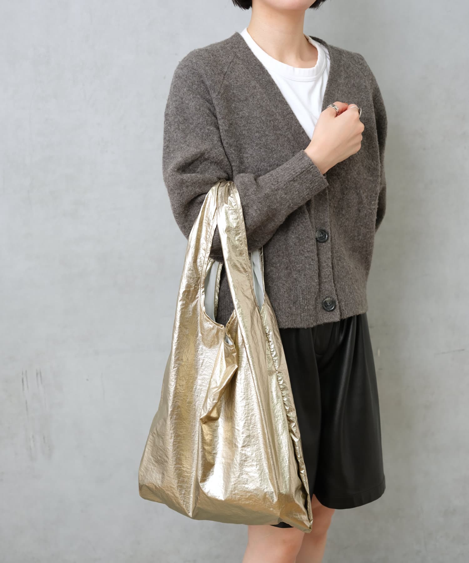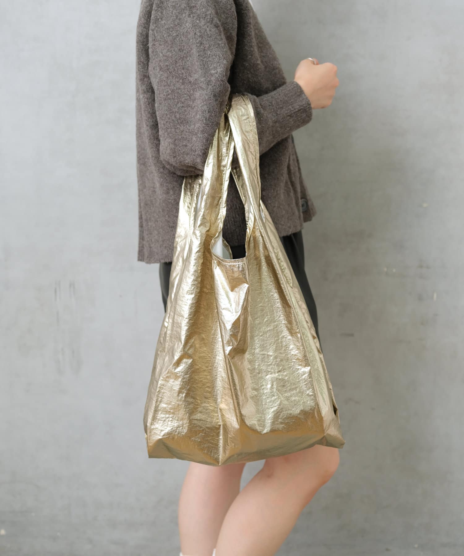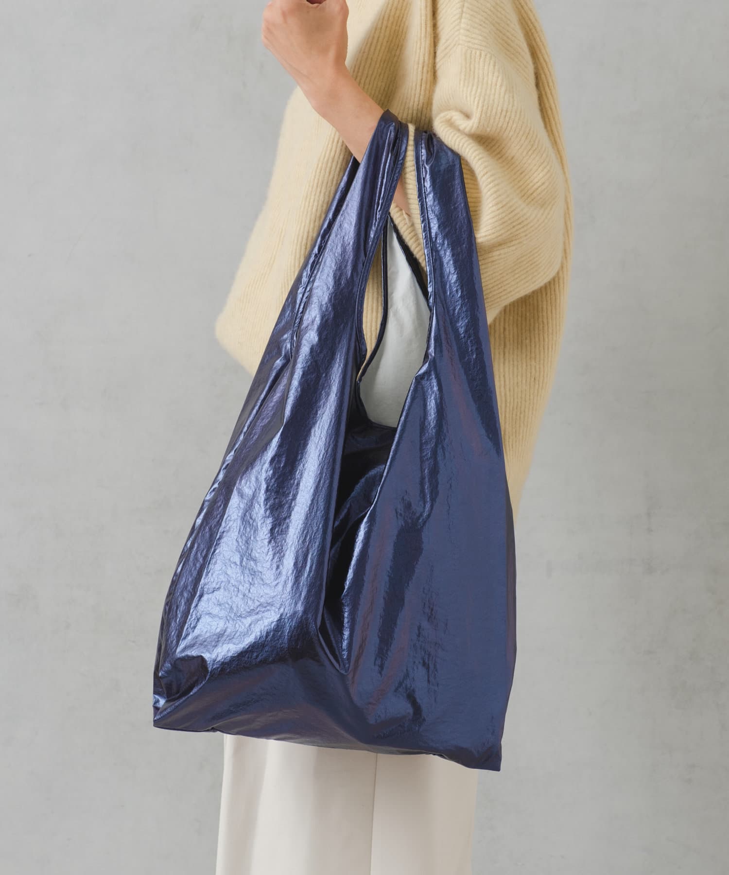 流行りに左右されず、コーデを選ばないメタリック素材のトートは1人1つは持っておきたい、マストアイテム。