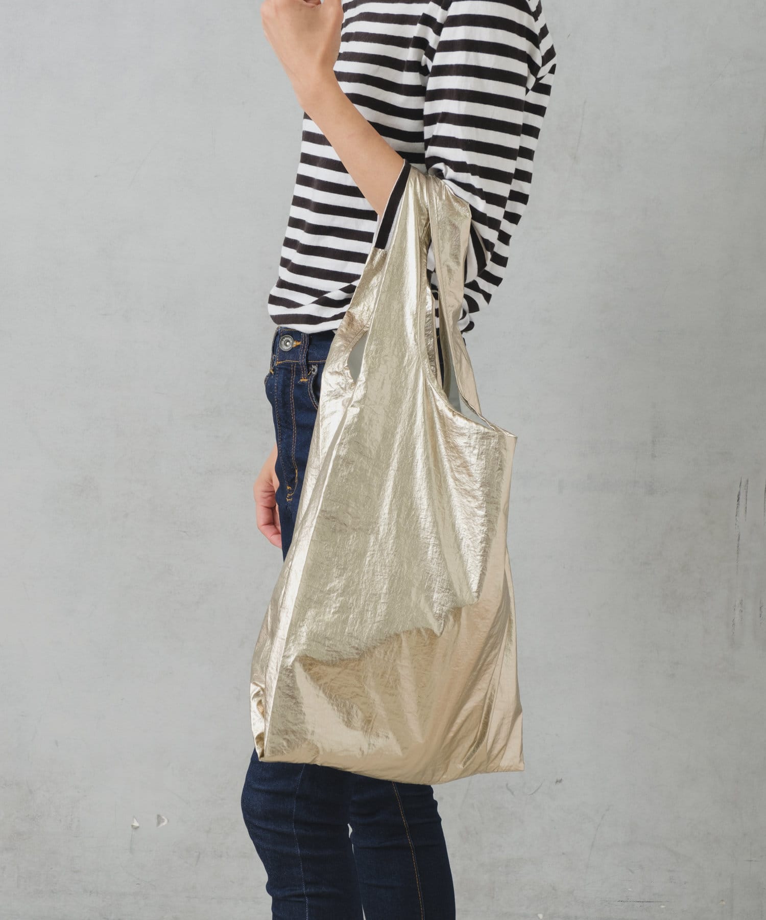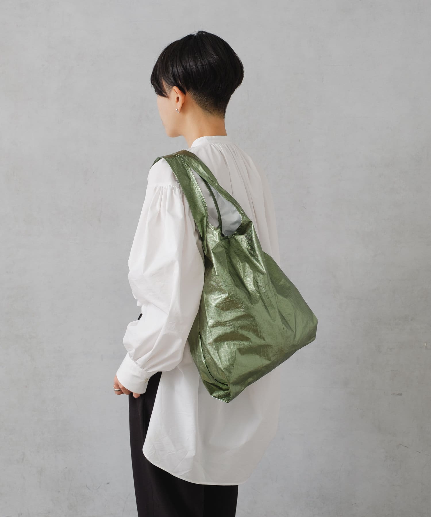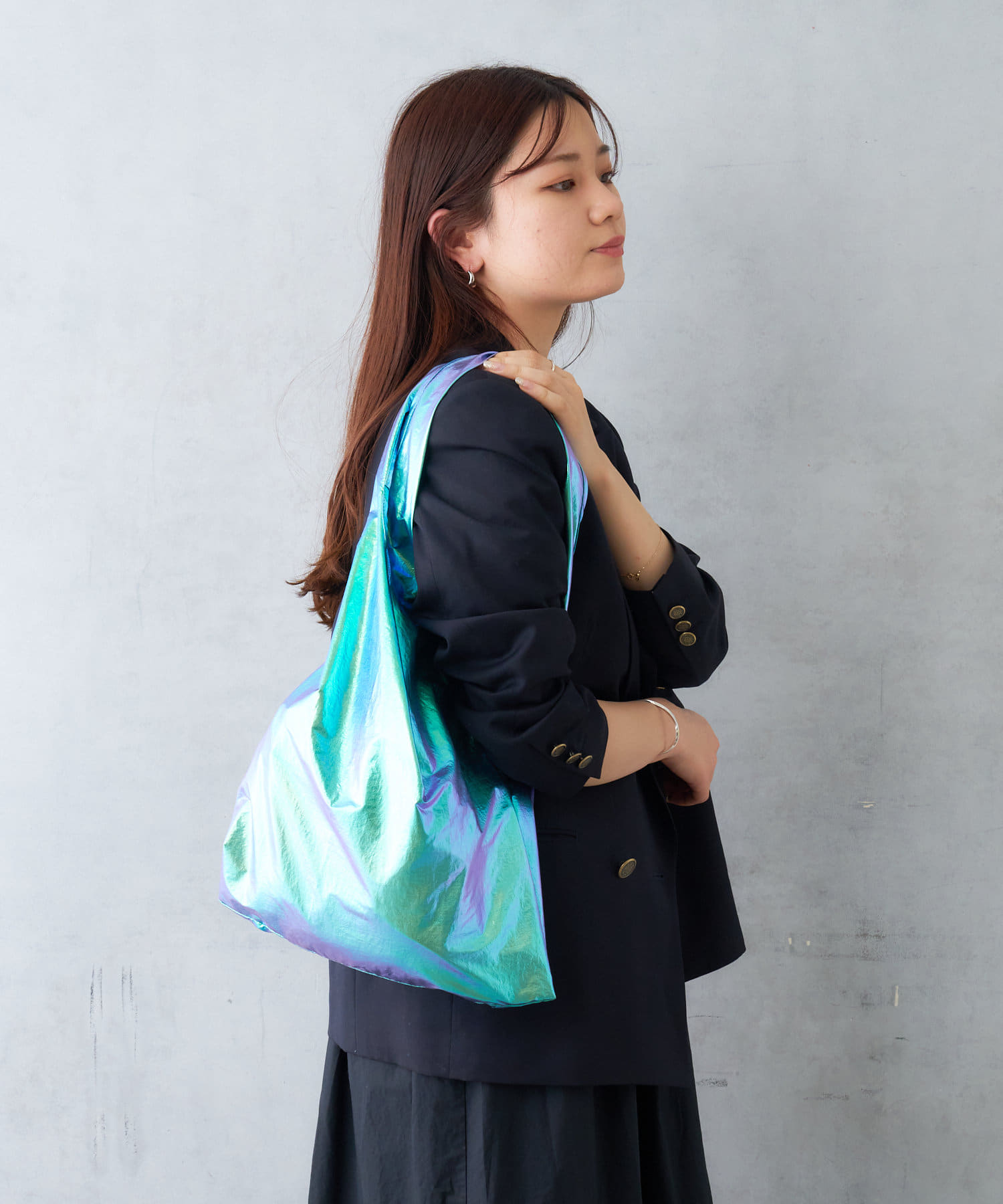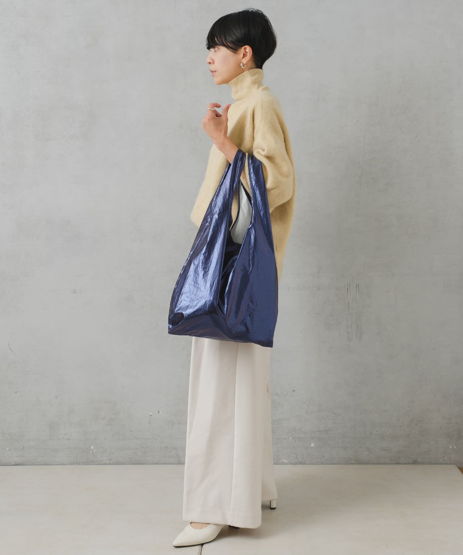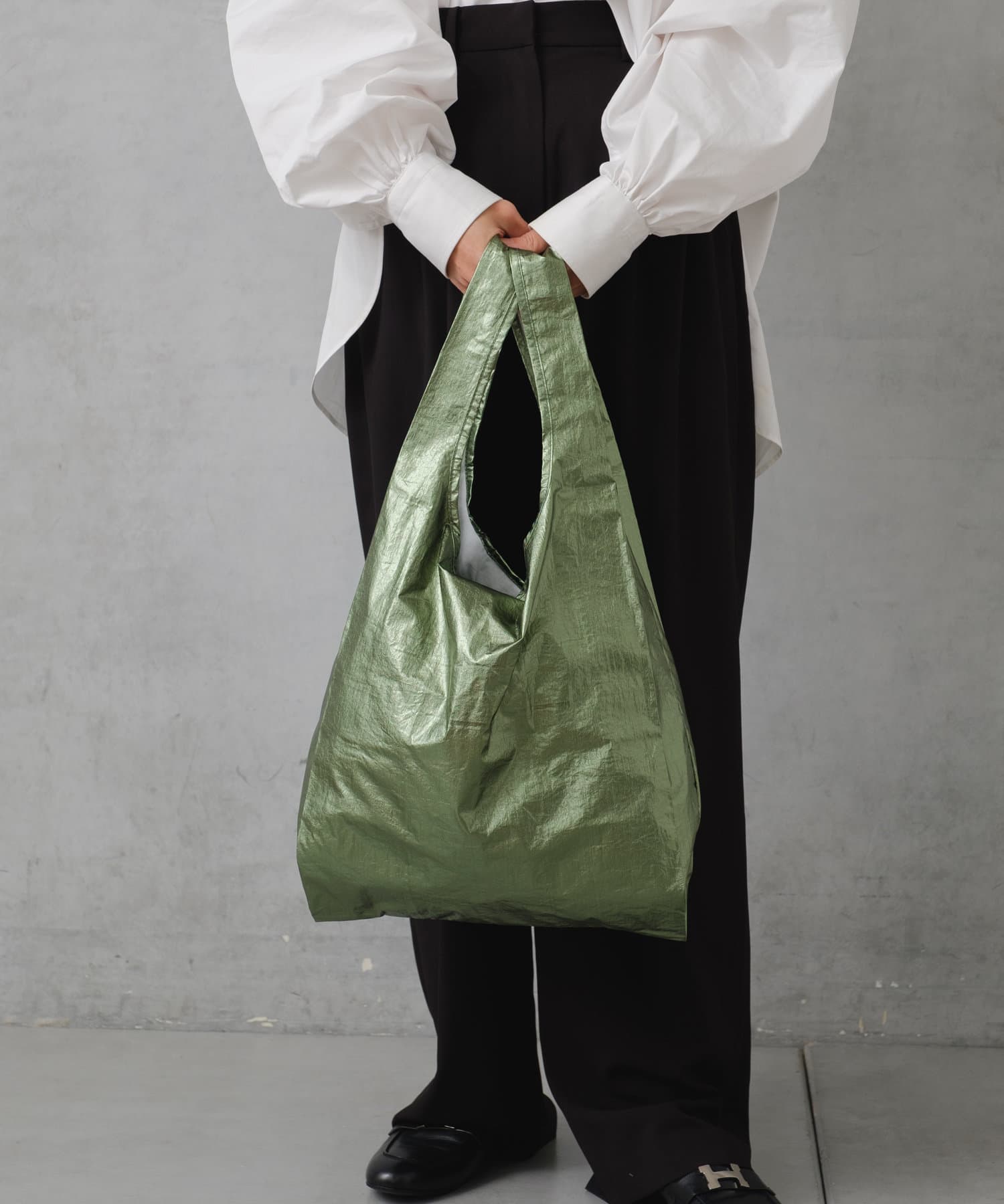 流行りに左右されず、コーデを選ばないメタリック素材のトートは1人1つは持っておきたい、マストアイテム。