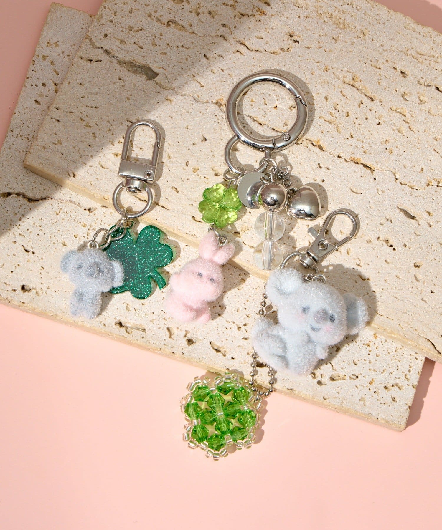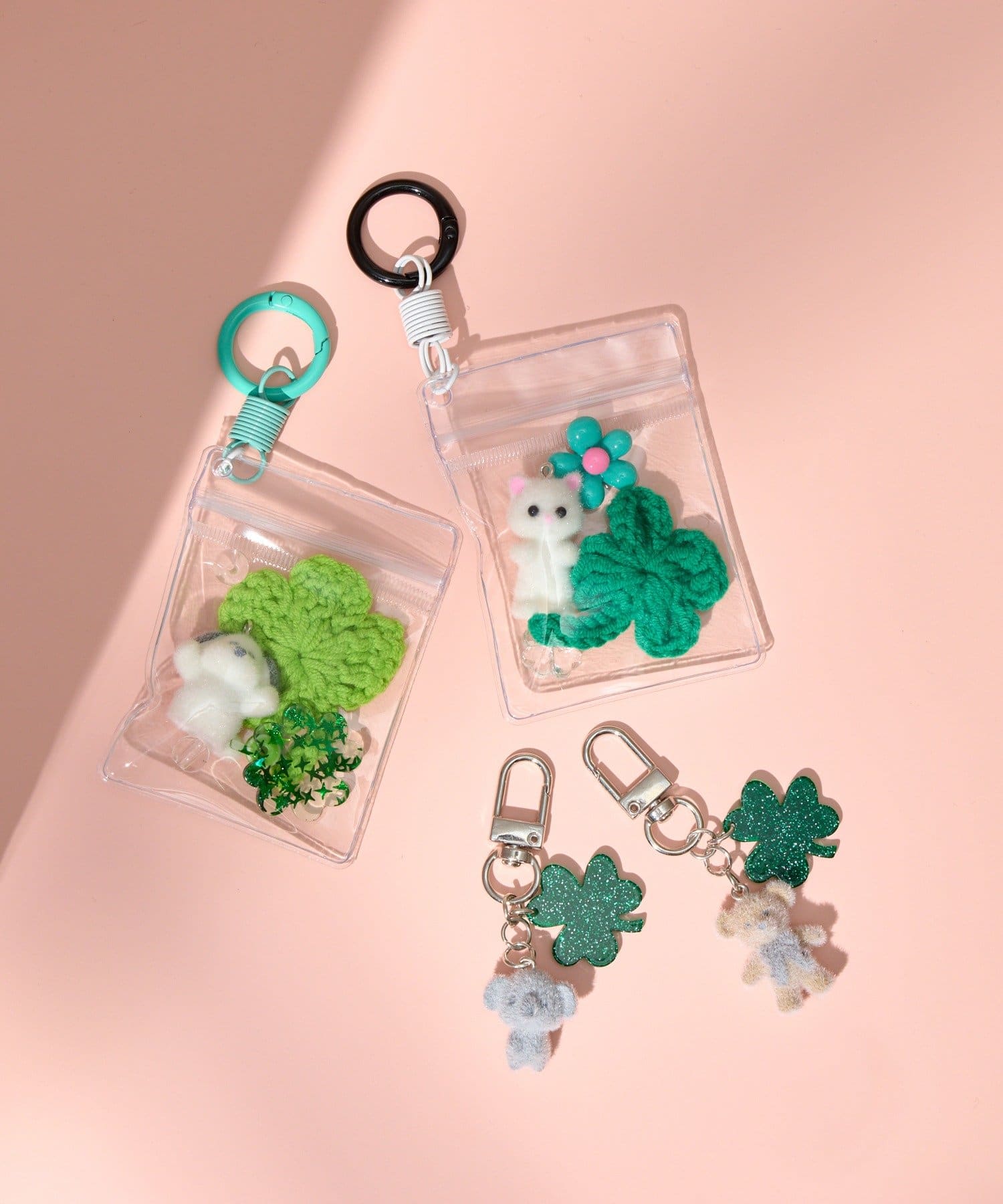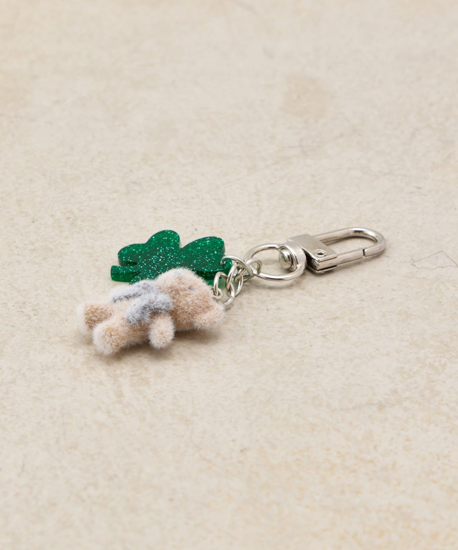 フロッキー素材のアニマルとラメクローバーが可愛いチャーム◎