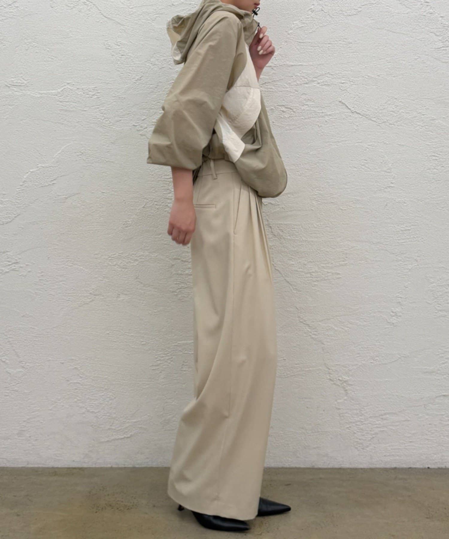 ・裾周りは、絞ることもできるので、丈感調節や、シルエットが自分好みにアレンジが可能。