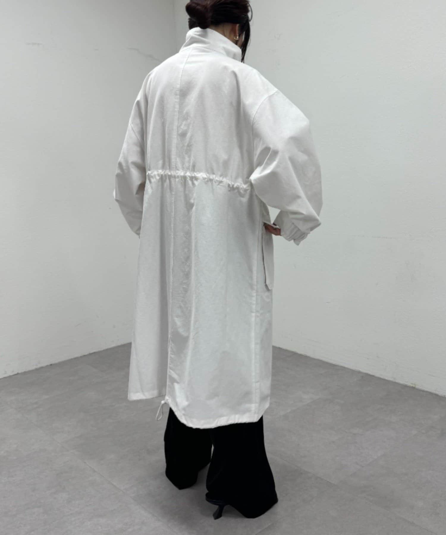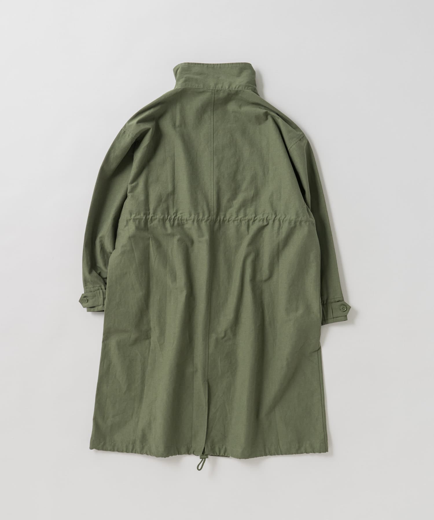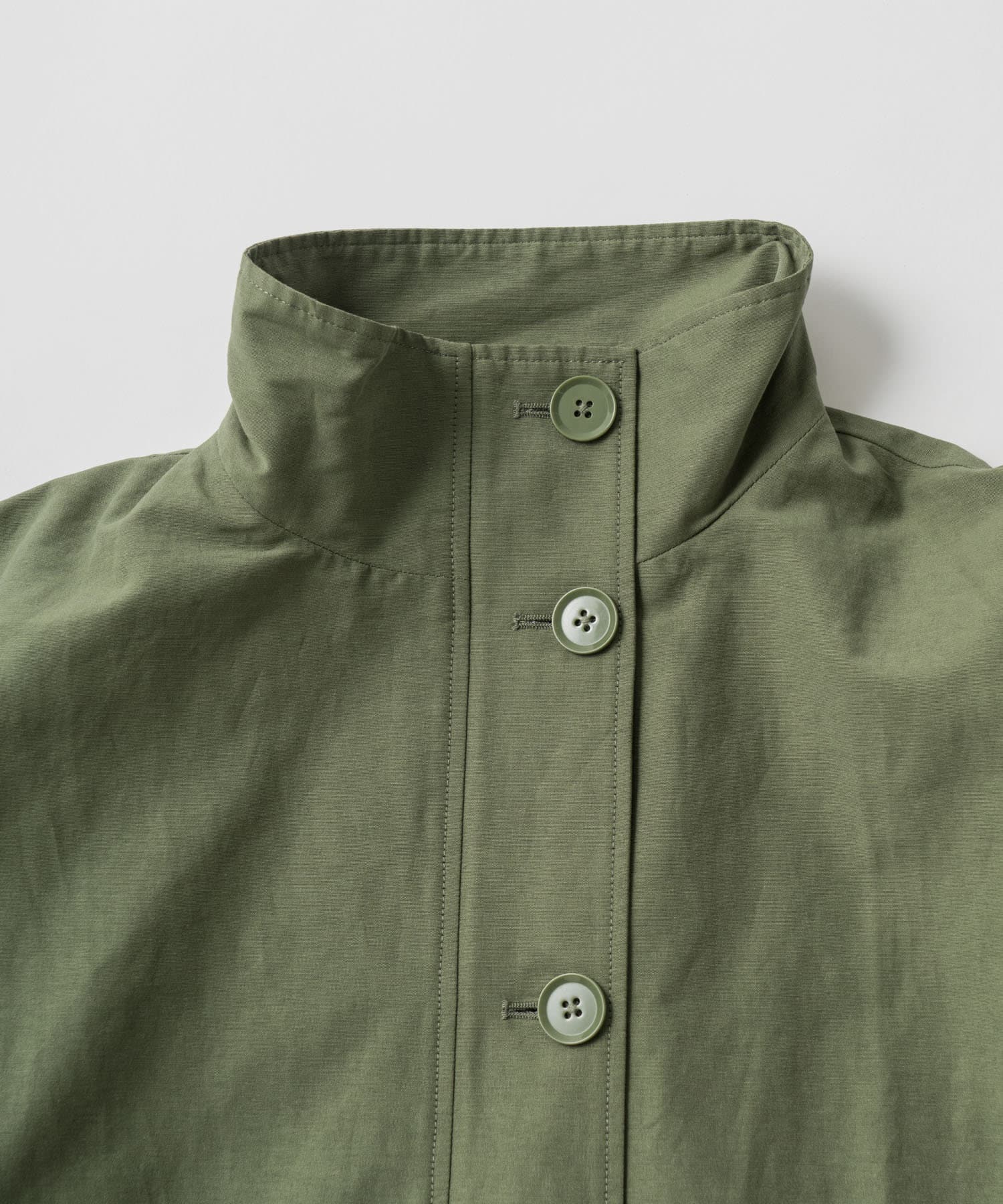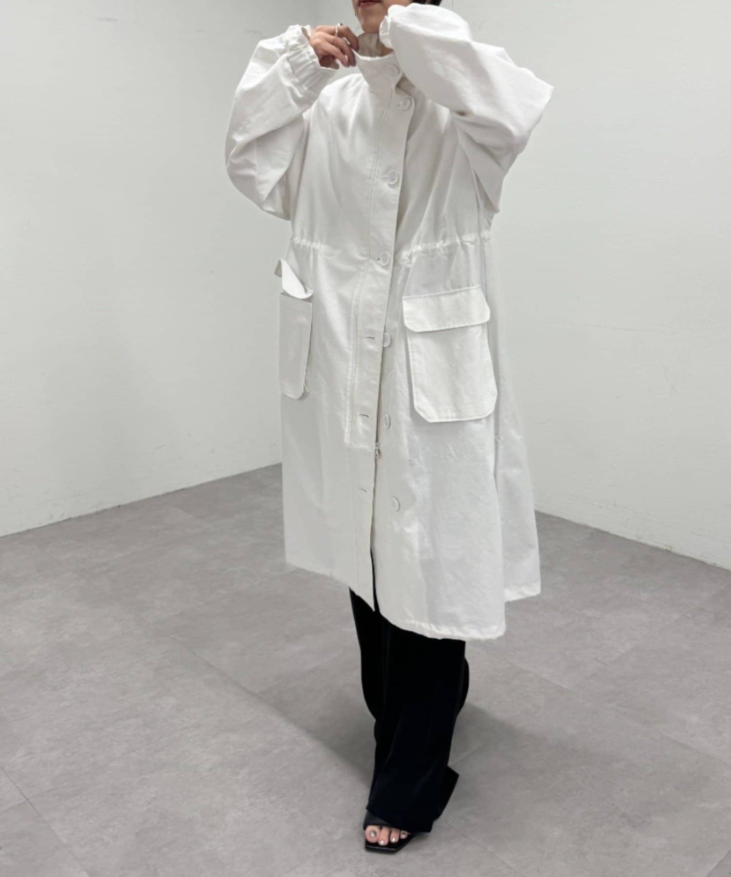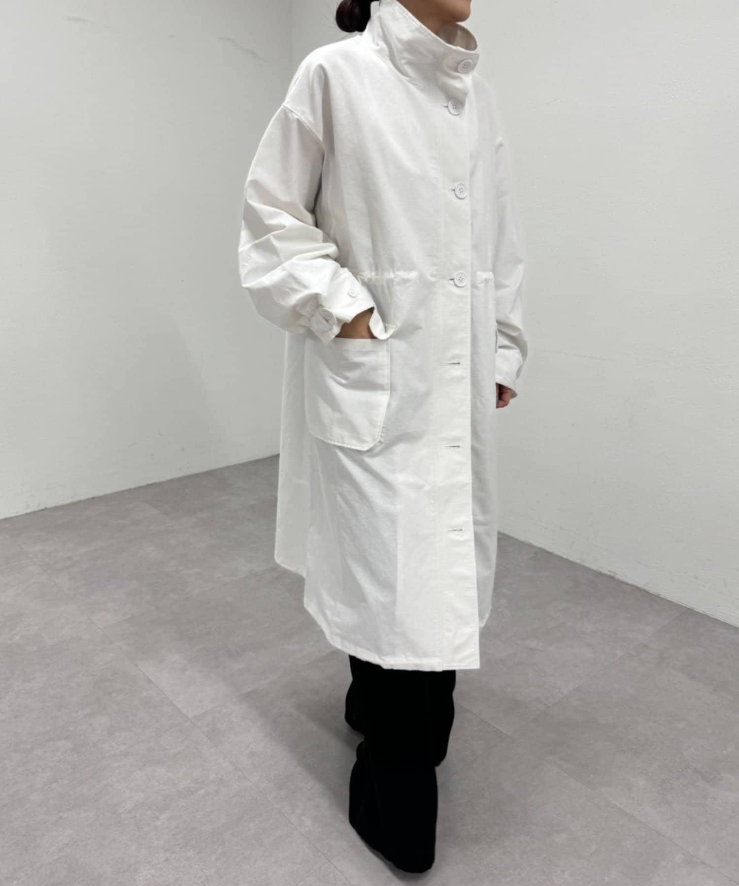 ・ミリタリー要素のディテールが加わったスタンドカラーコート。