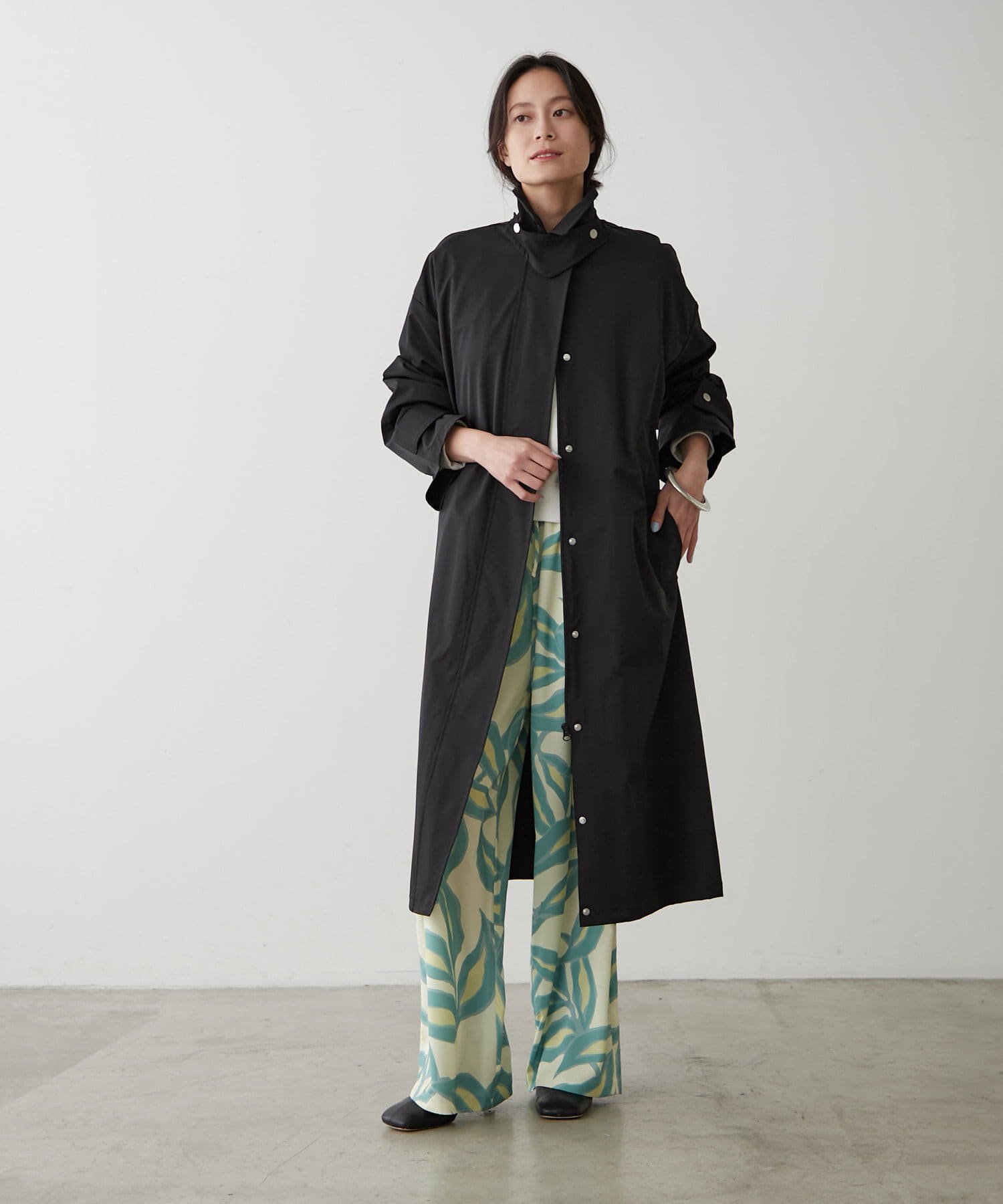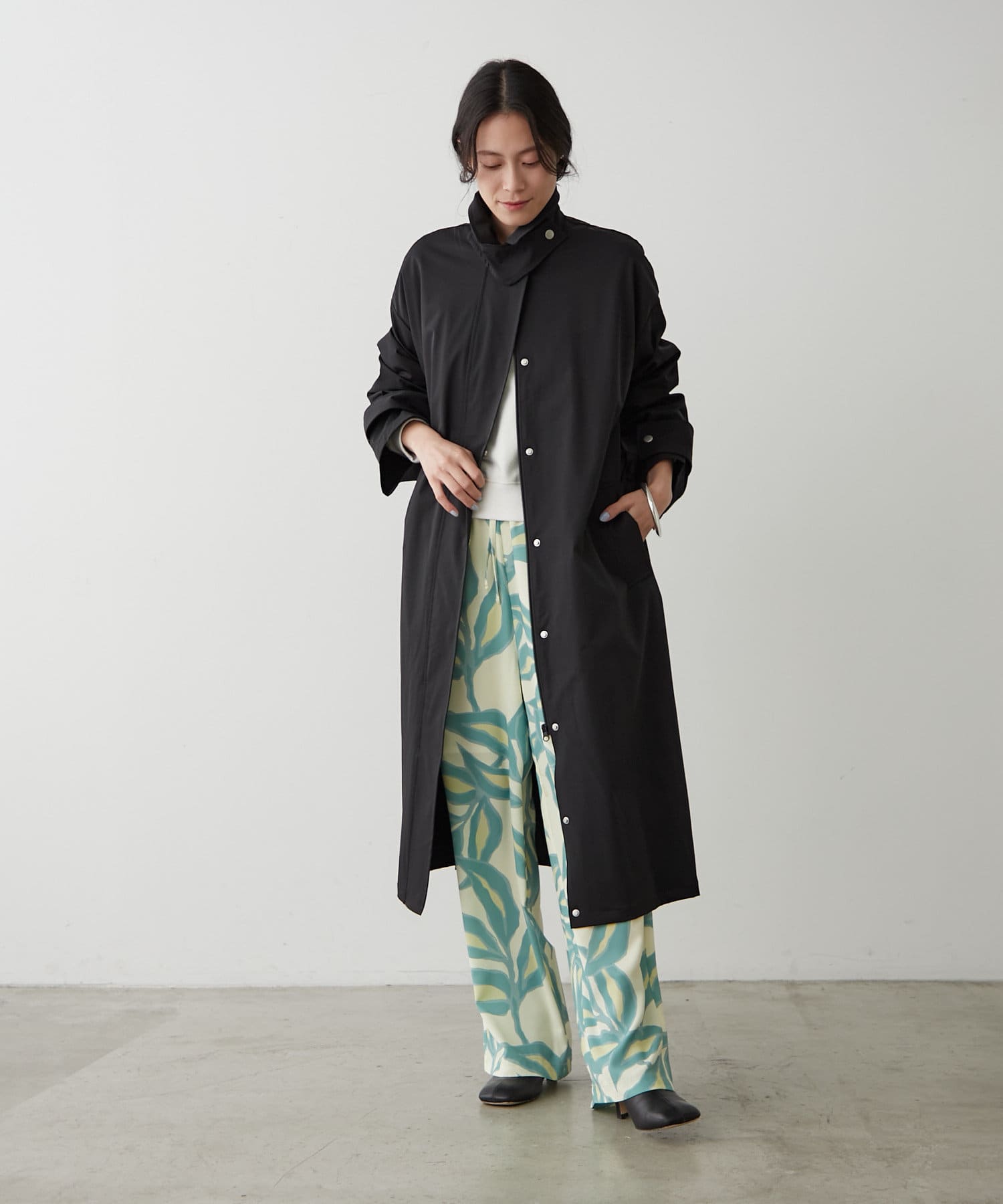 ・ほどよい厚みと落ち感のあるマットサテン生地に、リーフ柄をプリントたオリジナルファブリック。