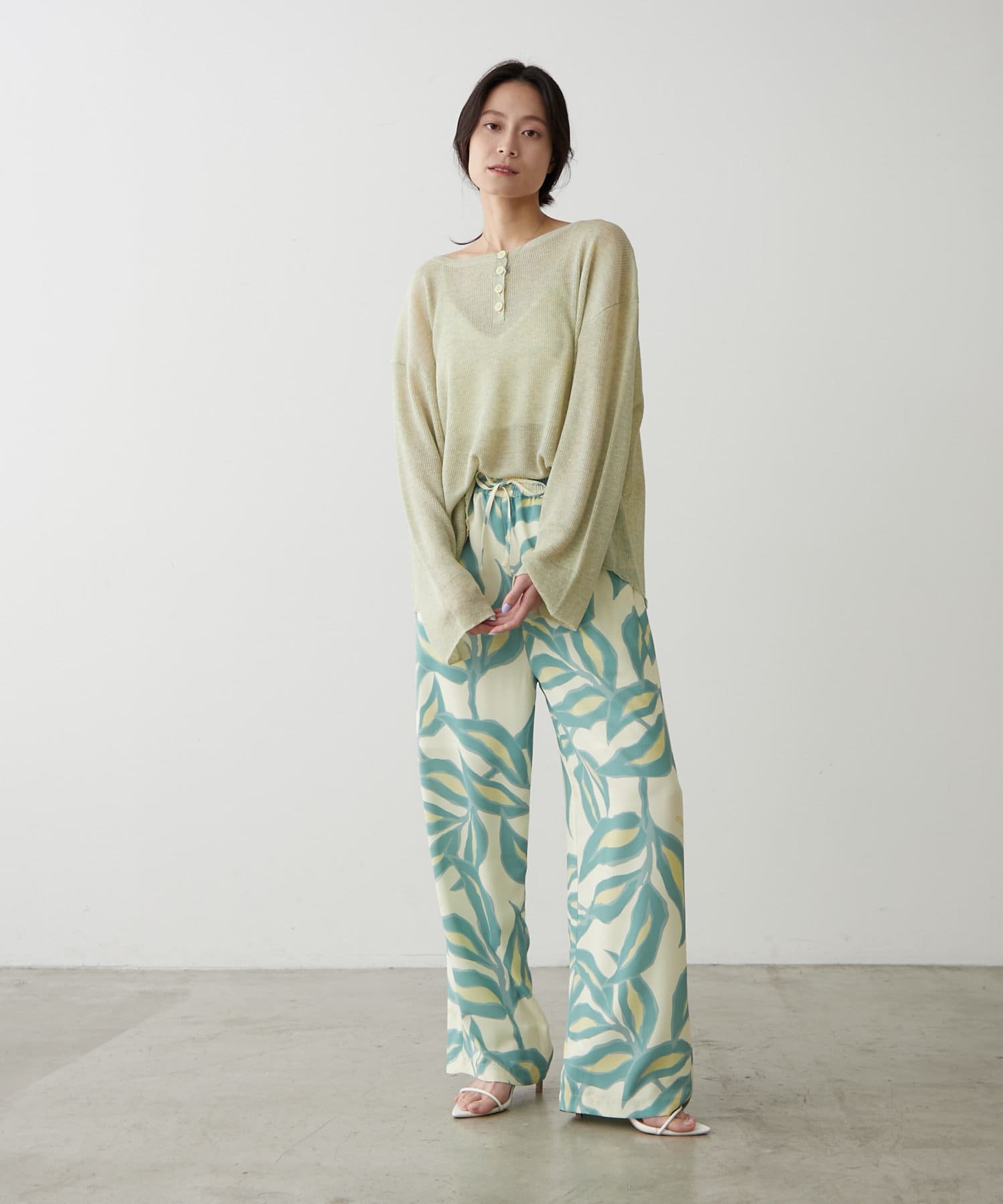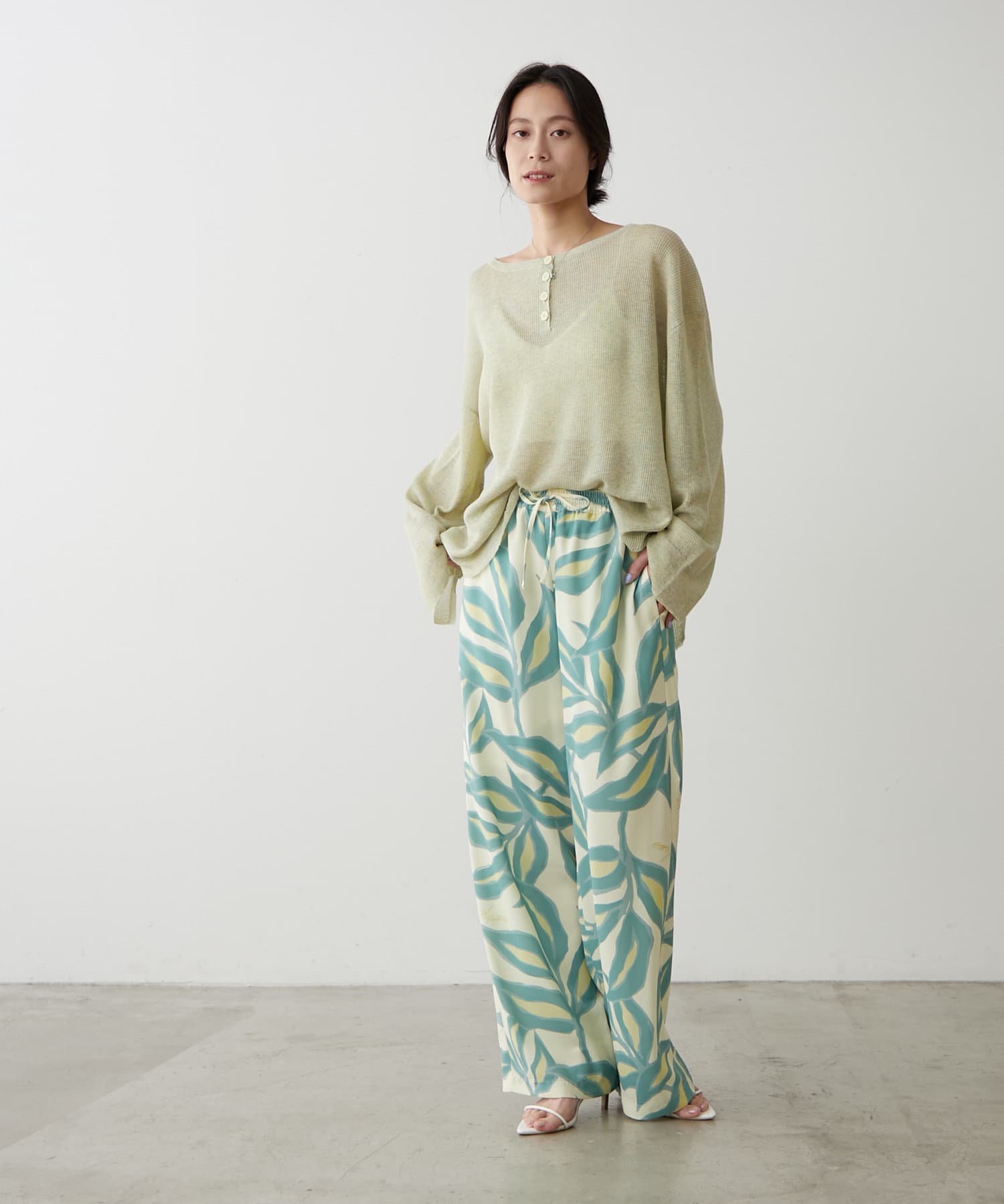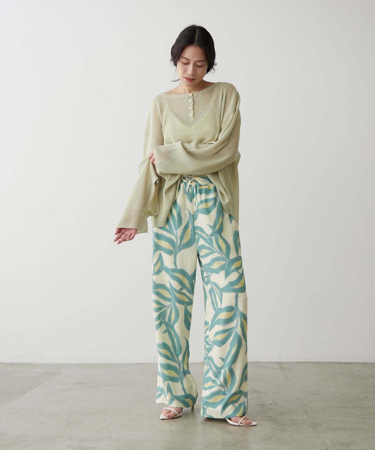 ・カジュルアルに着こなせる、ブランドロゴ入りのオリジナルリーフプリントが目を惹くイージーパンツ。