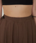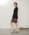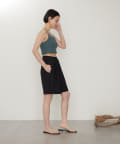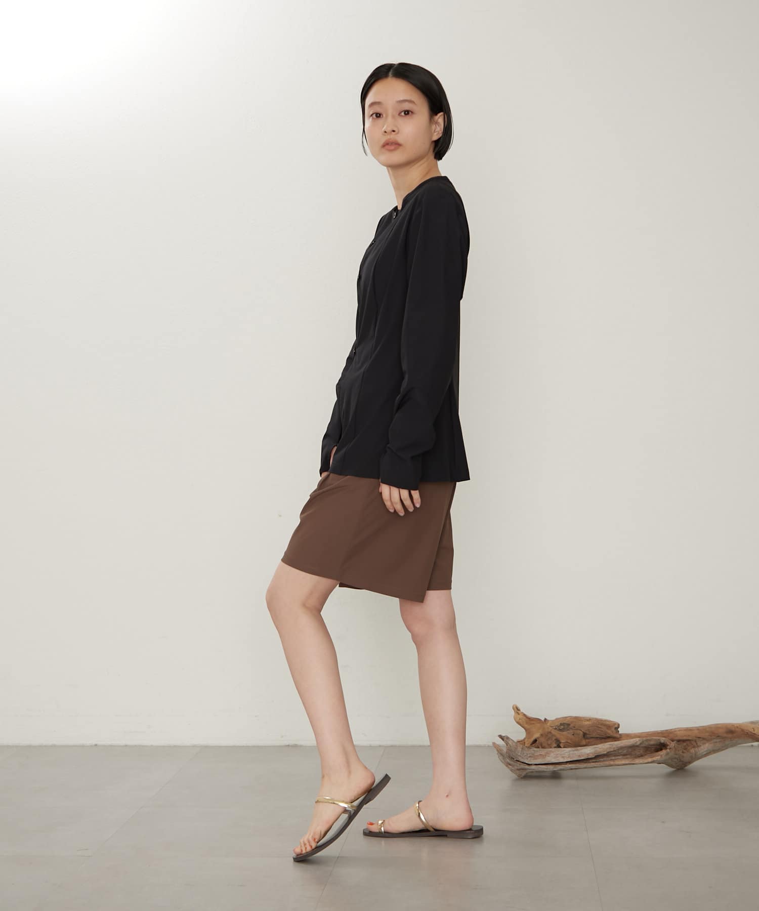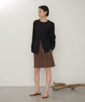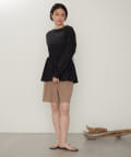 ・ややハイウエストなデザインと足まわりのフレアシルエットがさりげなく体型カバーしてくれるデザインです。