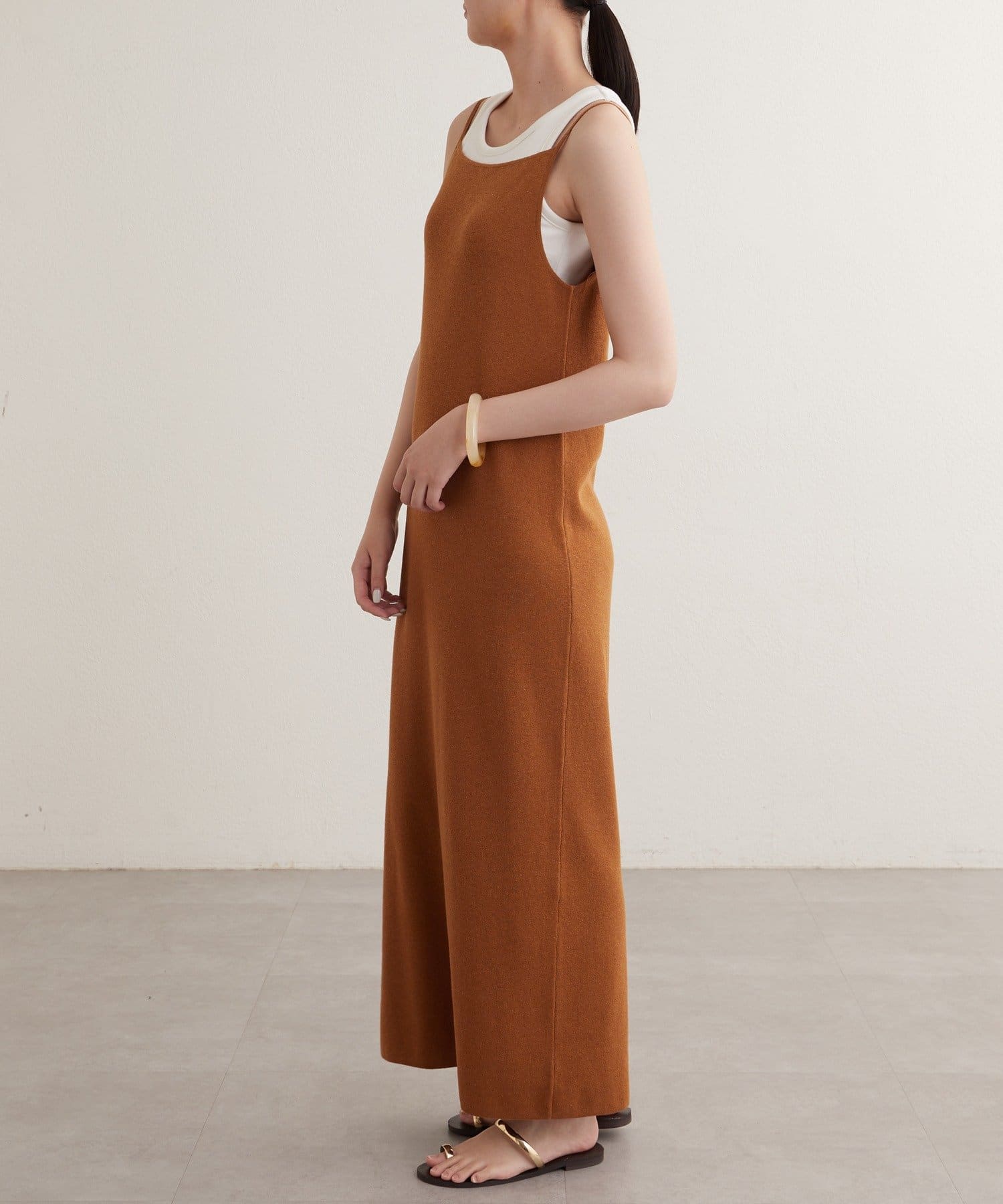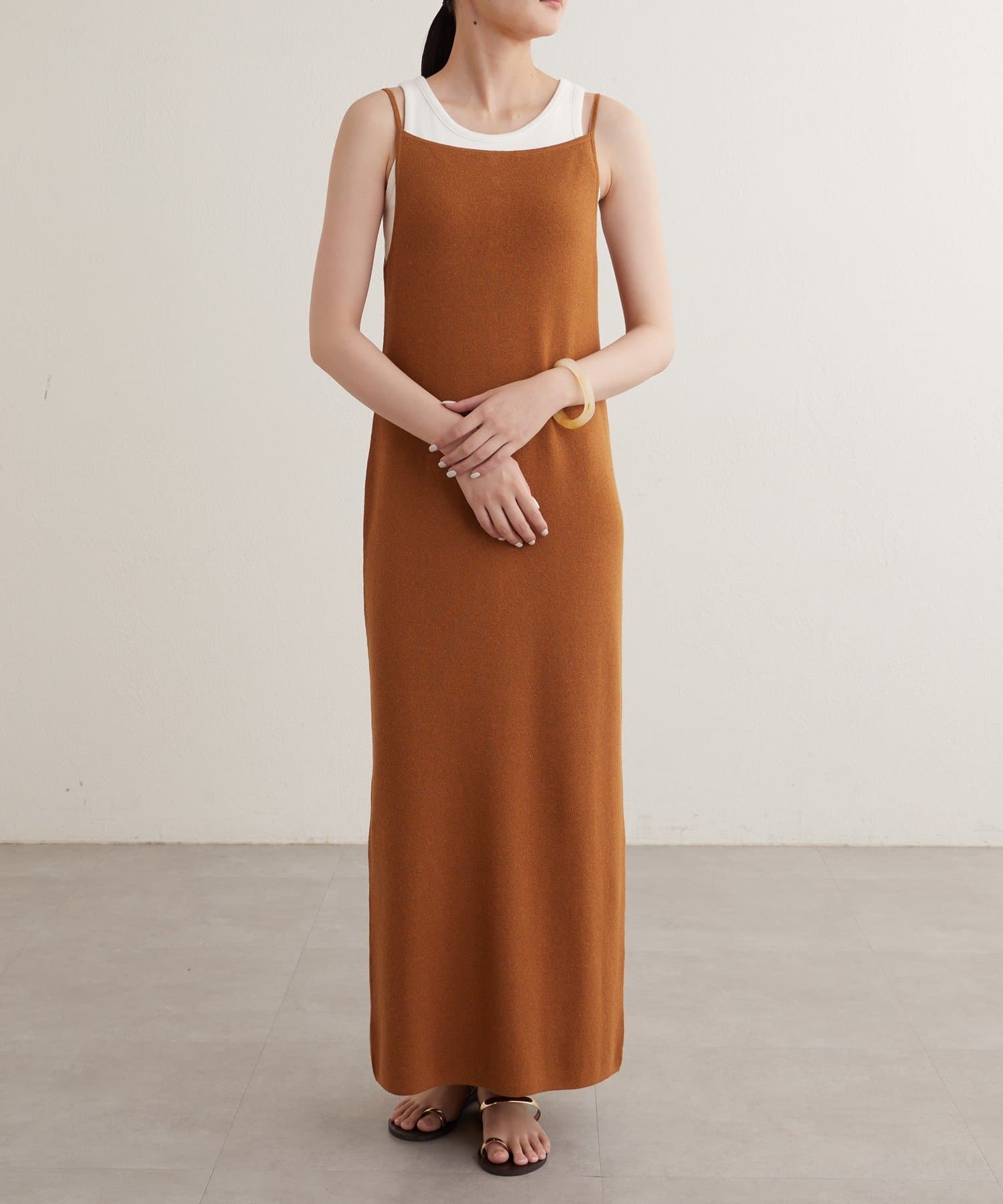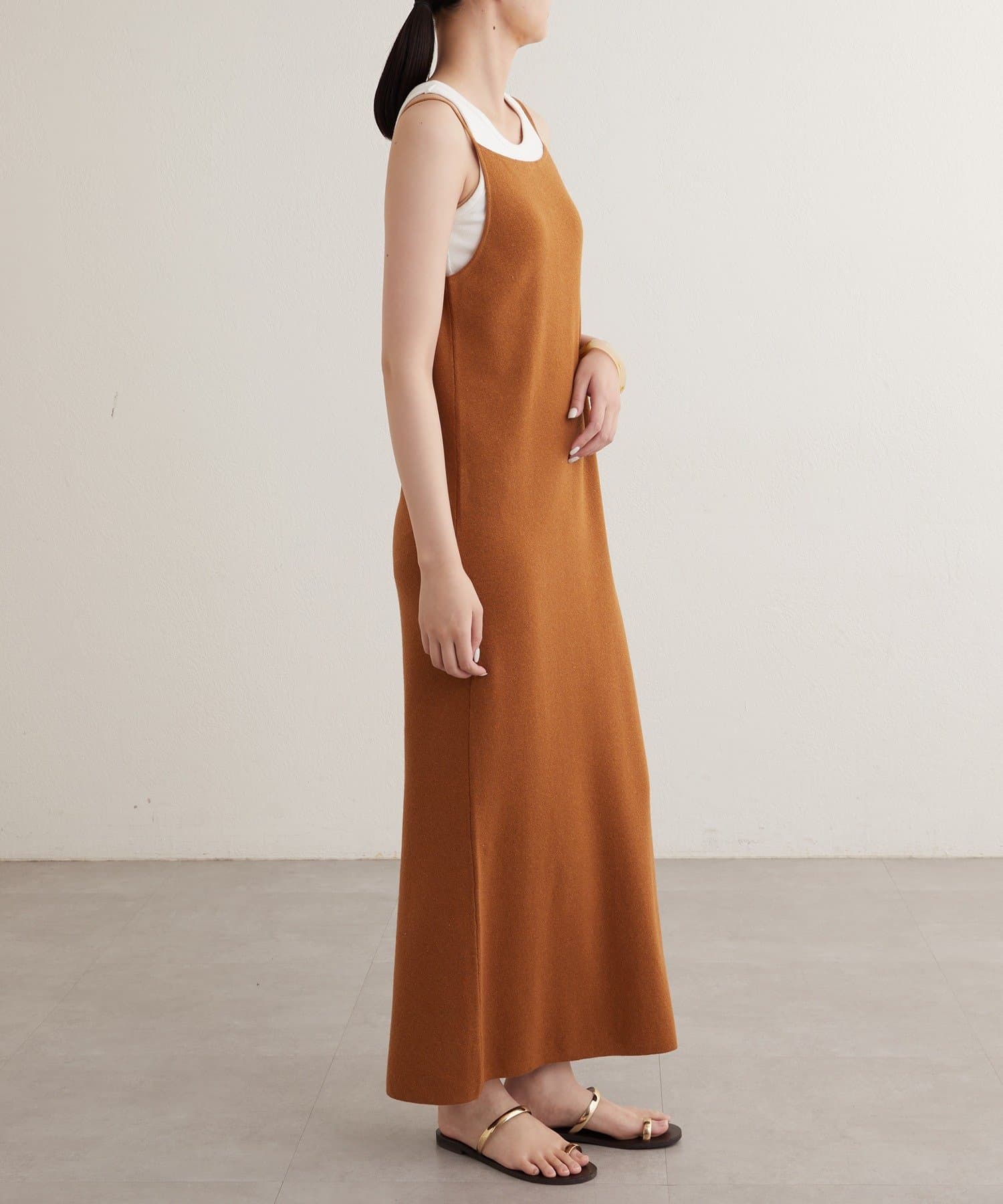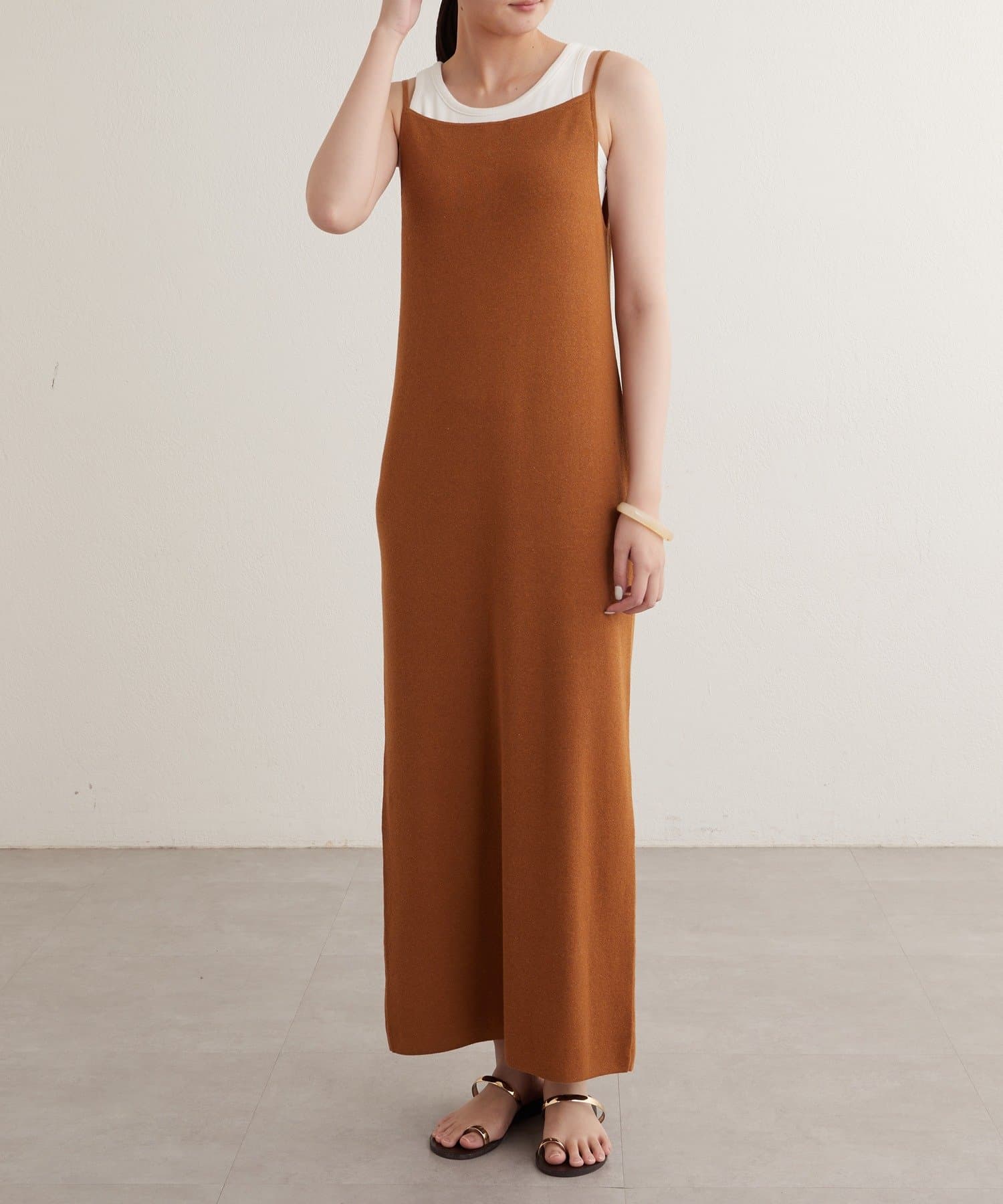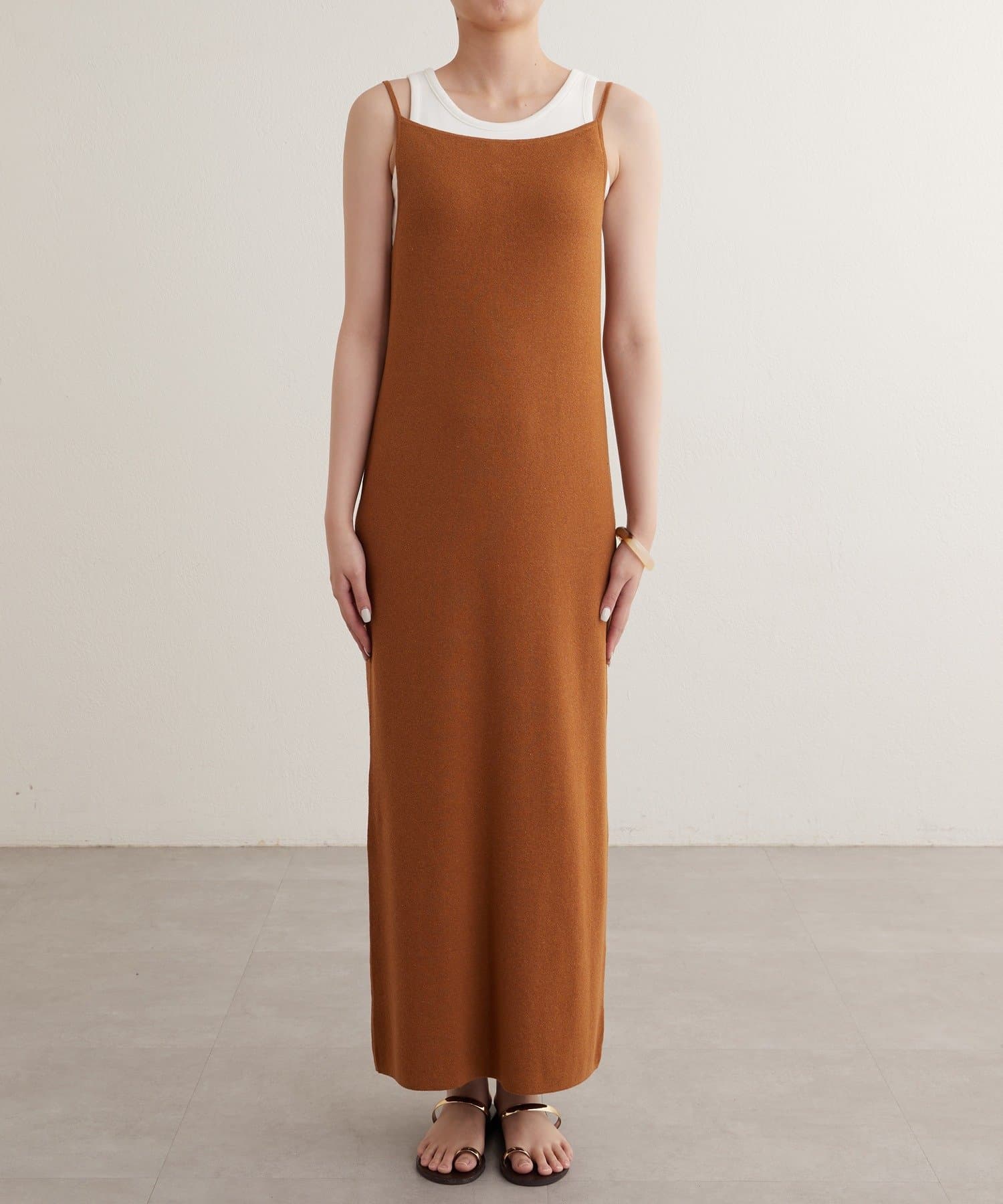 一枚で存在感のあるニットキャミワンピース