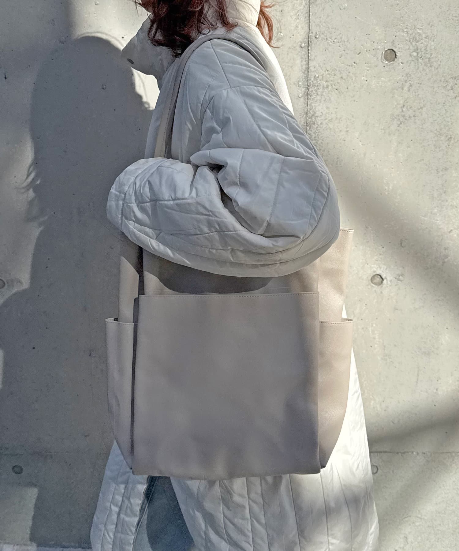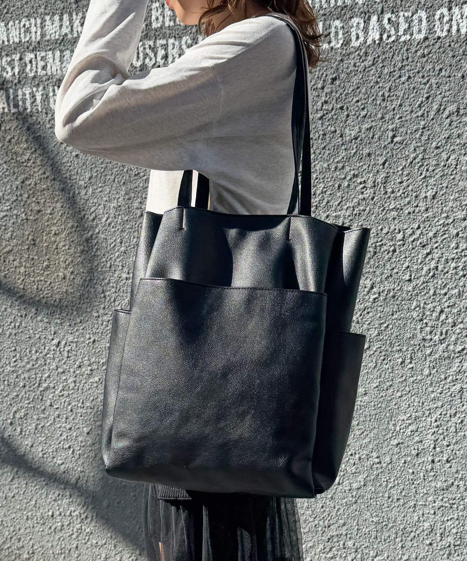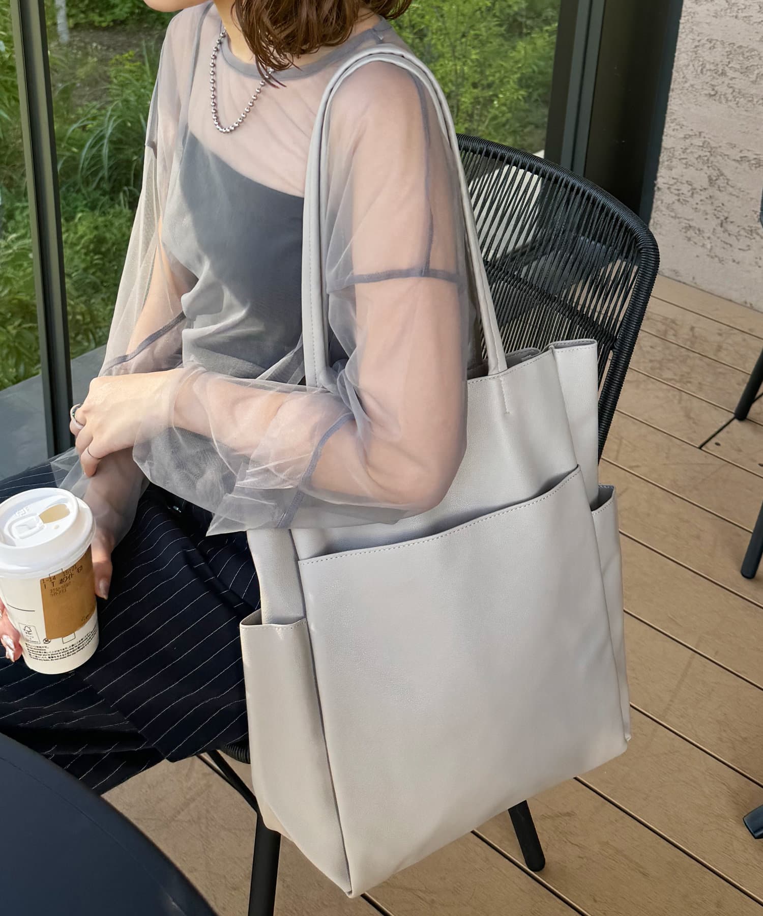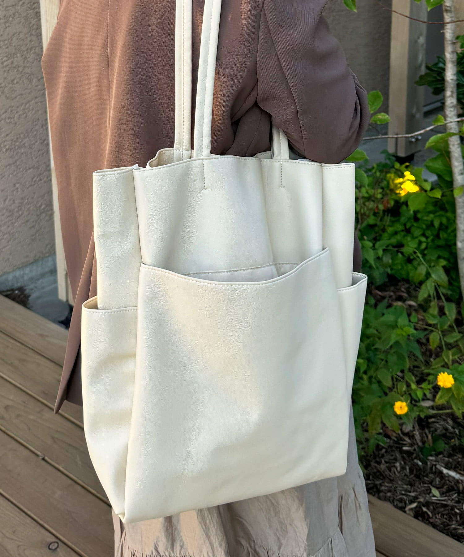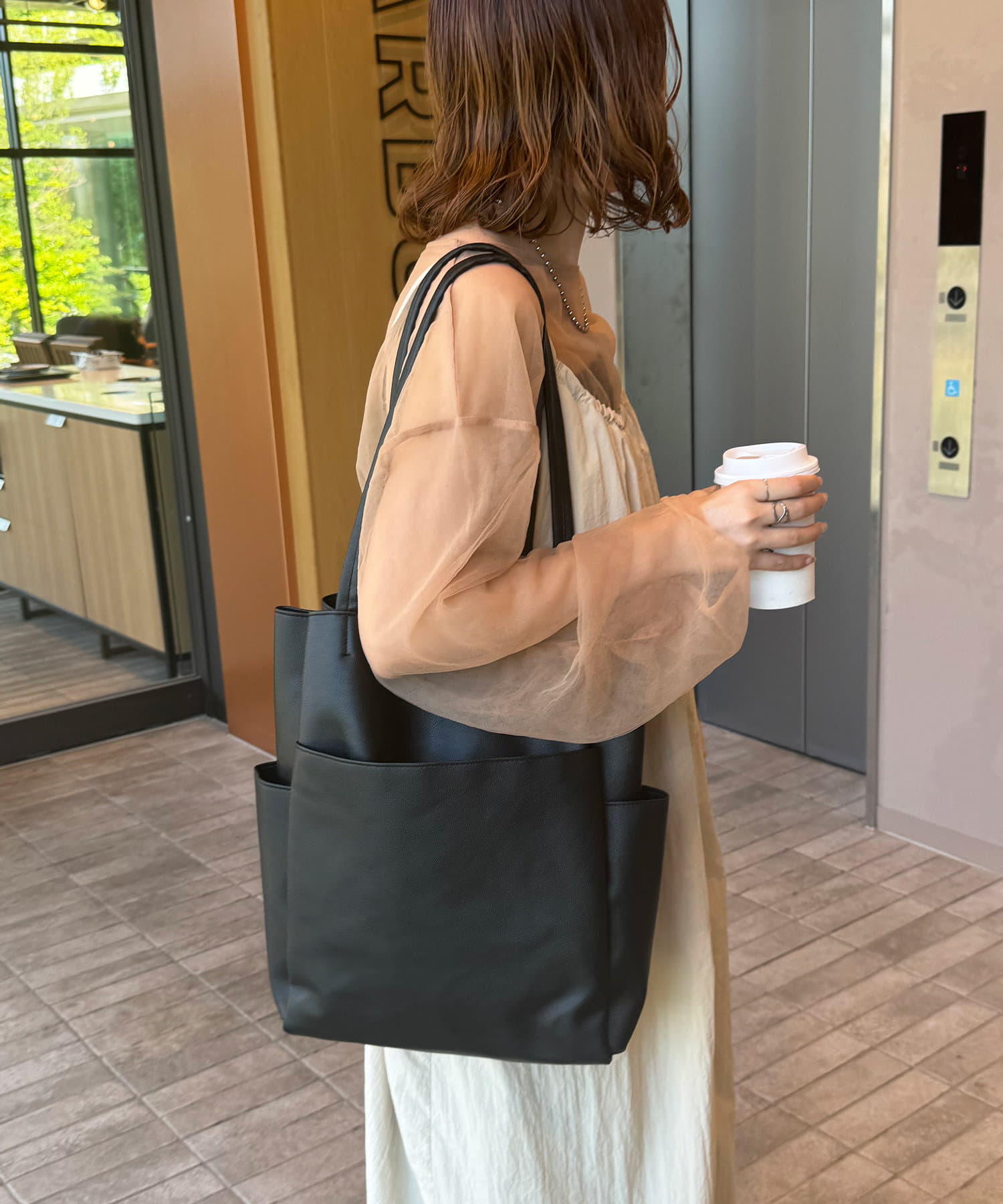 バッグの中でかさばりがちな荷物を、すっきりと整頓して収納できる万能トートバッグ。