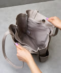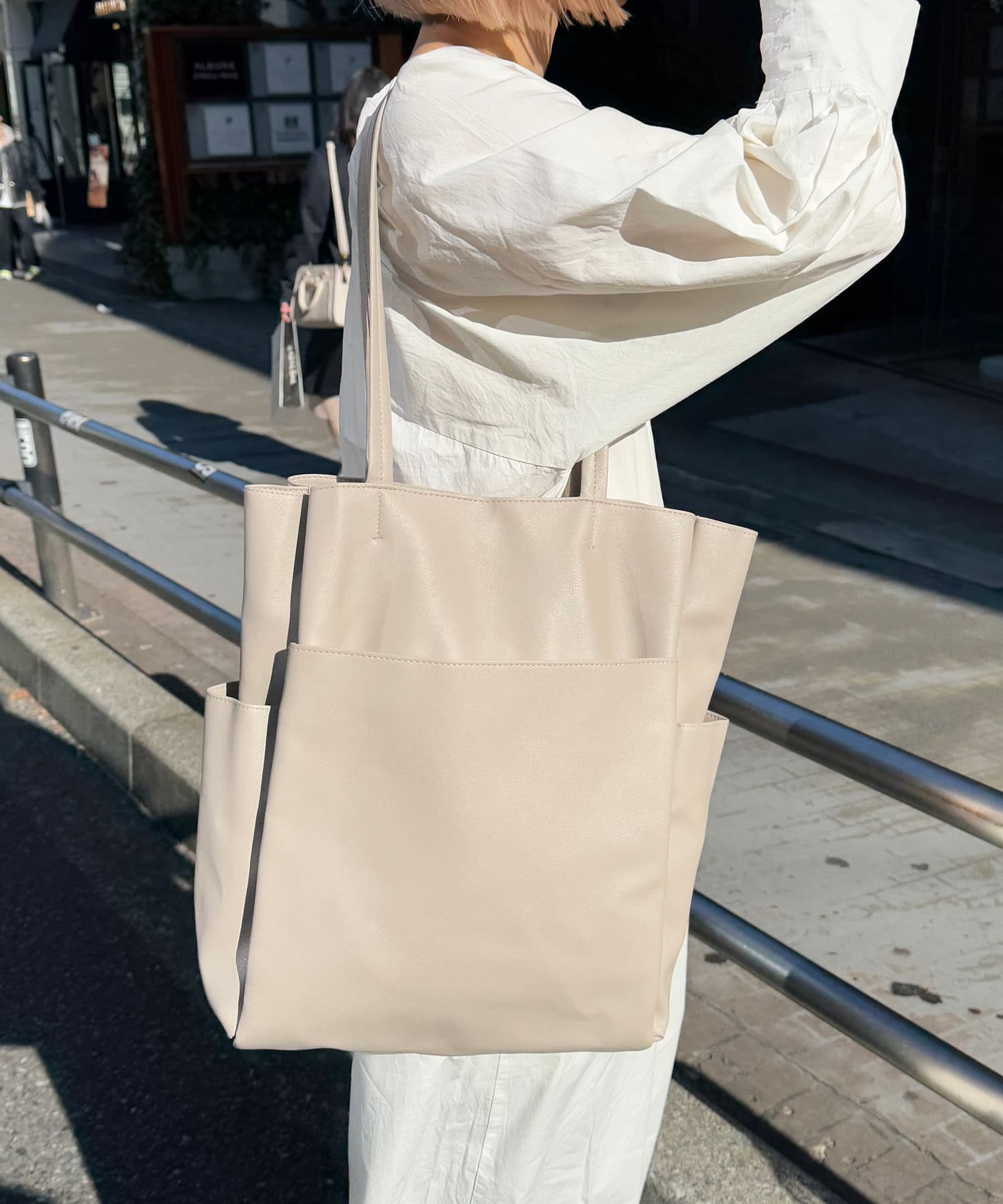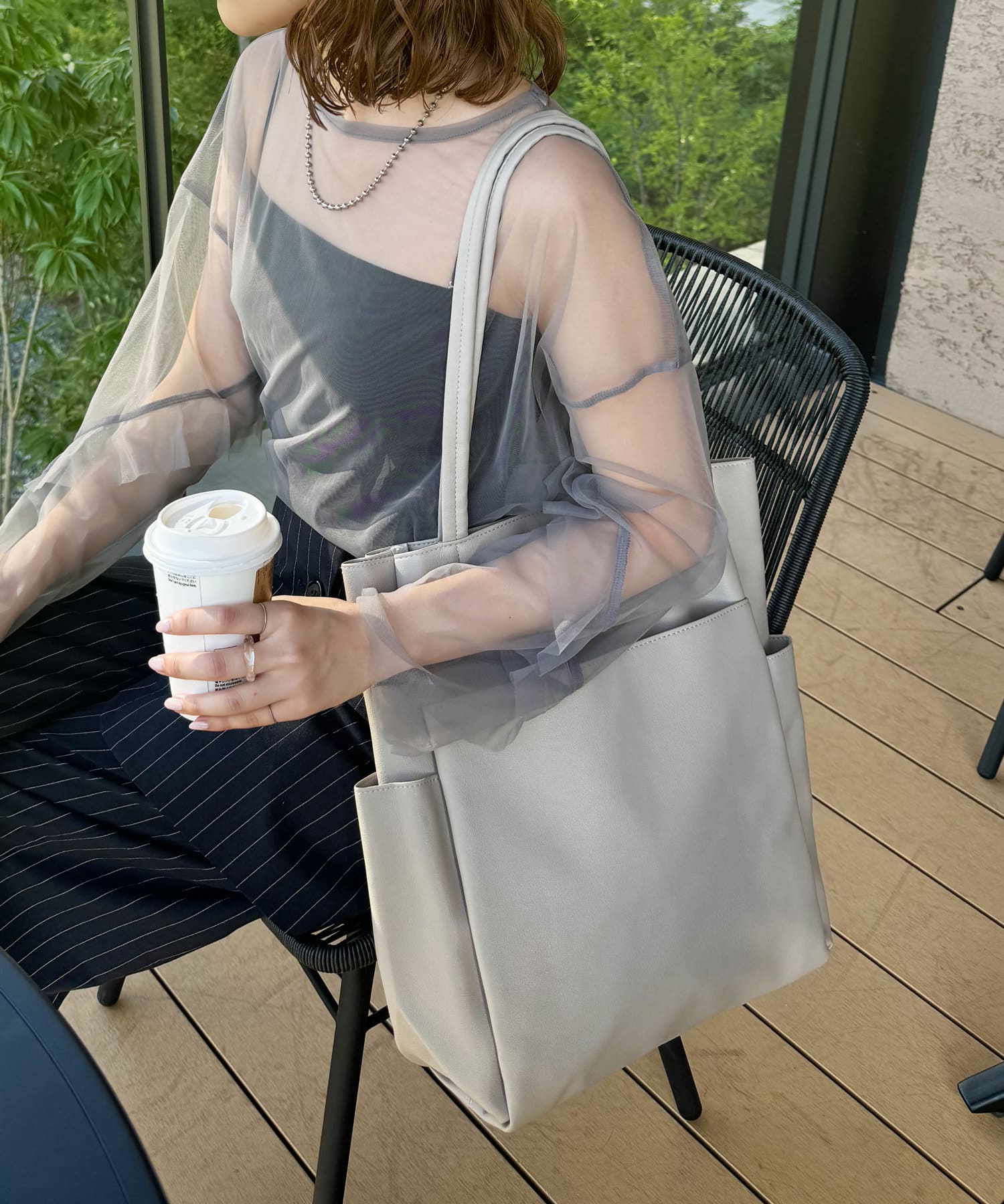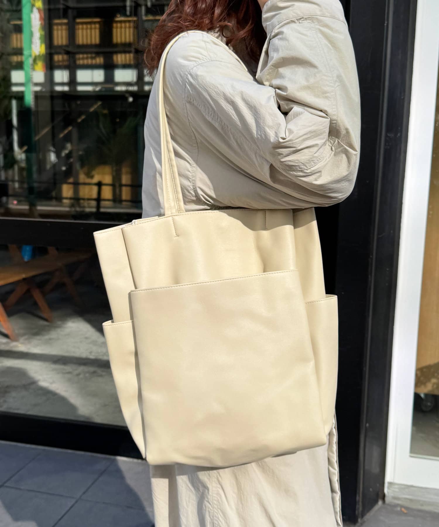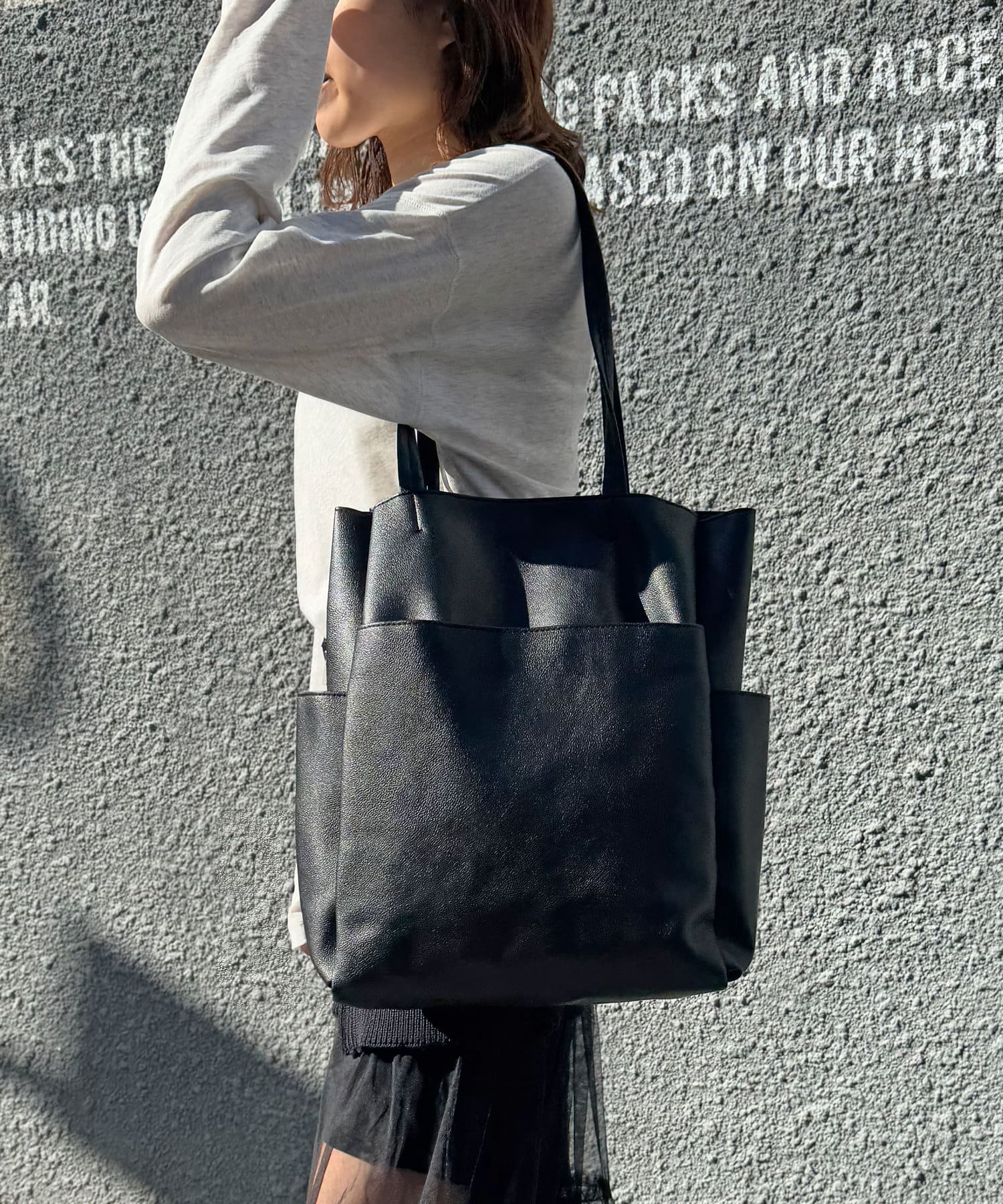 バッグの中でかさばりがちな荷物を、すっきりと整頓して収納できる万能トートバッグ。