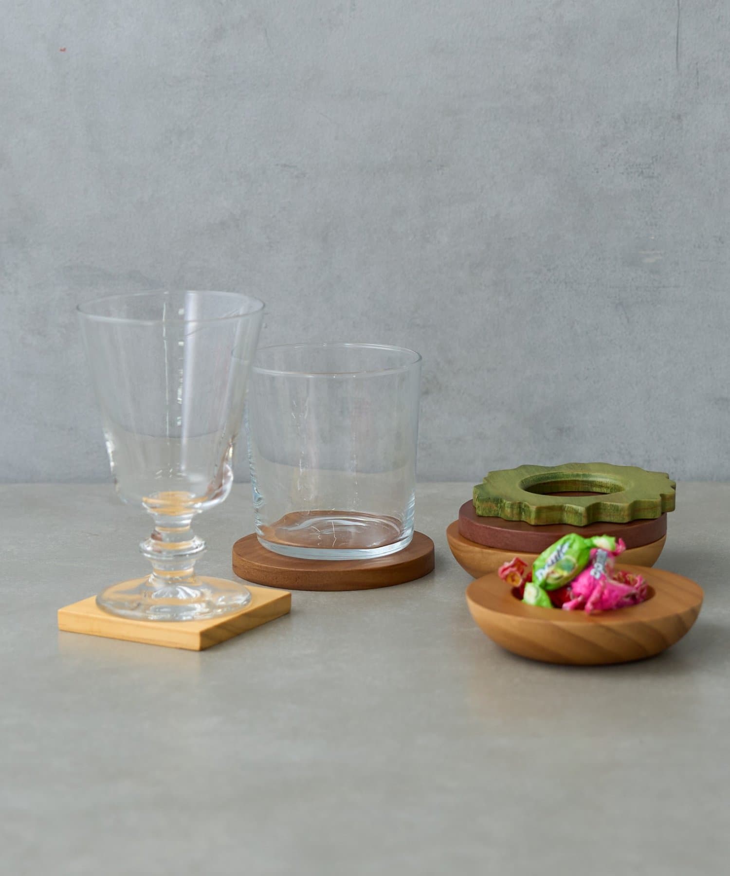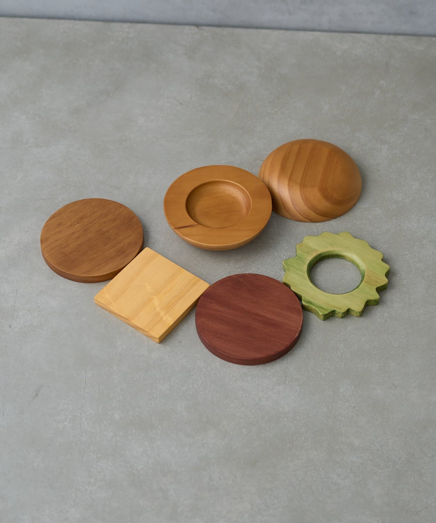 積み木のように重ねられる、素朴なハンバーガースタイルのコースターセット。