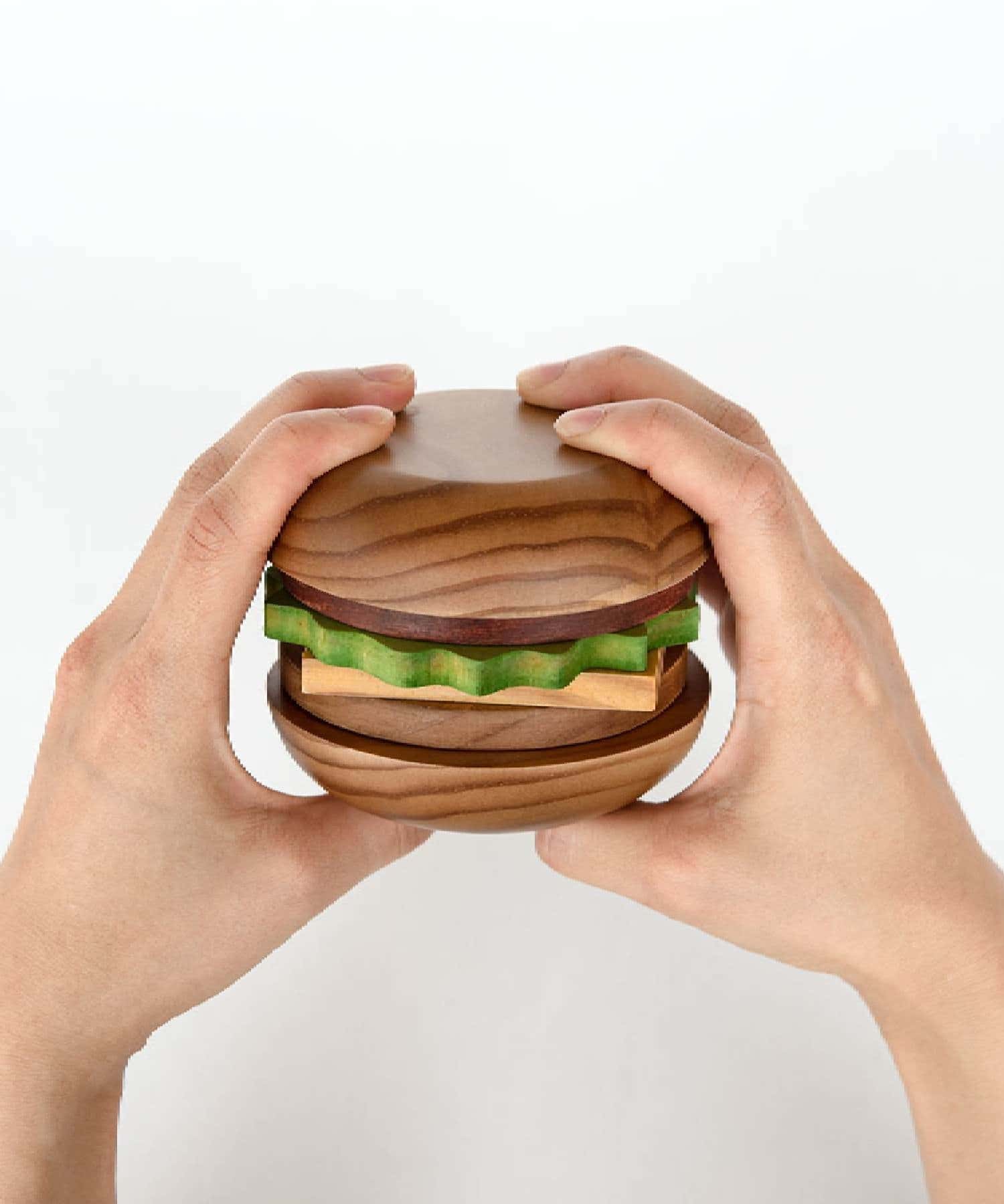 まるで本物のよう!?天然木でできたハンバーガー型コースターセット