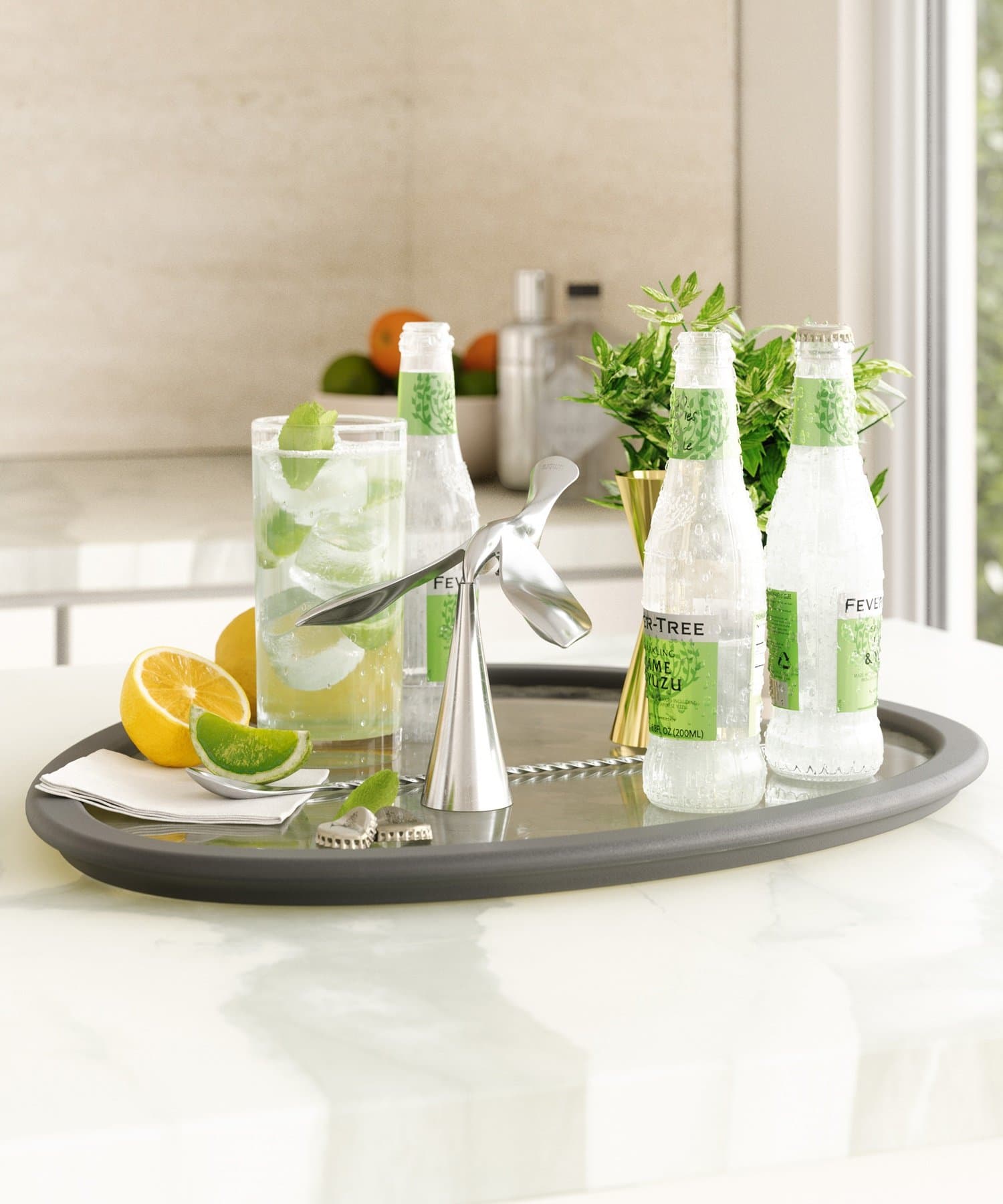 テーブル、カウンター、バーカート、棚に置くだけで魅力的なため、収納不要。