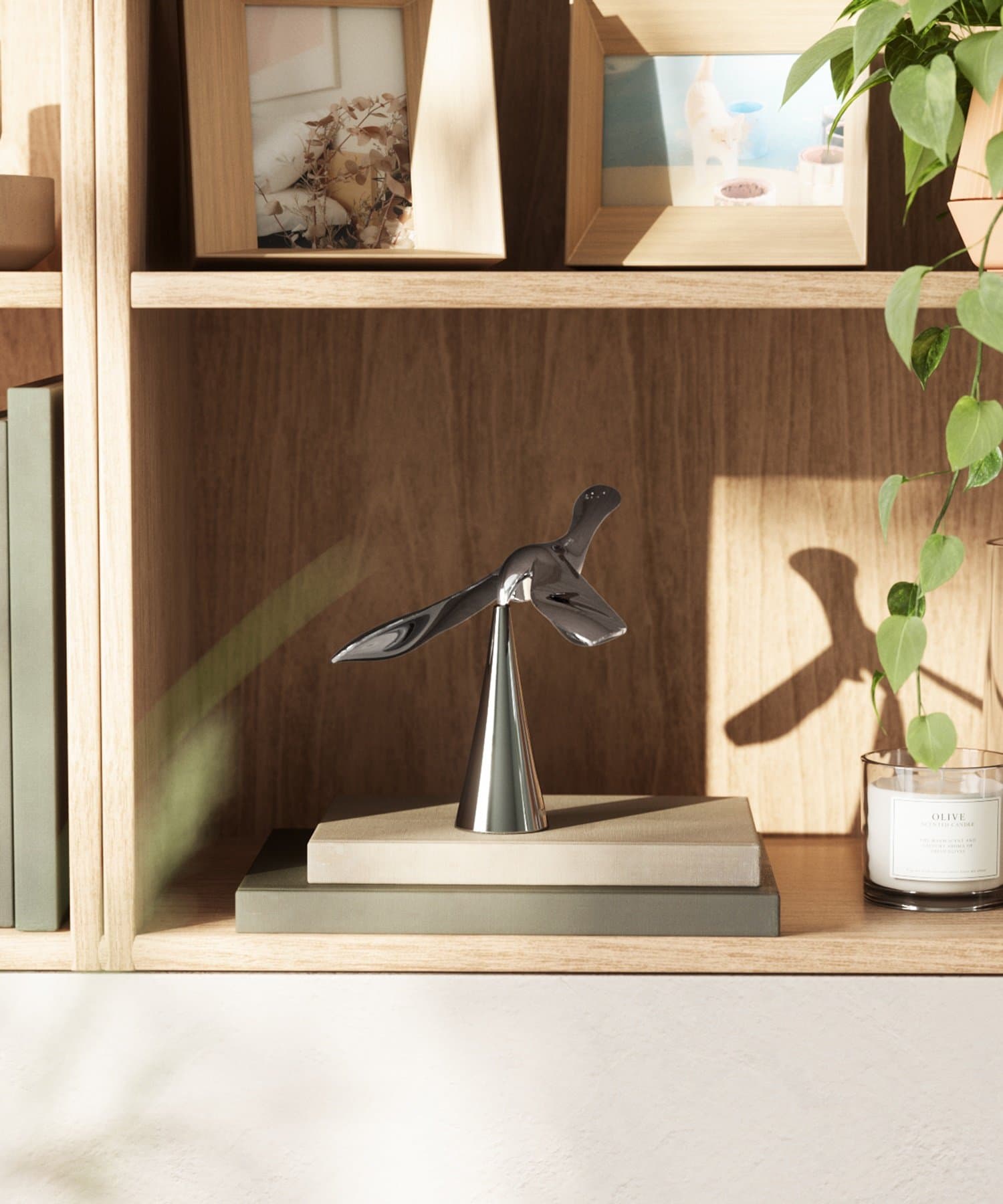 土台に鳥の口ばしを乗せるとゆらゆらと絶妙なバランスを保ちながらゆらゆらと動きます。磨き上げられた本体は光沢を保ち続けます。