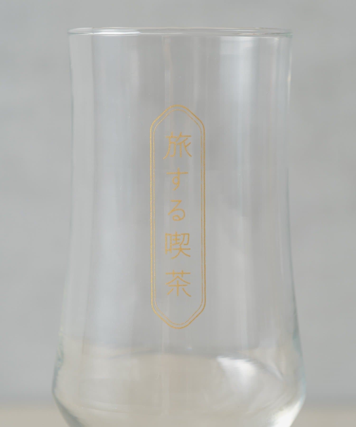 フロートグラスは「旅する喫茶」のロゴ入りデザイン。