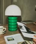 レトロな雰囲気を醸し出す、ユニークなフォルムが愛らしいテーブルランプ。