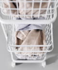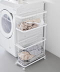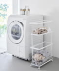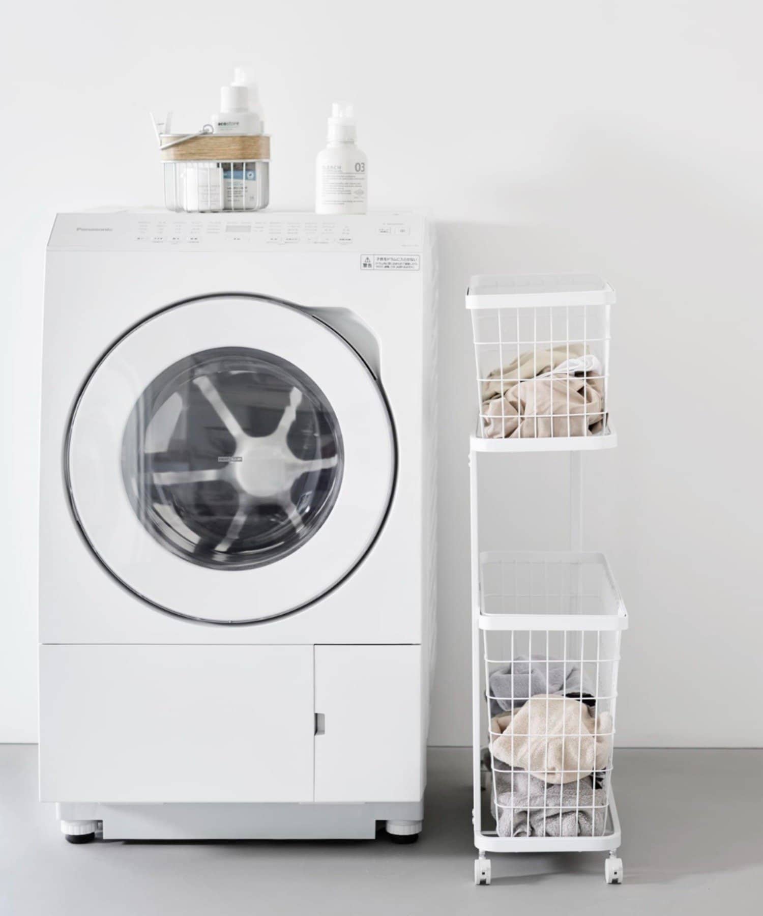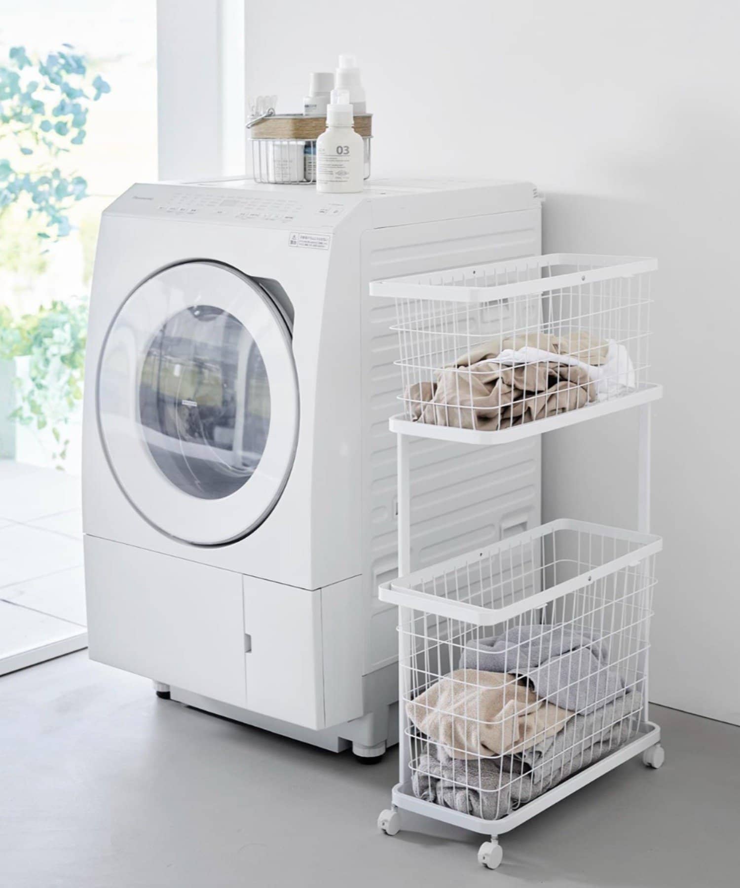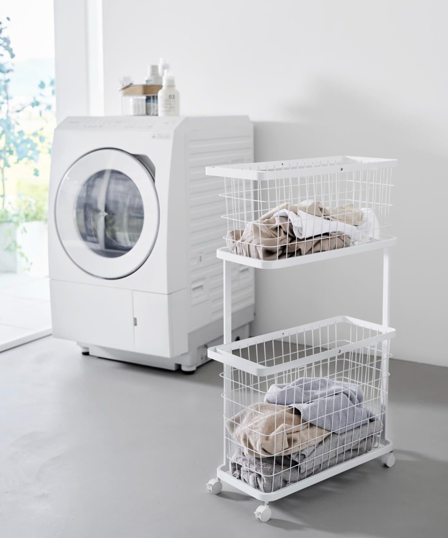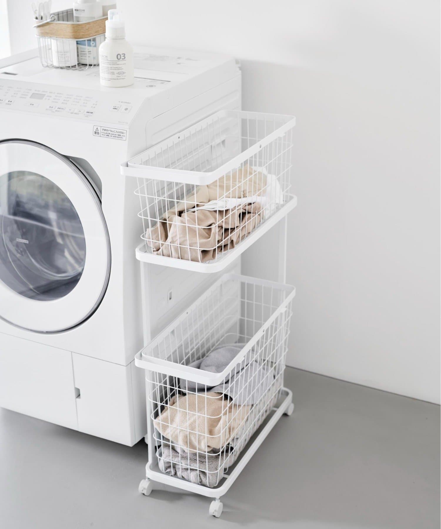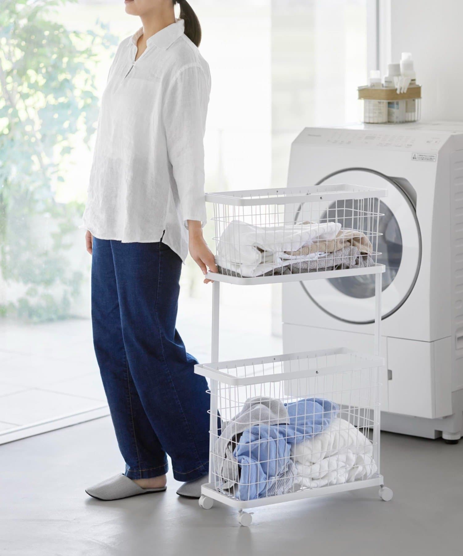 上下のバスケットで種類別に洗濯物を分けて入れたり、下段に洗濯物、上段はタオル類の収納にもおすすめ。