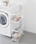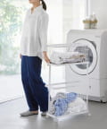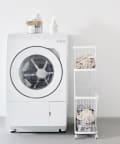 スリムタイプのバスケットは、ドラム式洗濯機の前に置いても扉が当たりにくい高さ設計。洗濯物の出し入れがスムーズに行えます。