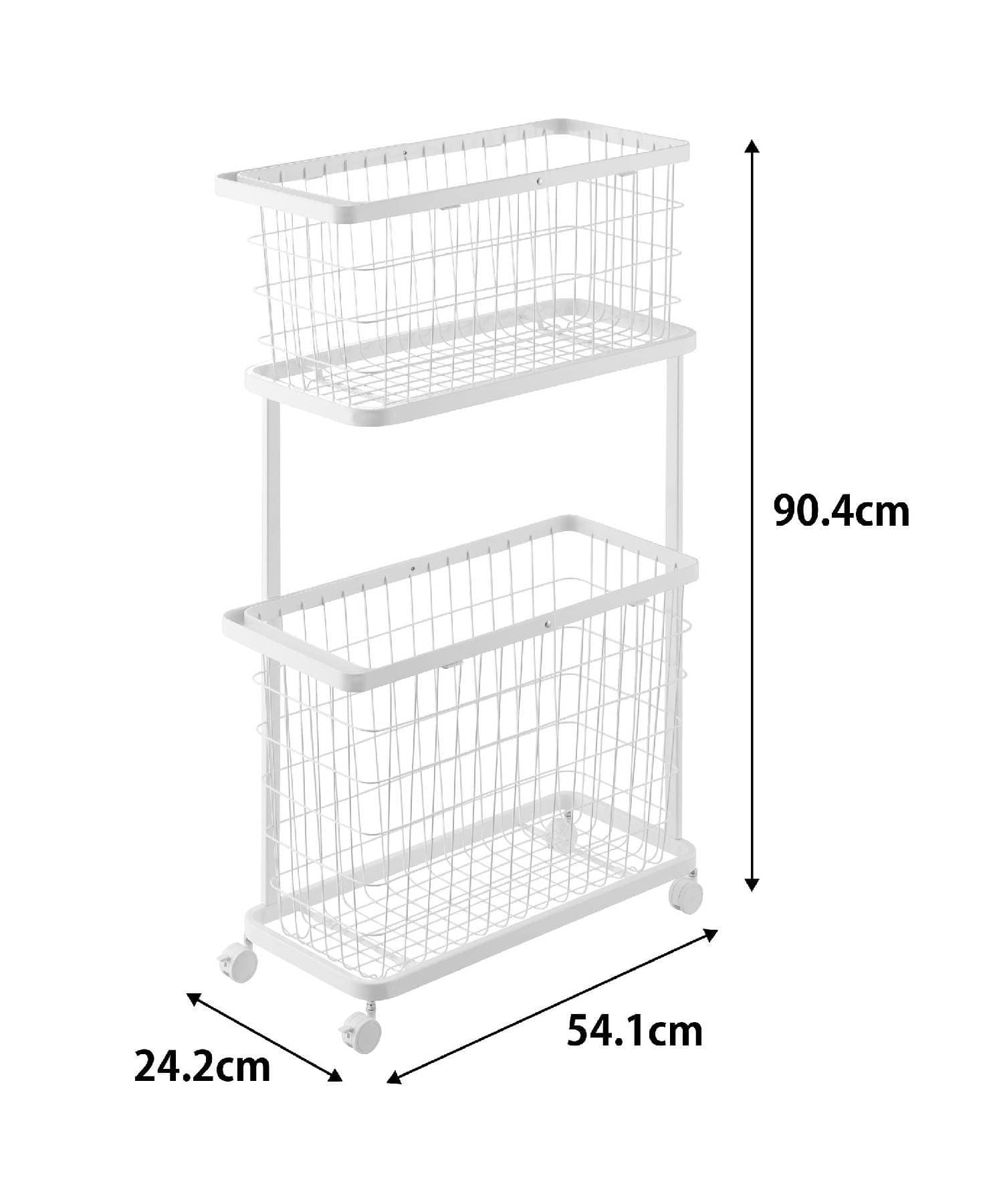 シンプルでスタイリッシュなワイヤーバスケット2台を収納できるランドリーワゴンセット。
