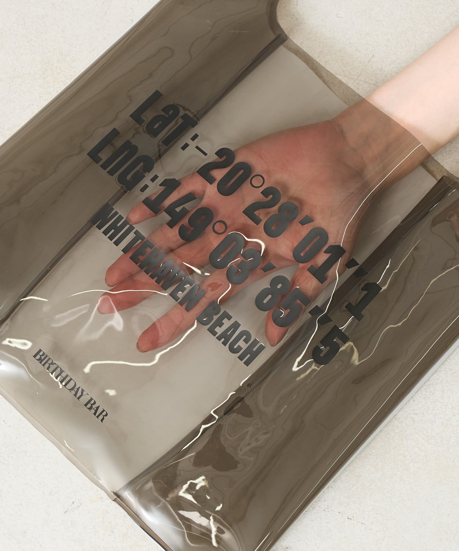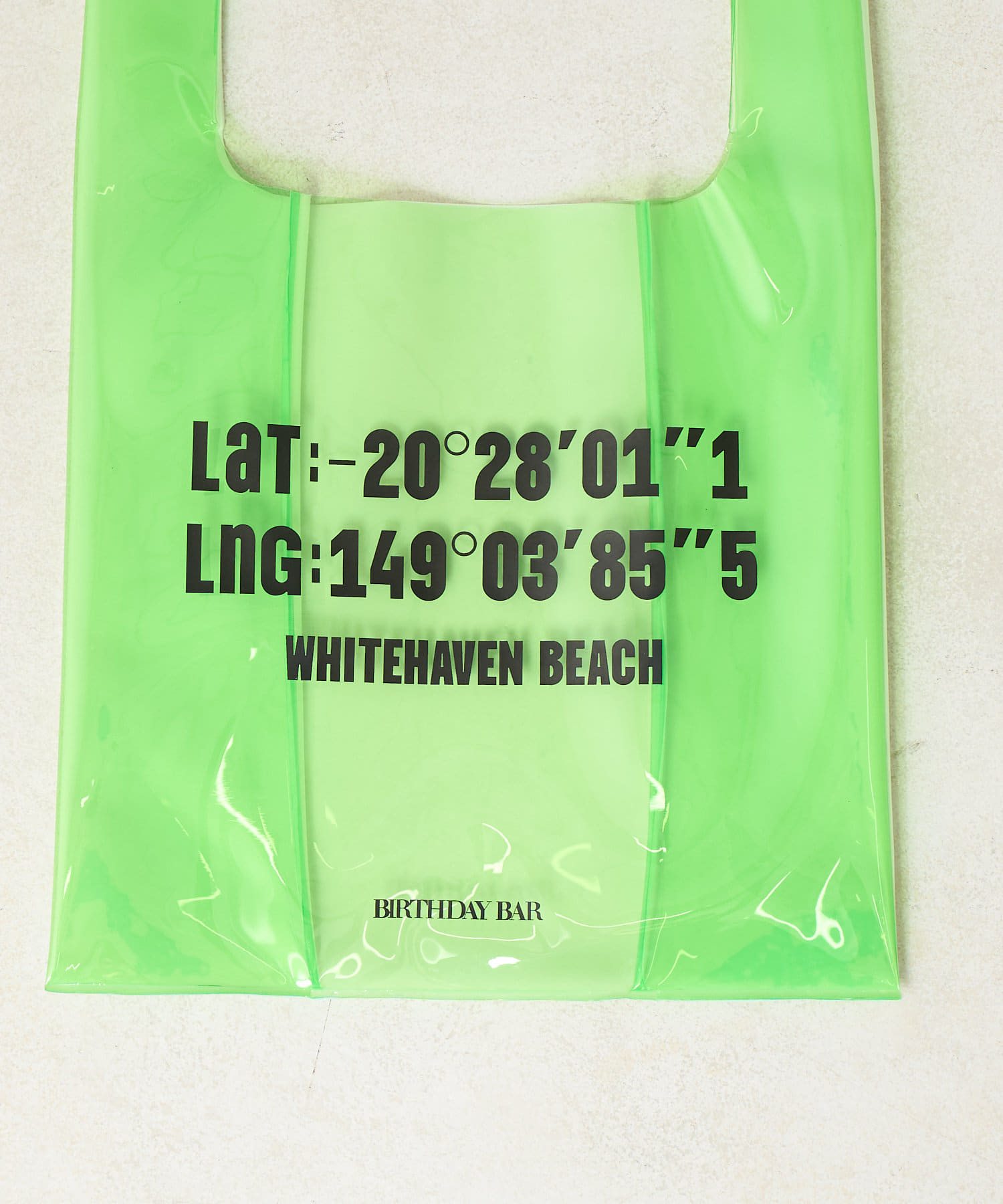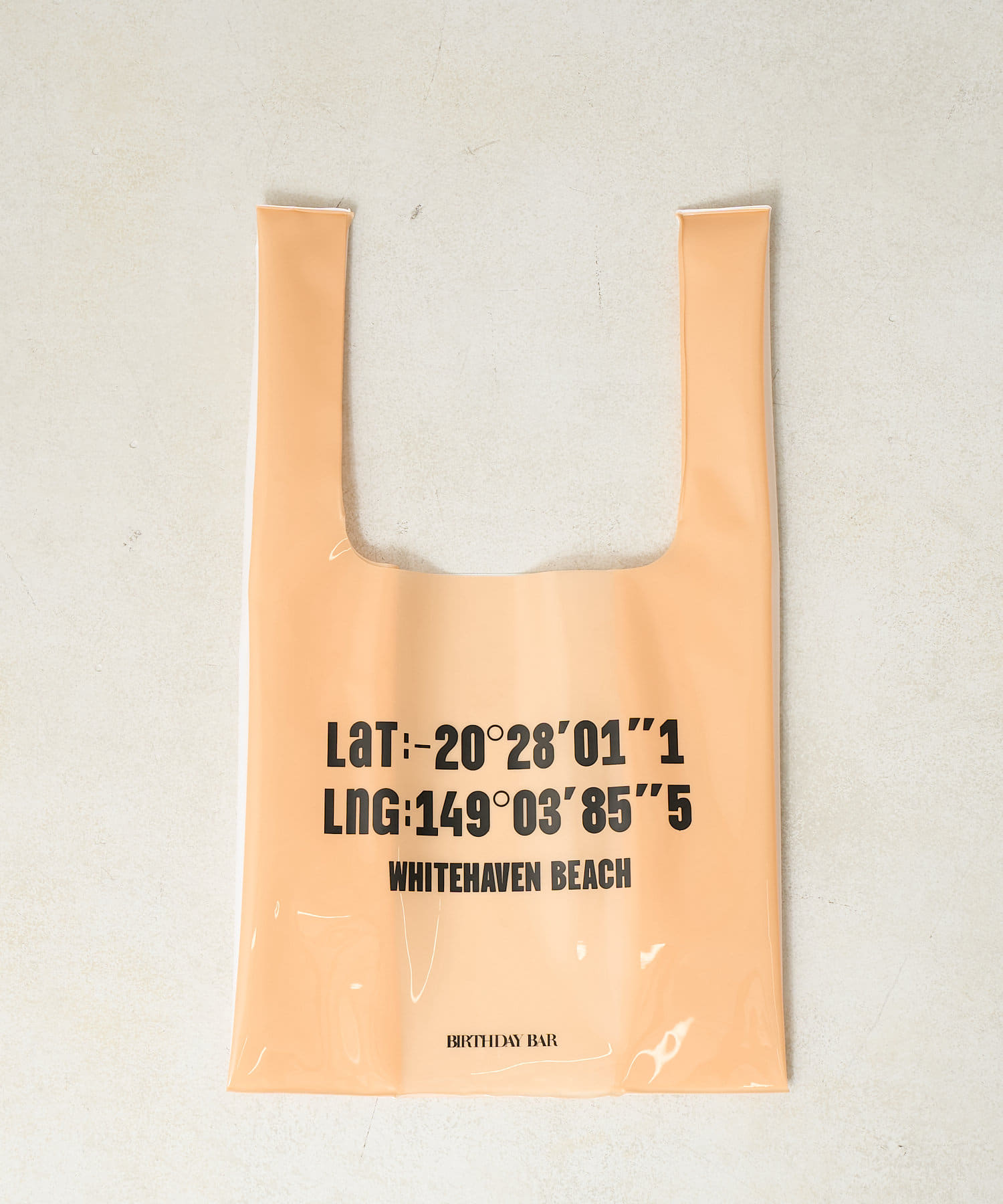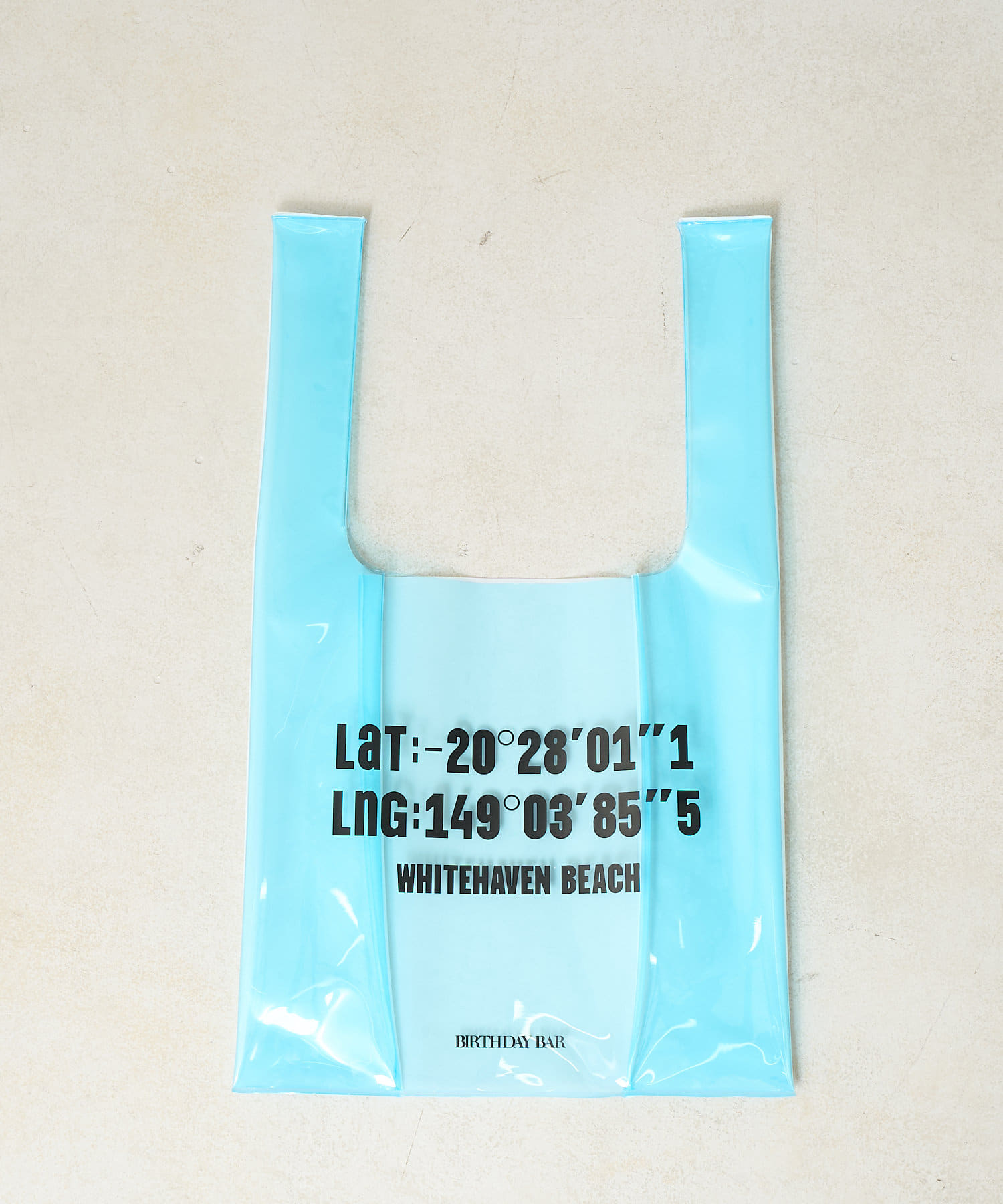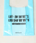 プリントのロゴはオーストラリアのホワイトヘブンビーチの経度・緯度。夏らしいデザインで遊び心も◎