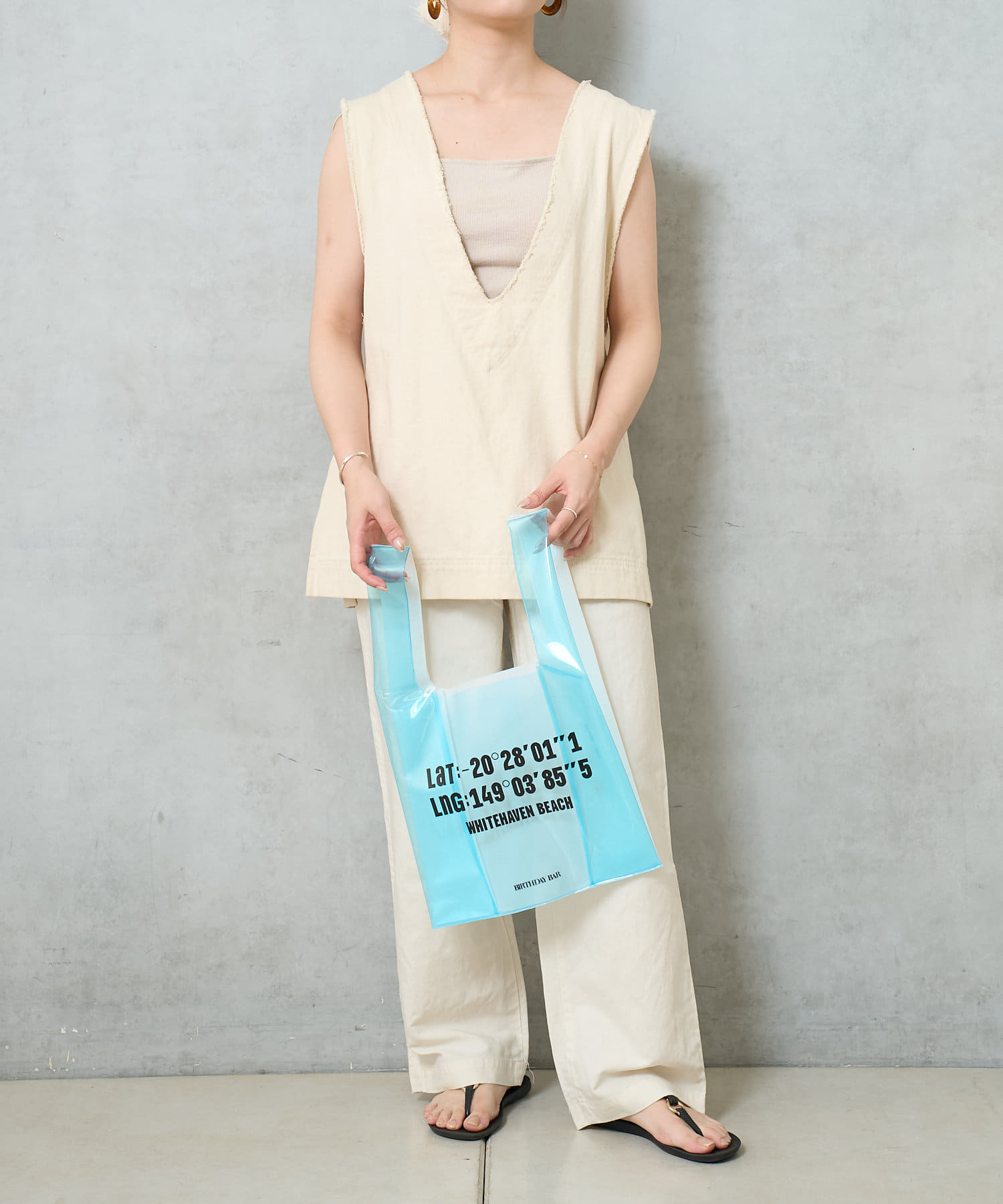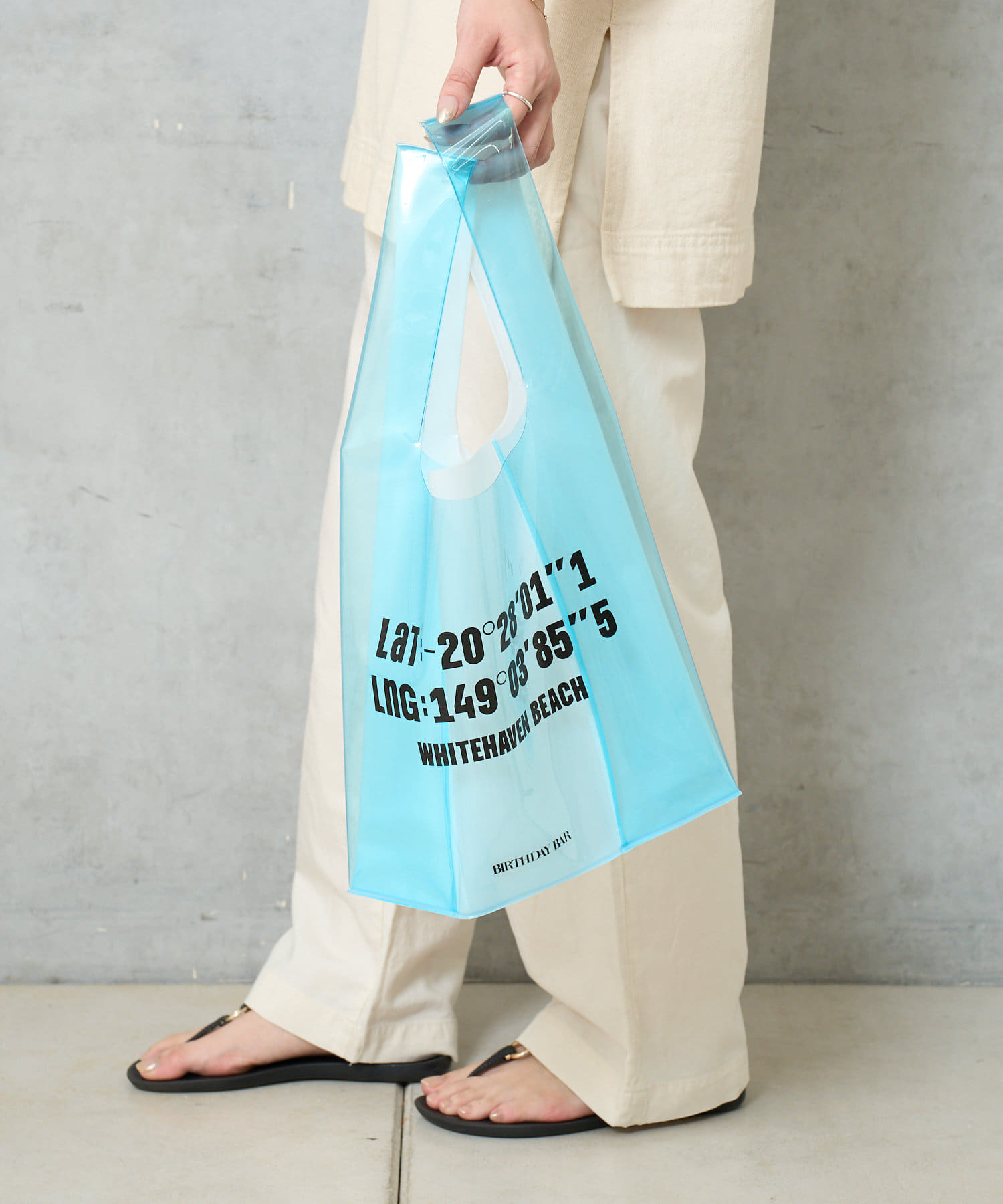夏のコーディネートを引き立ててくれるPVCのマルシェバッグ