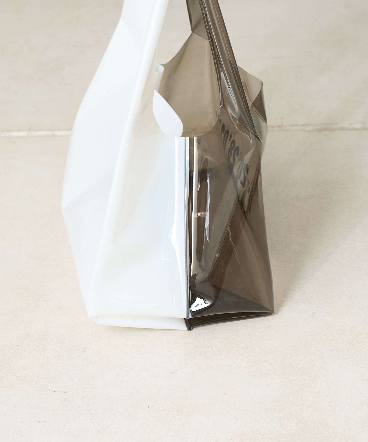 背面を乳白色にすることでカラーを落ち着かせ、またバッグの中身を見えにくくしています。