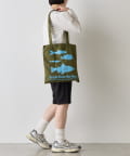 お魚やパンなど、食べ物がデザインされたトートバッグ。