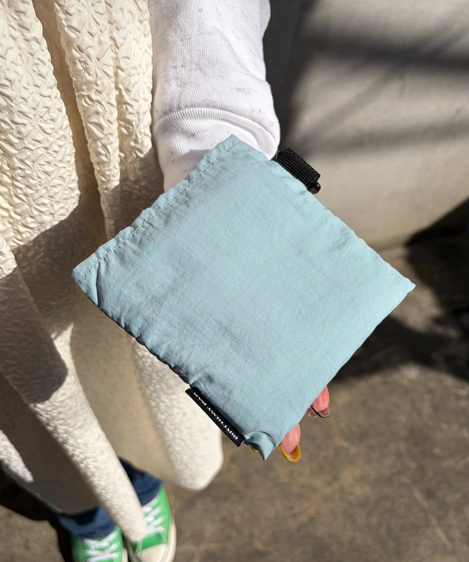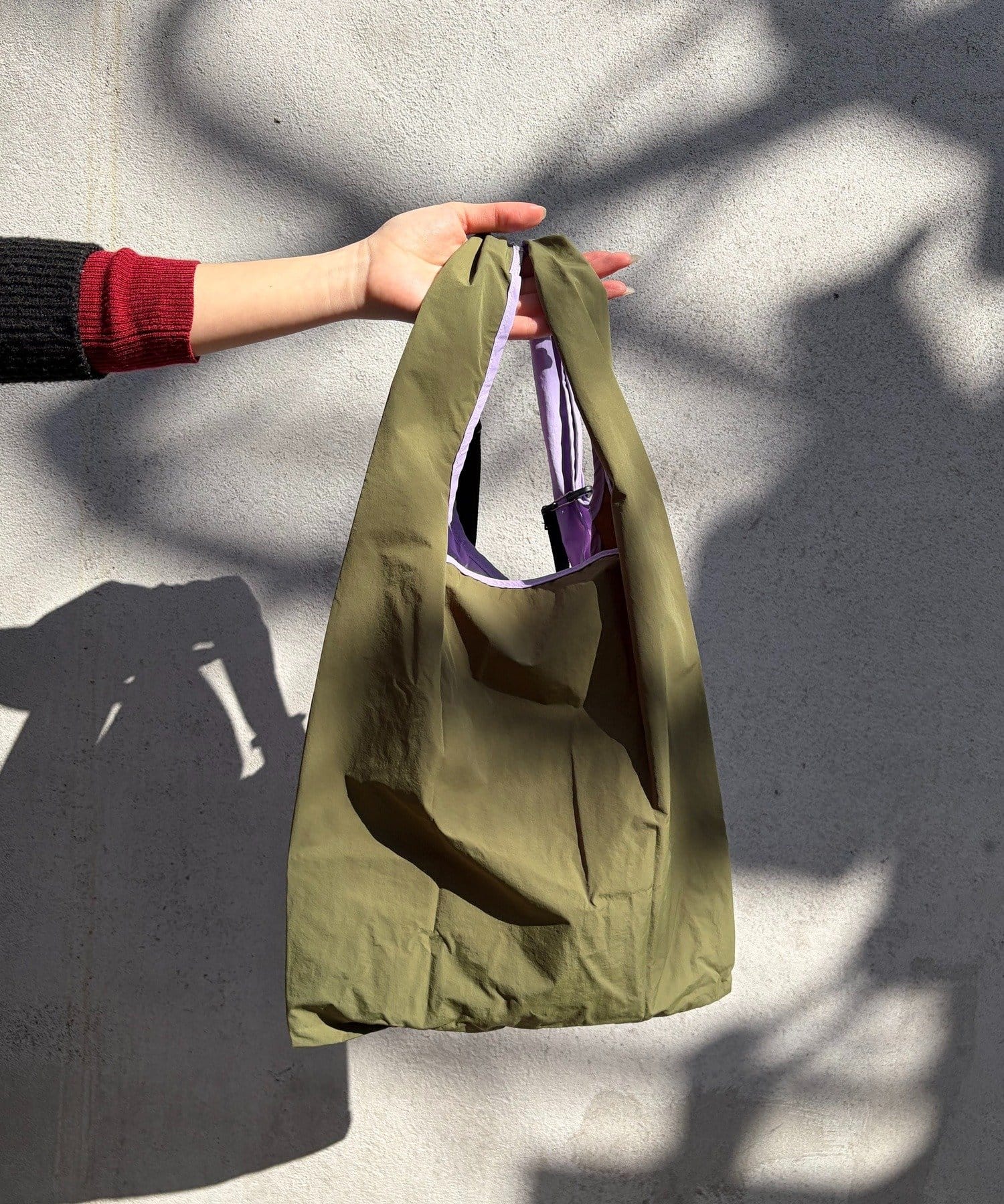 軽くてマットなナイロン生地のマルシェバッグ。