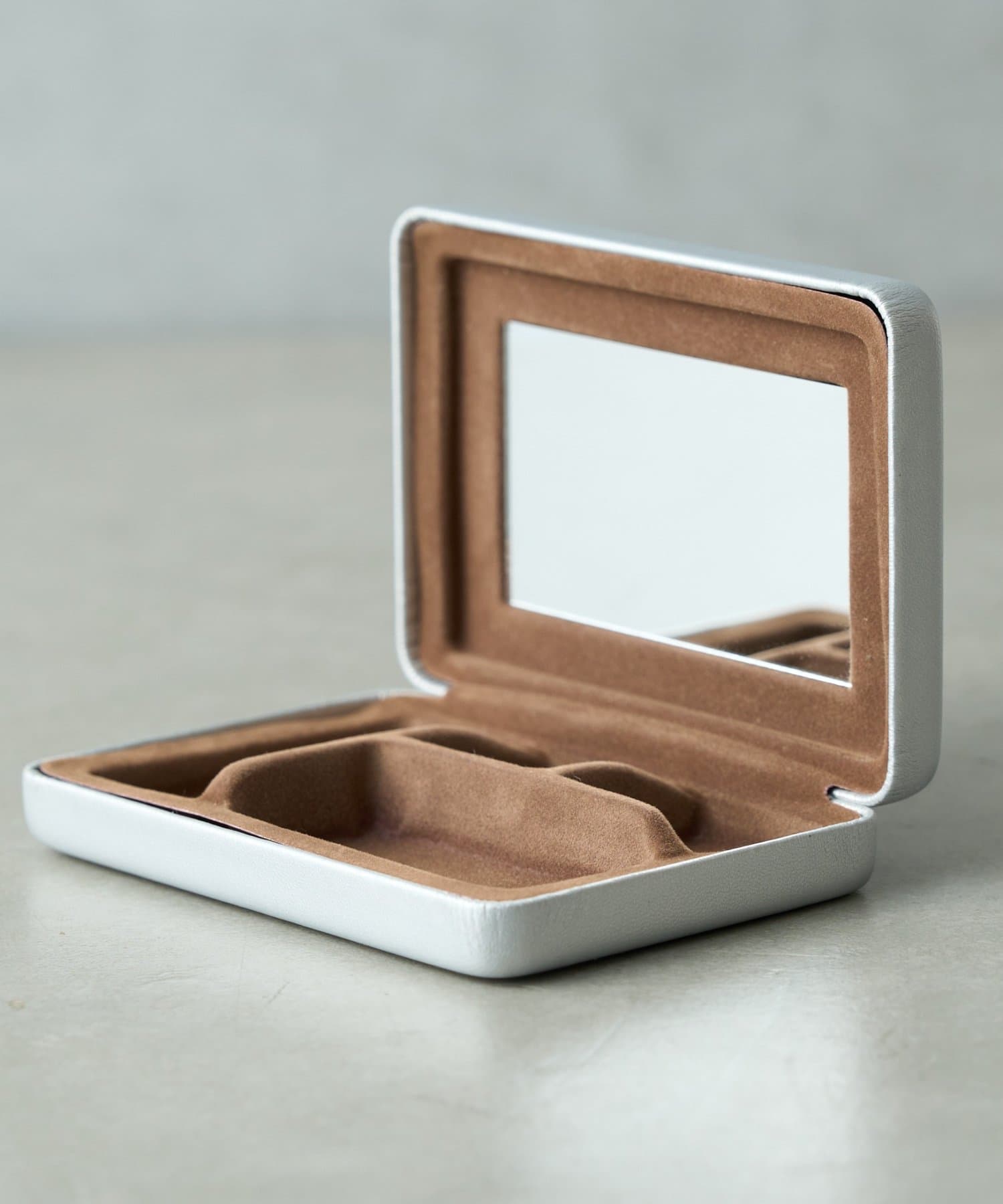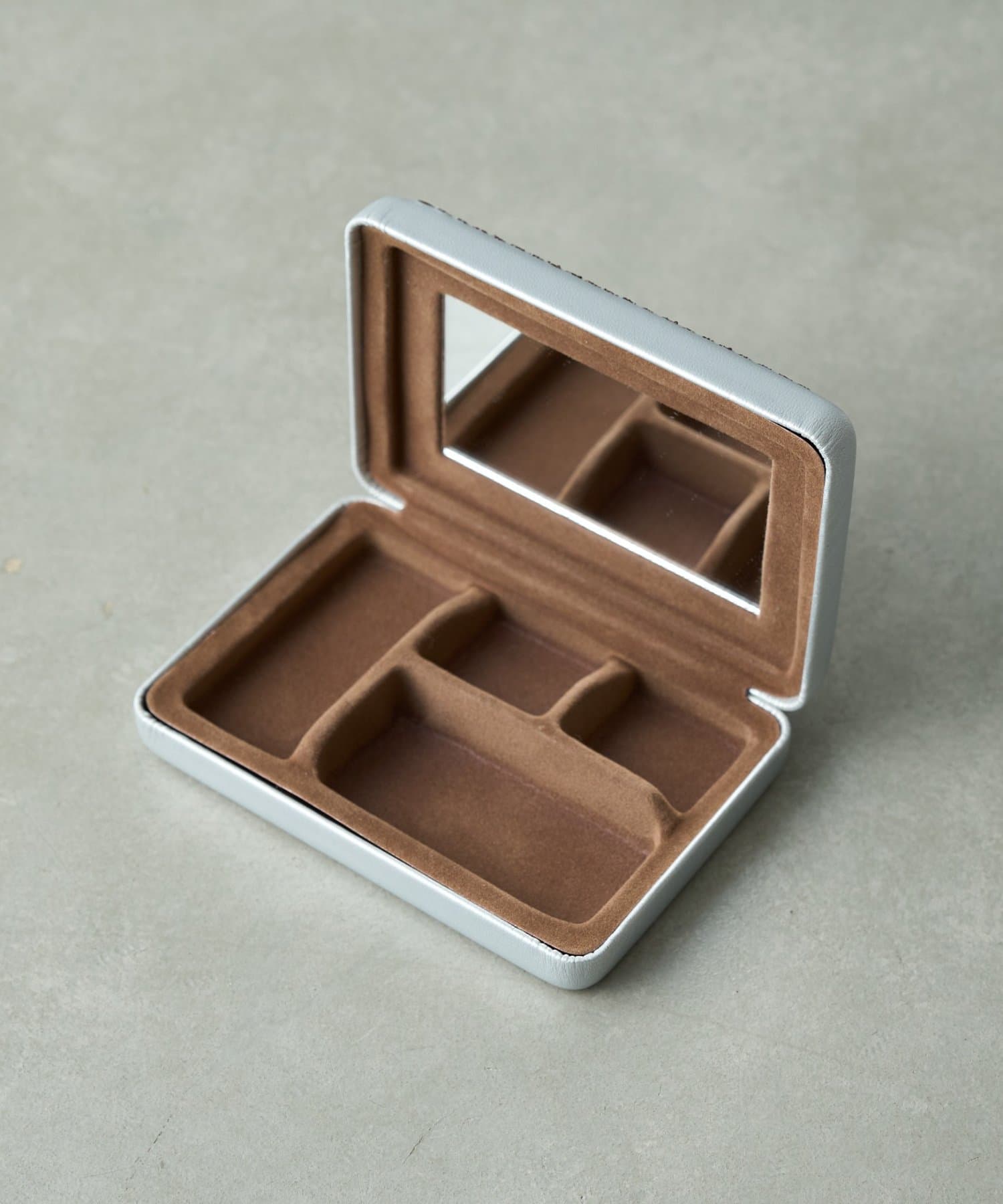 しっかりとしたつくりで、大切なアクセサリーやお薬等細かなものを収納するのにぴったり。ミラーつきなので、メイク直しやアクセサリーをつける際にも便利。