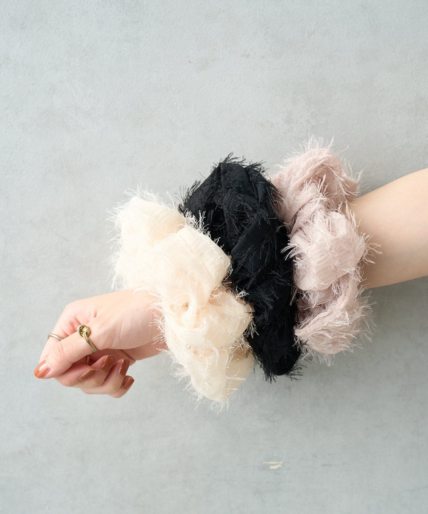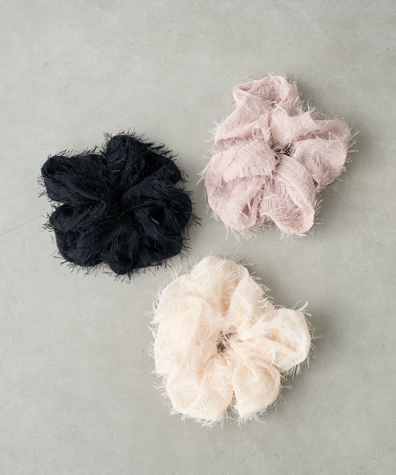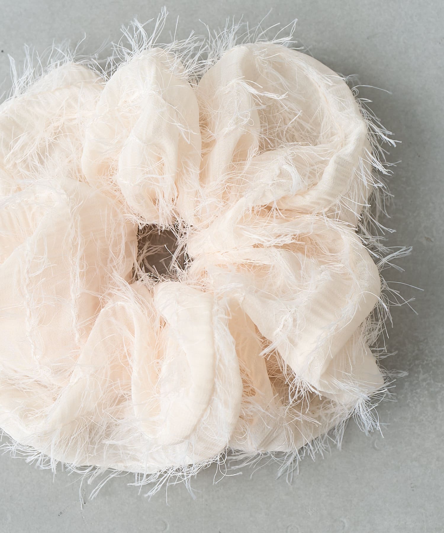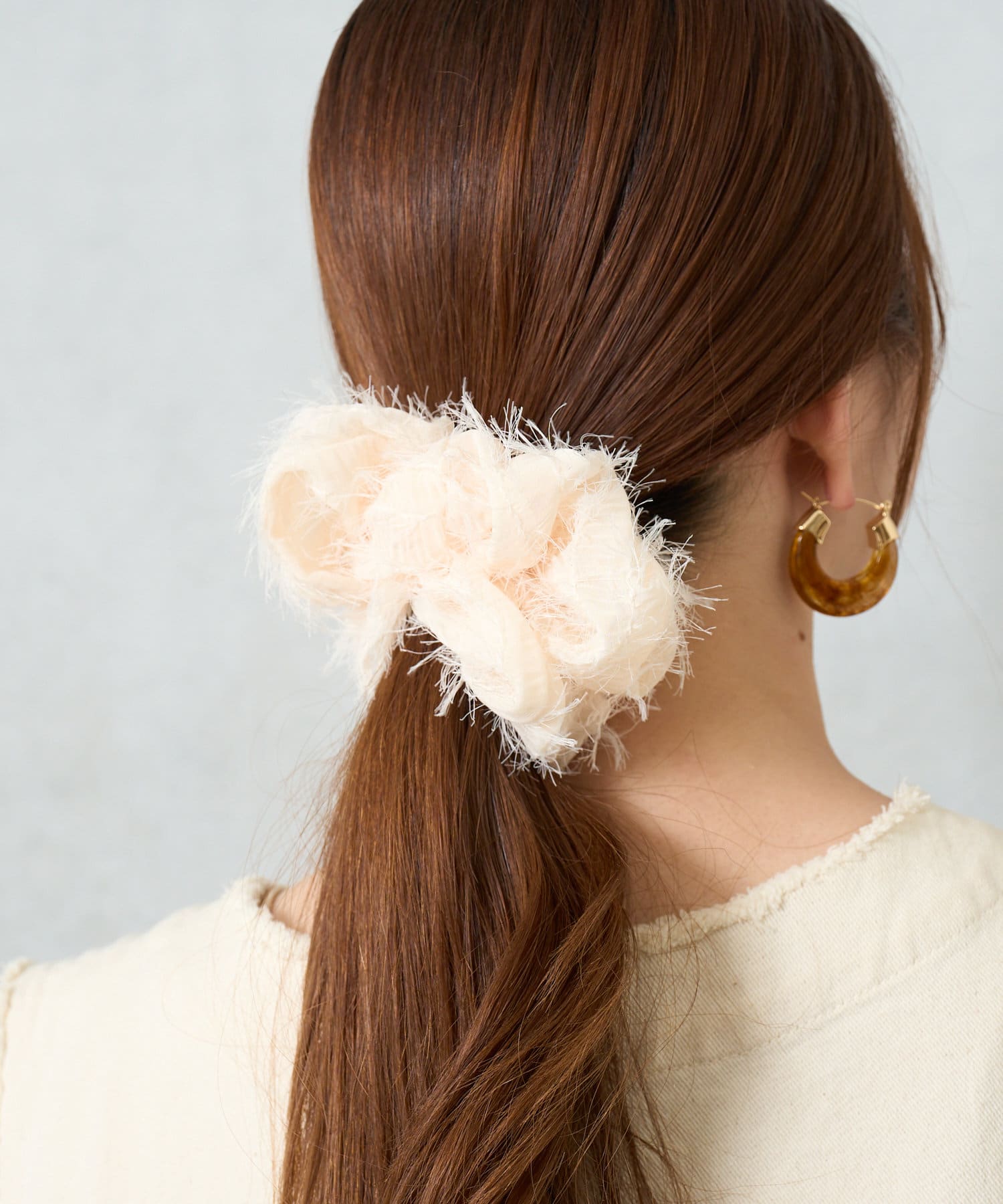 繊細なシャギーが、女性らしさを引き立てるビッグシュシュ。