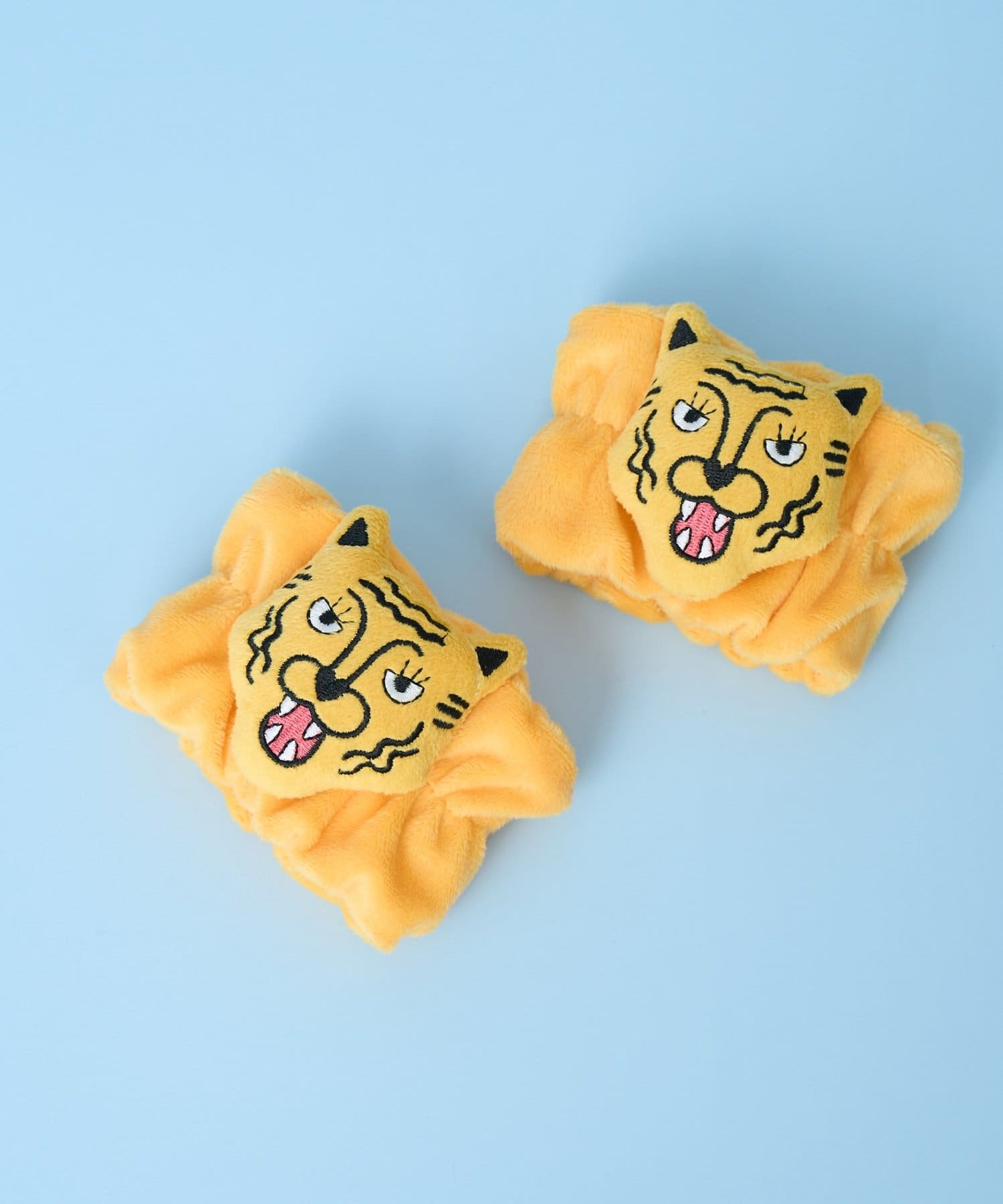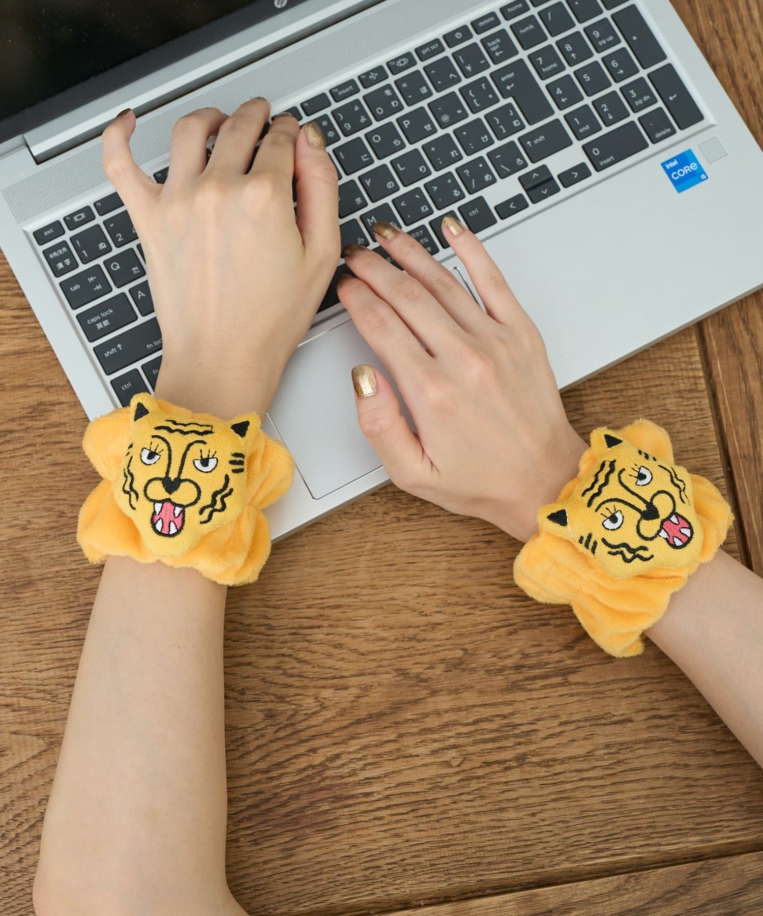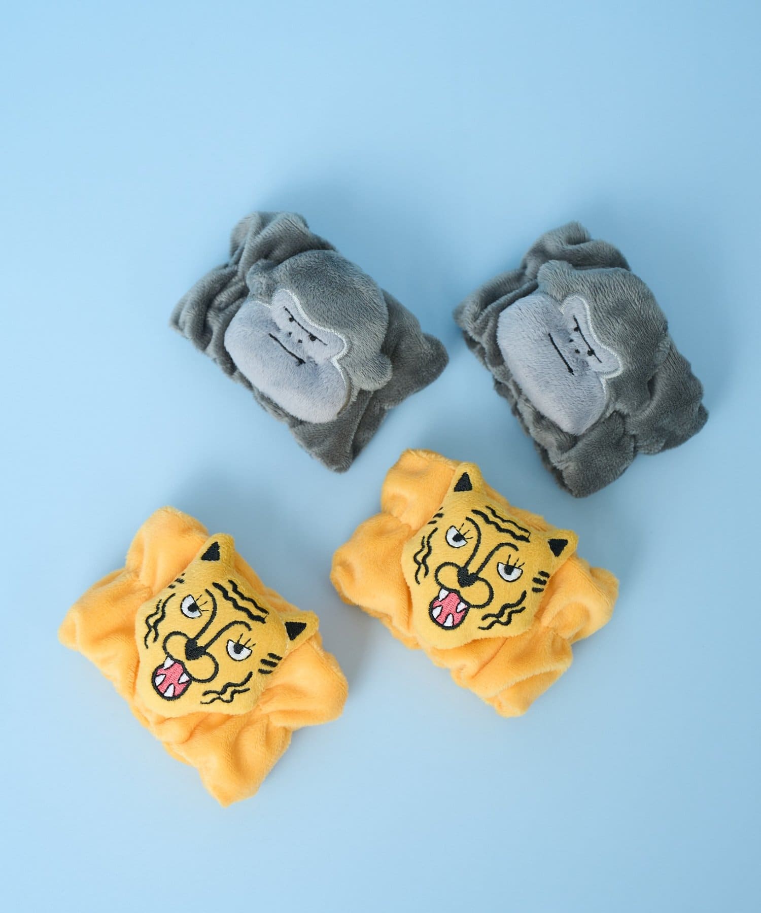 ユニークな表情のトラとゴリラのフェイスマスコットがついたアームバンド。