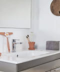 歯ブラシ同士が触れにくく、立てて保管できるので、いつでも清潔な状態を保てます。水滴が洗面台に落ちるのを防いでくれる、お揃いの受け皿が付いているのも嬉しいポイント。お手入れも簡単で、衛生面も安心です。