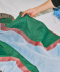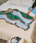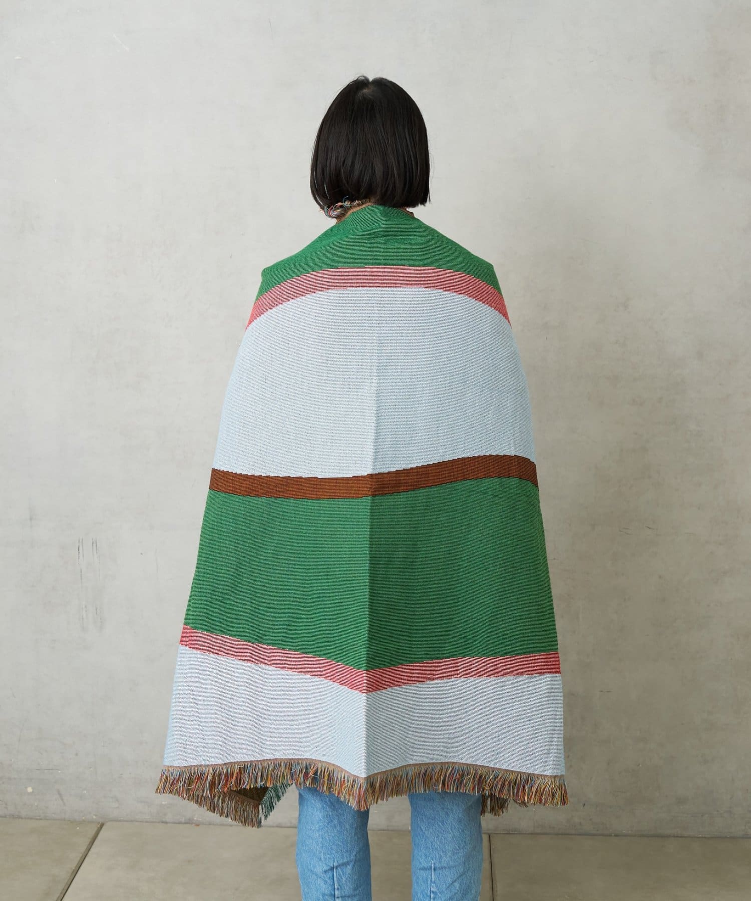 長方形なので、羽織るのにもちょうどよい大きさでひざ掛けとしても。
