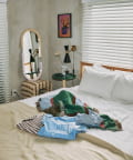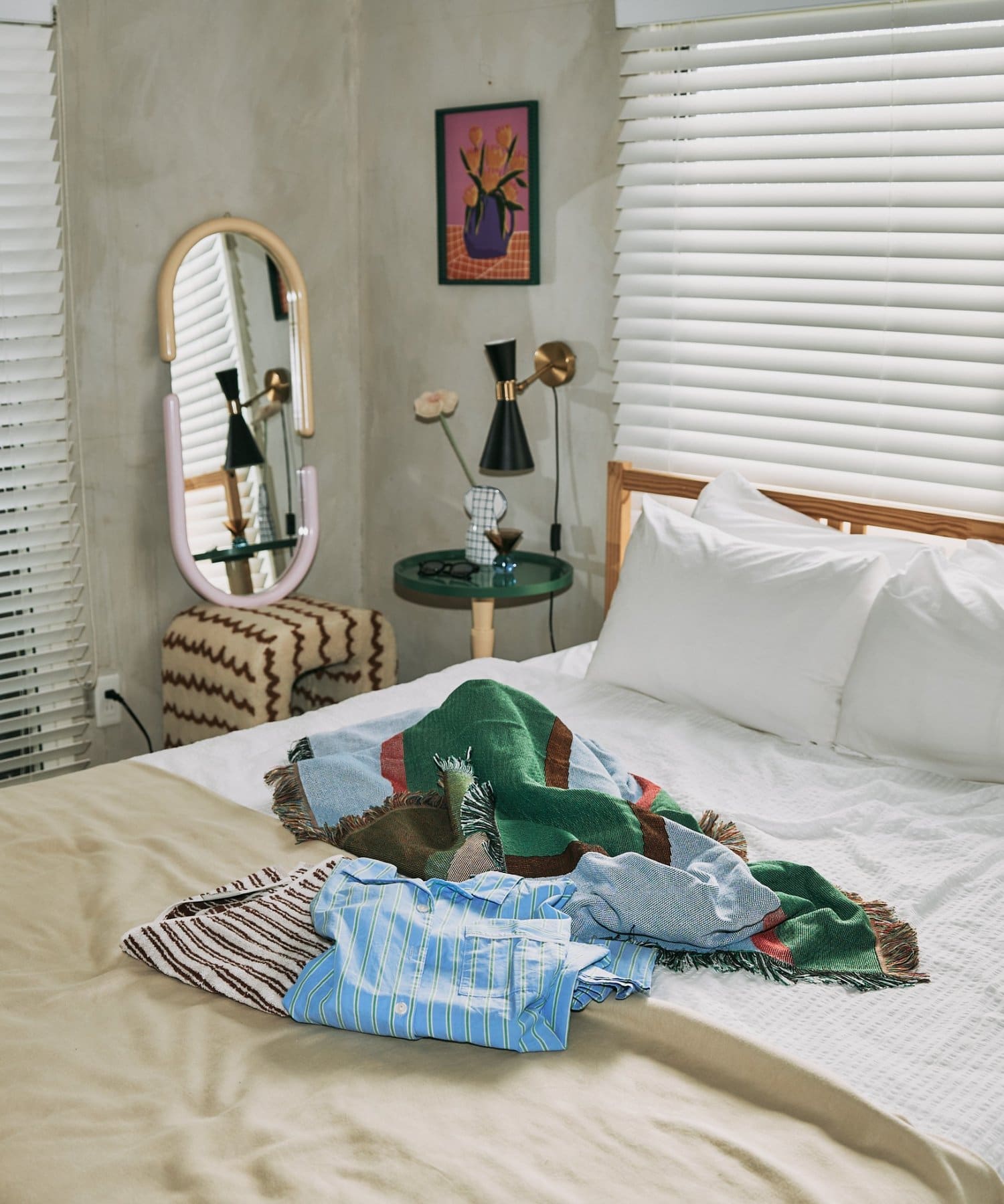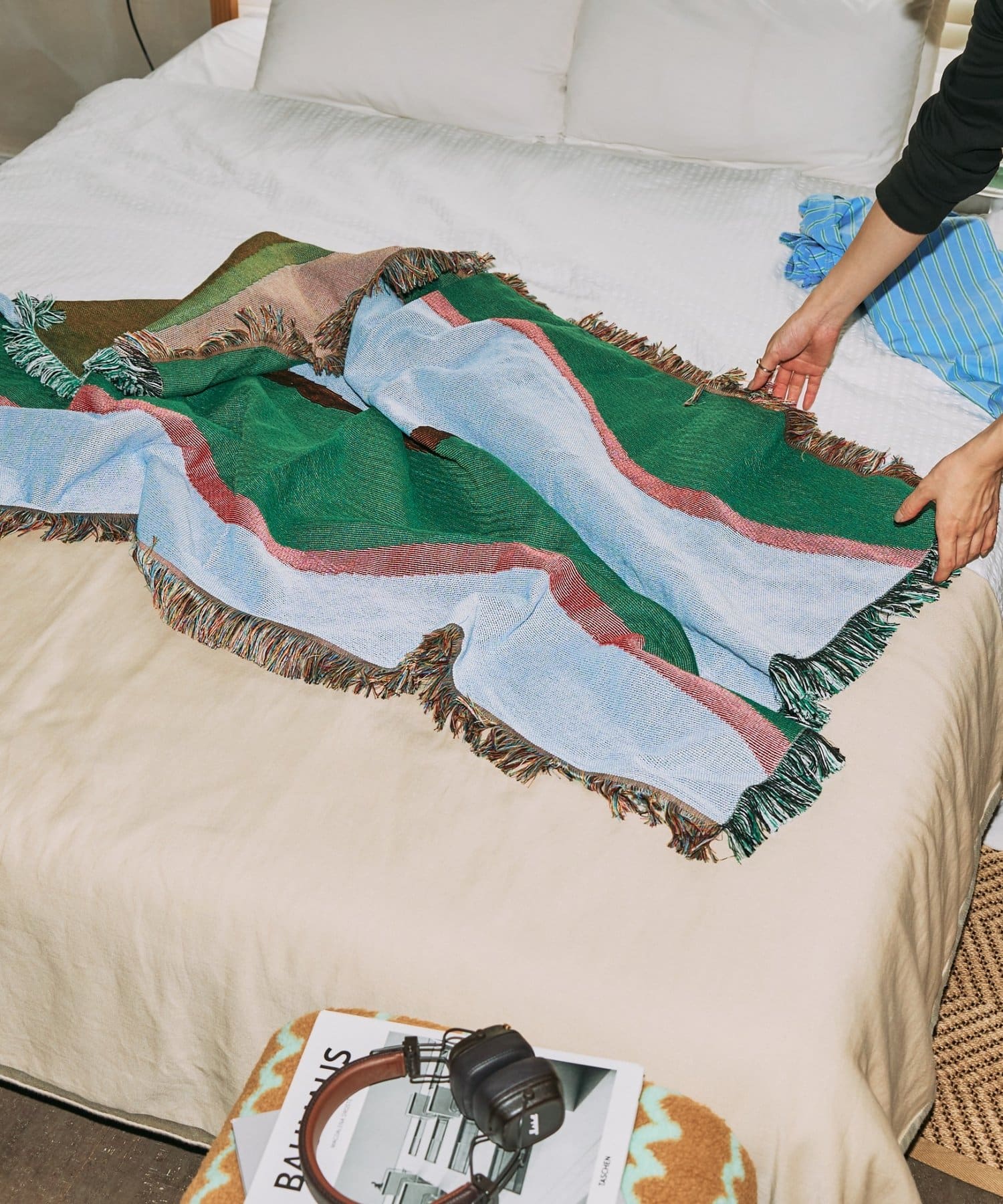 今回も裏表どちらも両A面で使え、ソファやベッドにさらっと掛けていつもと違う雰囲気に、またラグとしても活躍します。