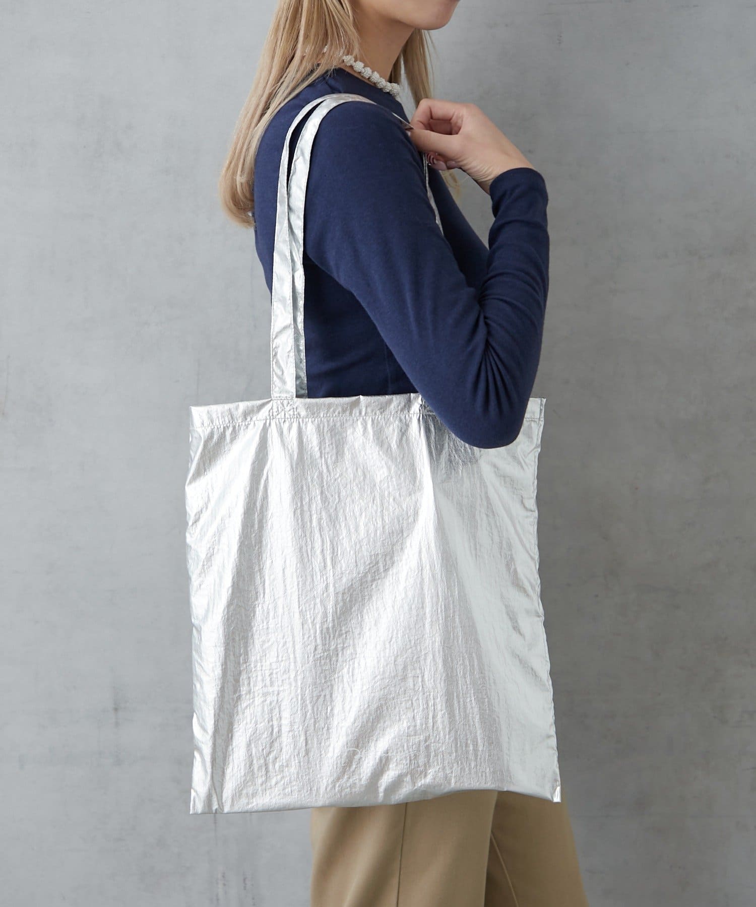 コーディネートに輝きを添える、主役級メタリックエコバッグ