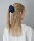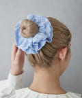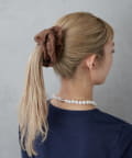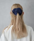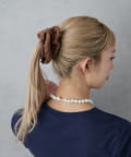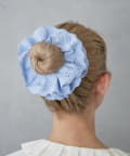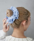 シンプルなまとめ髪も、このシュシュ一つで一気に華やかな雰囲気に。